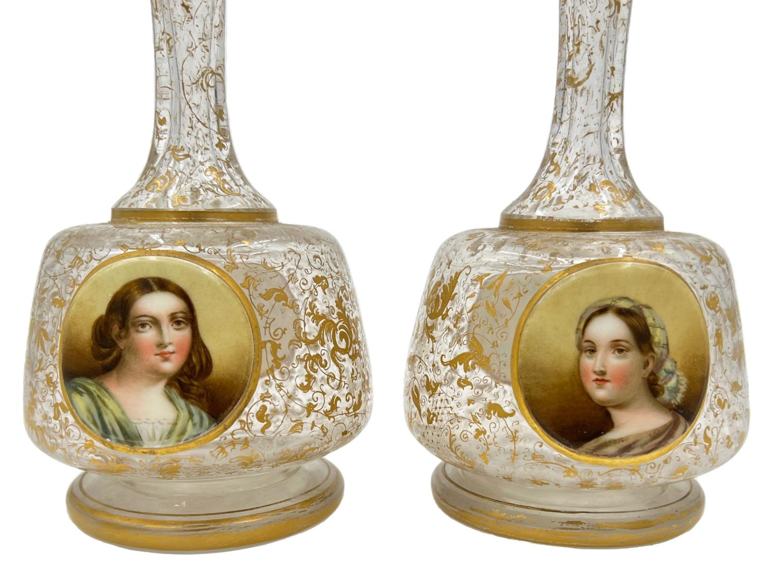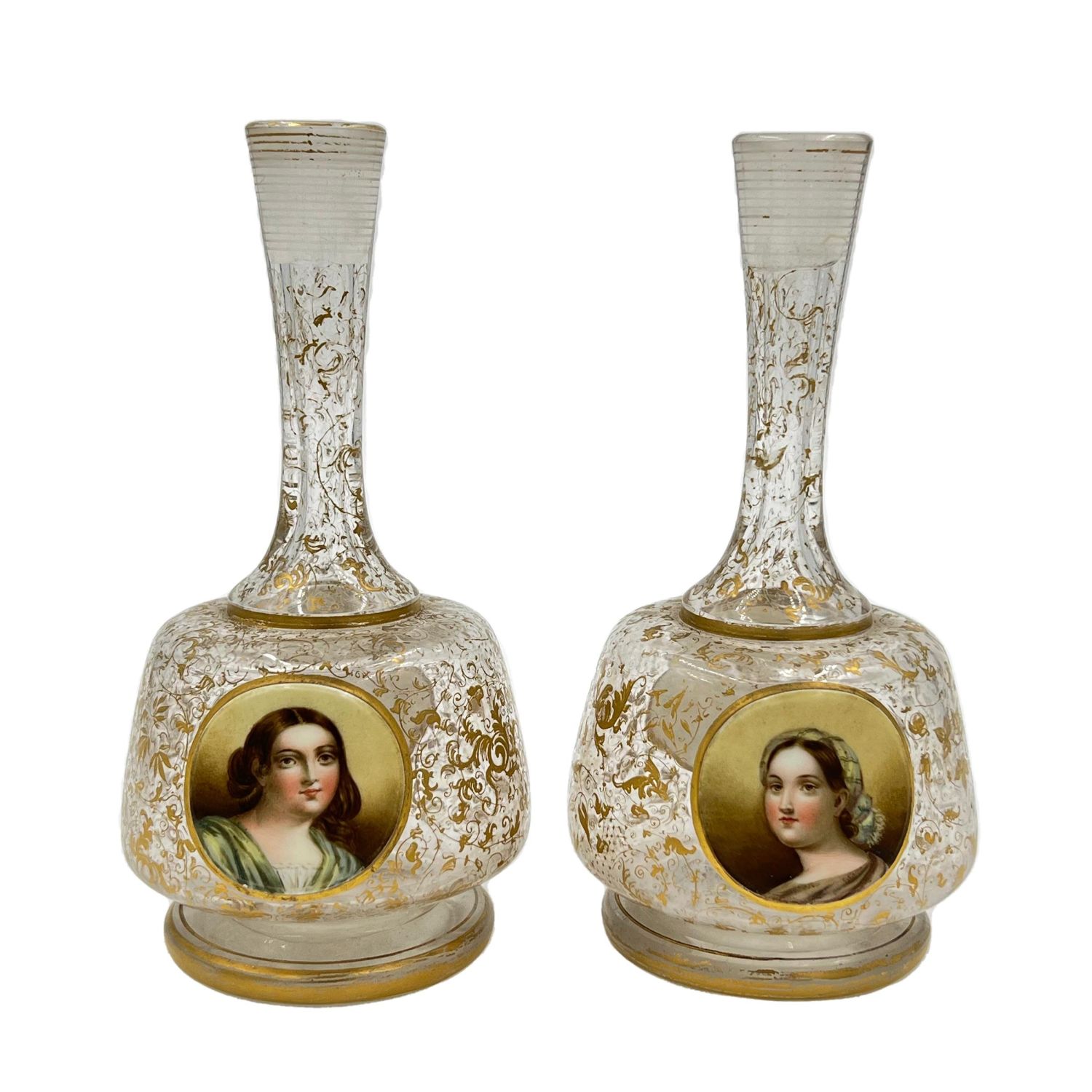 PAIR OF 19TH CENTURY CLEAR BOHEMIAN GLASS VASES A charming hand painted pair of 19th-century Bohemian glass vases, each standing at 20cm.
