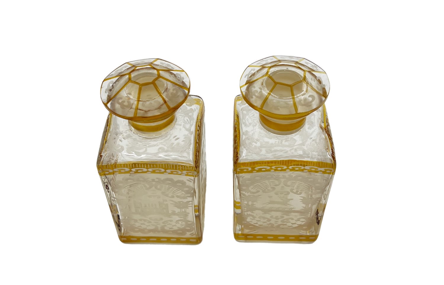 MEDICINE BOTTLES DUO – PAIR OF LIDDED GLASS BOTTLES A pair of lidded medicine glass bottles, showcasing timeless elegance. Height: 15cm