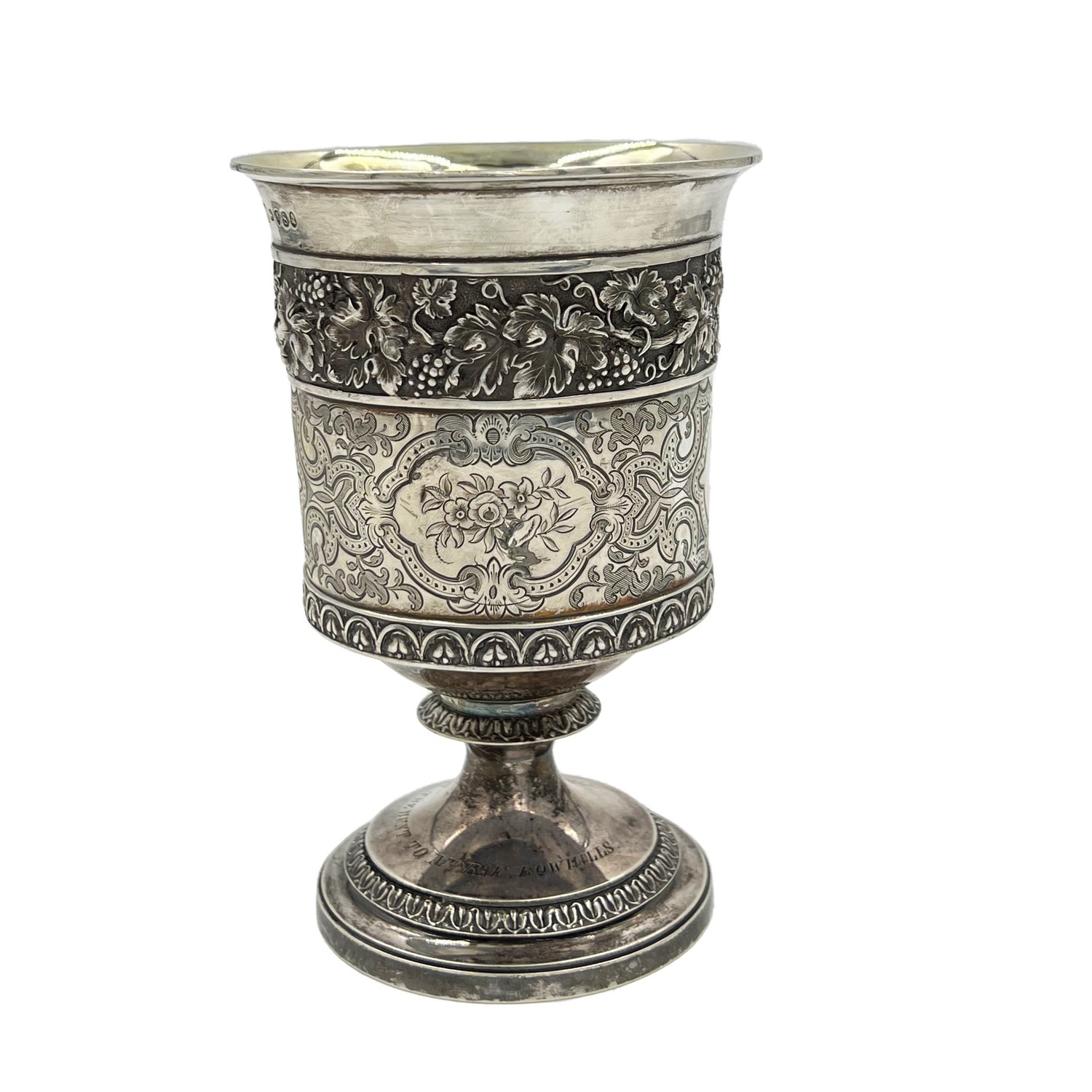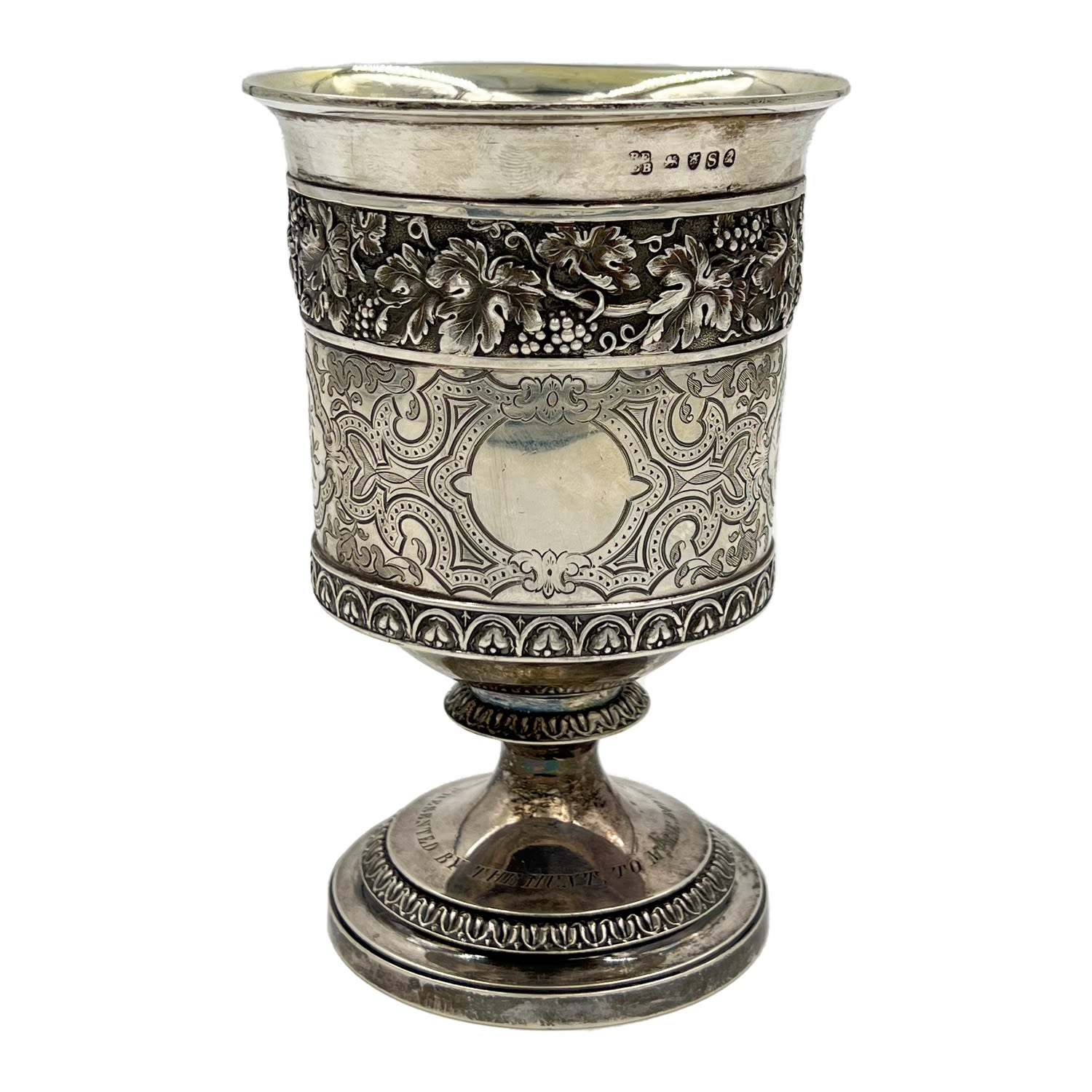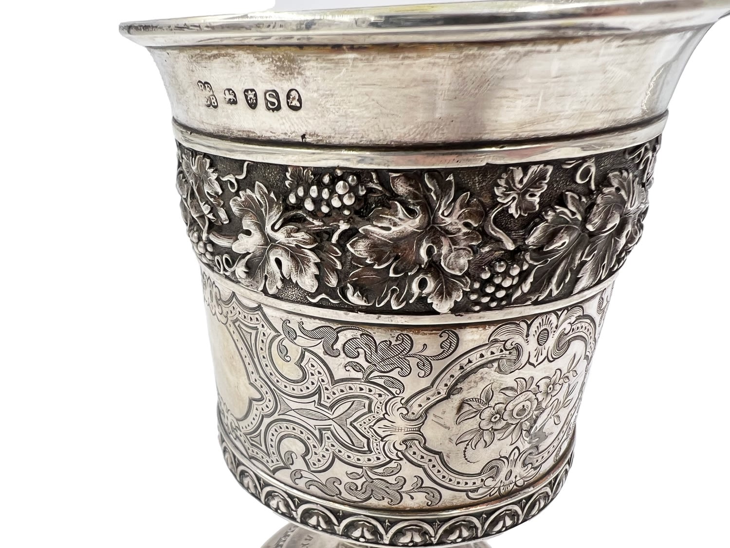 A large and very good quality Georgian silver goblet with embossed decoration.