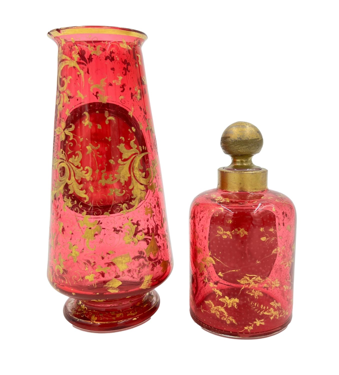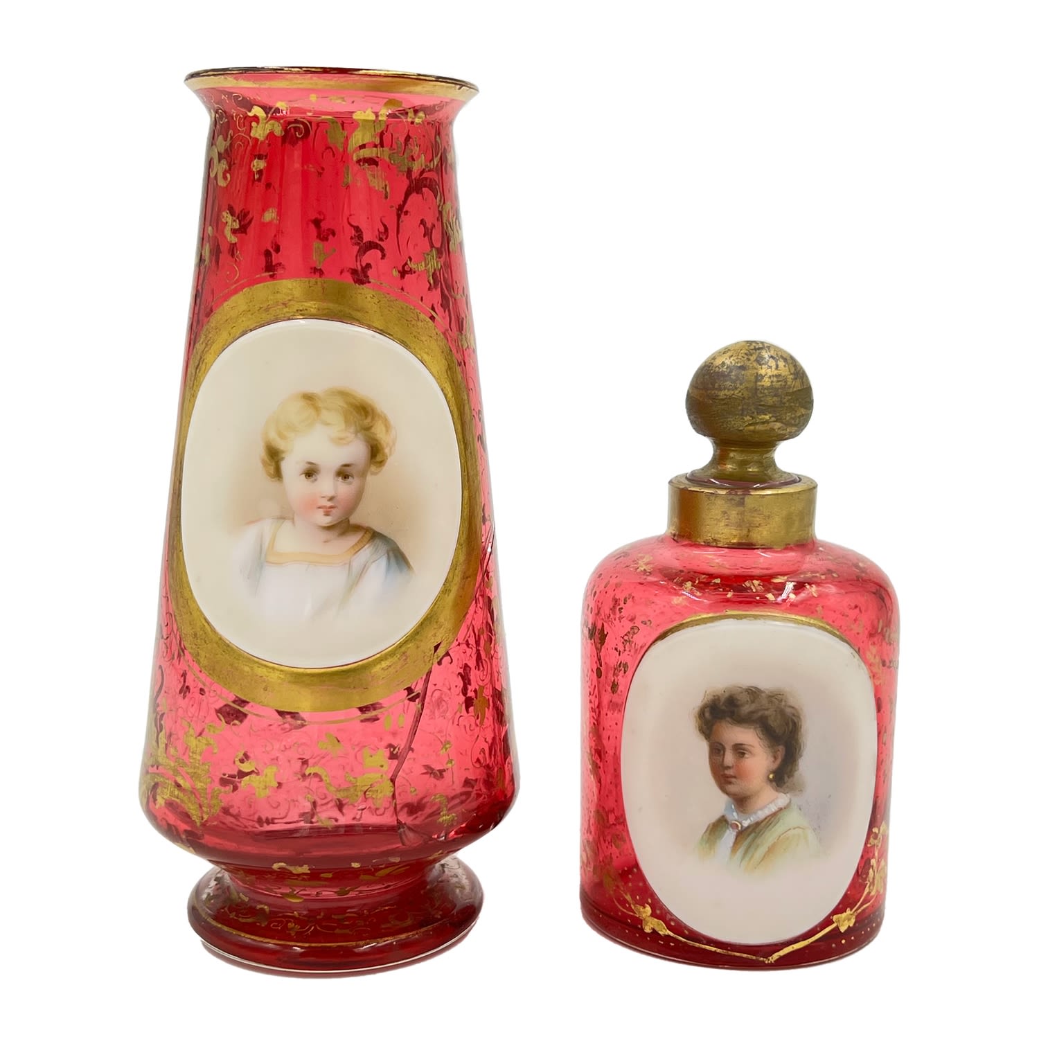 BOHEMIAN ENSEMBLE – GLASS VASE AND SCENT BOTTLE, 19TH CENTURY