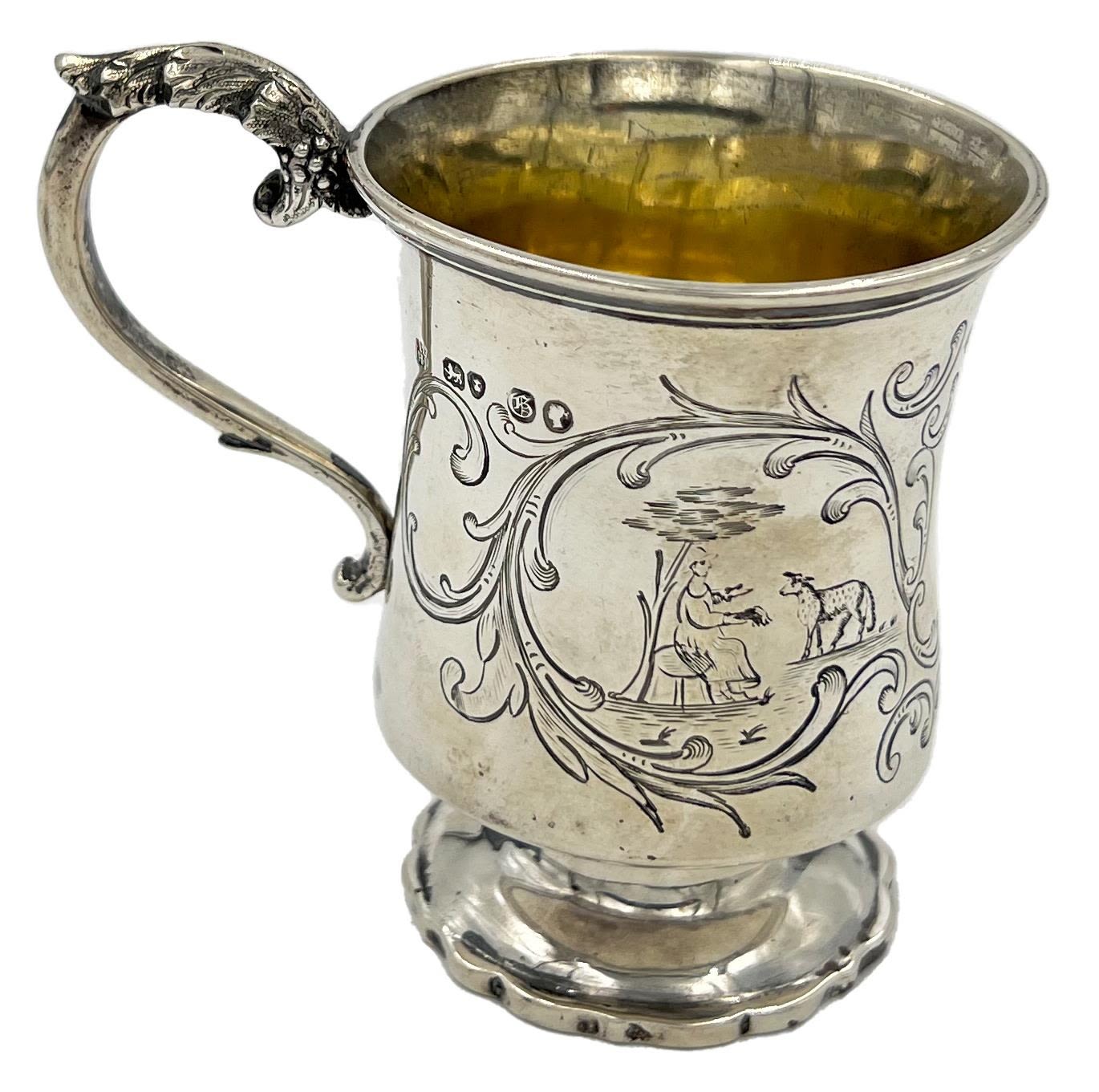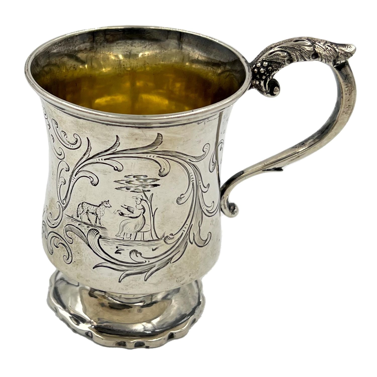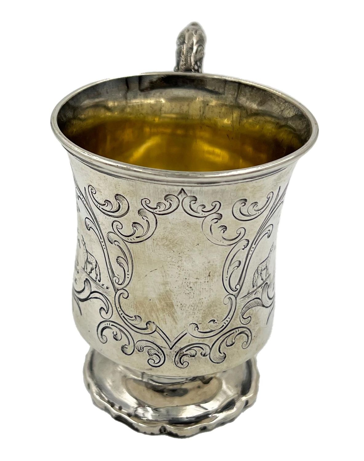 A VICTORIAN SILVER CHRISTENING MUG WITH AN INTERESTING ENGRAVED SCENE, LONDON, JOHN HENERY LIAS, 1842