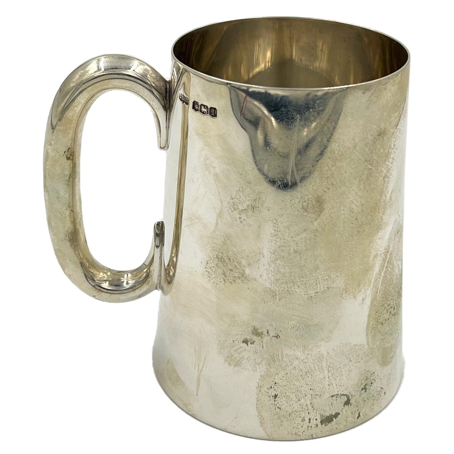 A GOOD SIZE SILVER TANKARD OF PLAIN AND TAPERING FORM, JAMES DIXONT & SONS, 1928 A good size silver tankard of plain and tapering form. H: 11cm, W: 11cm, Weight: 291g