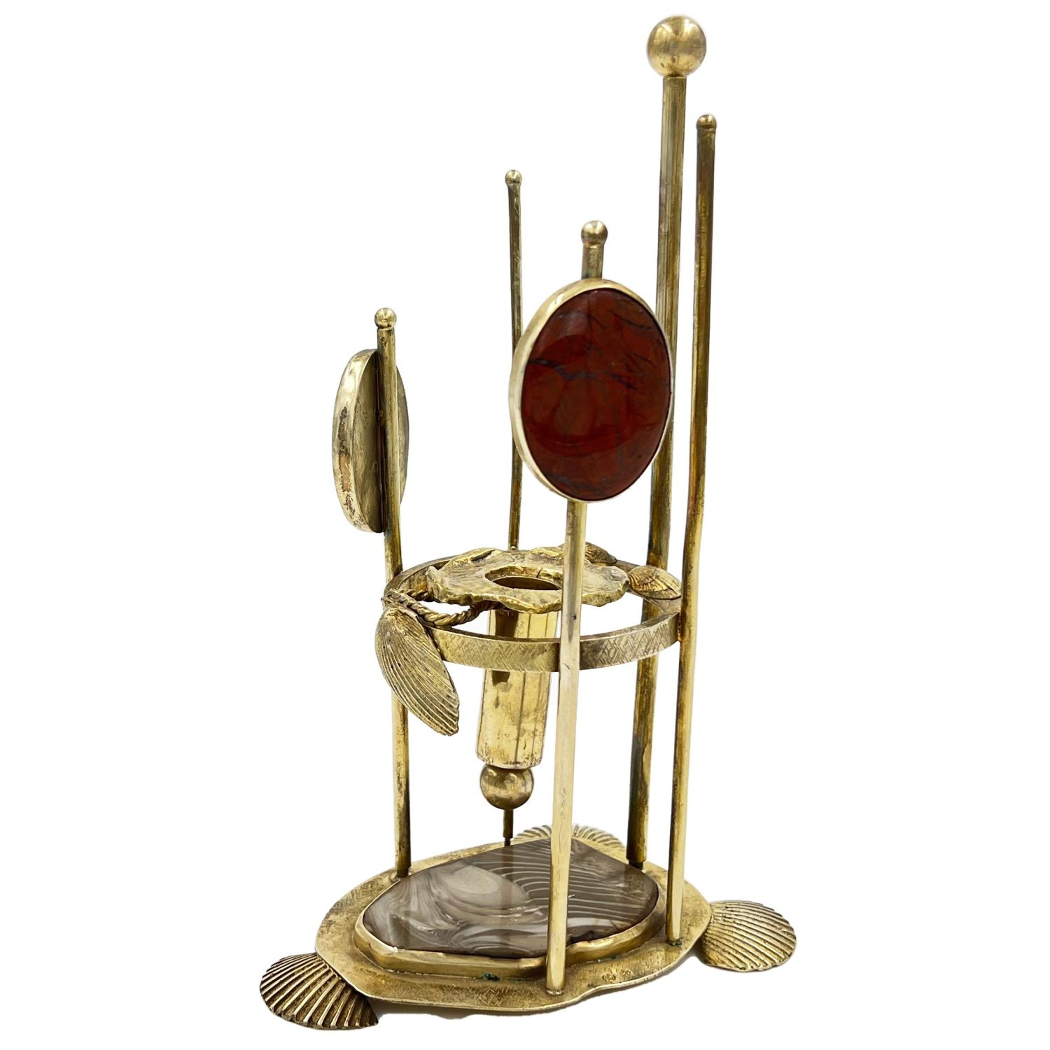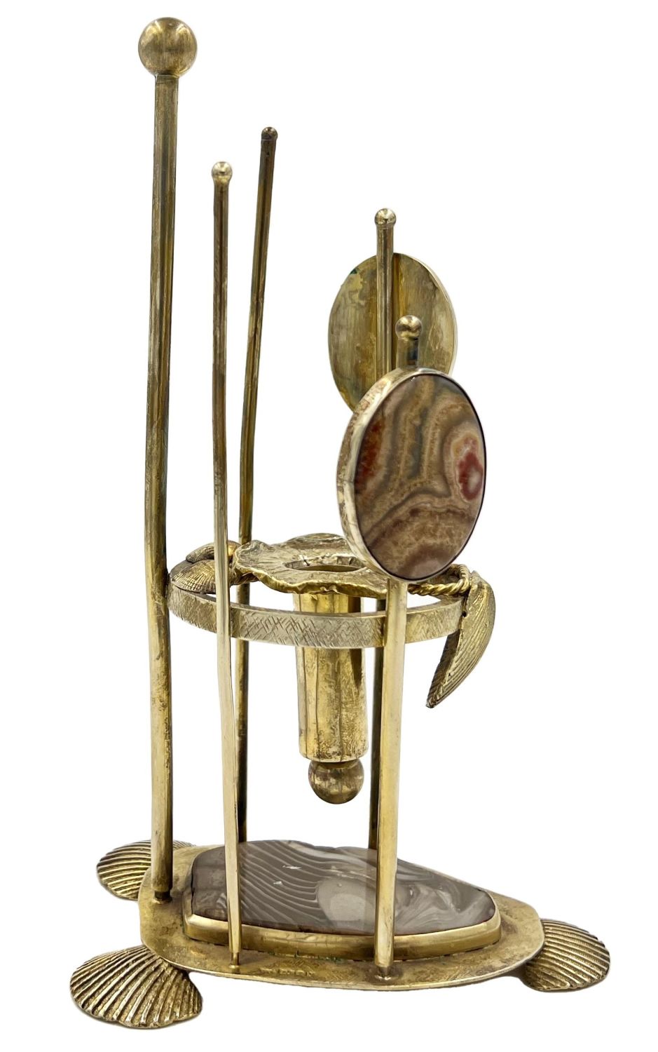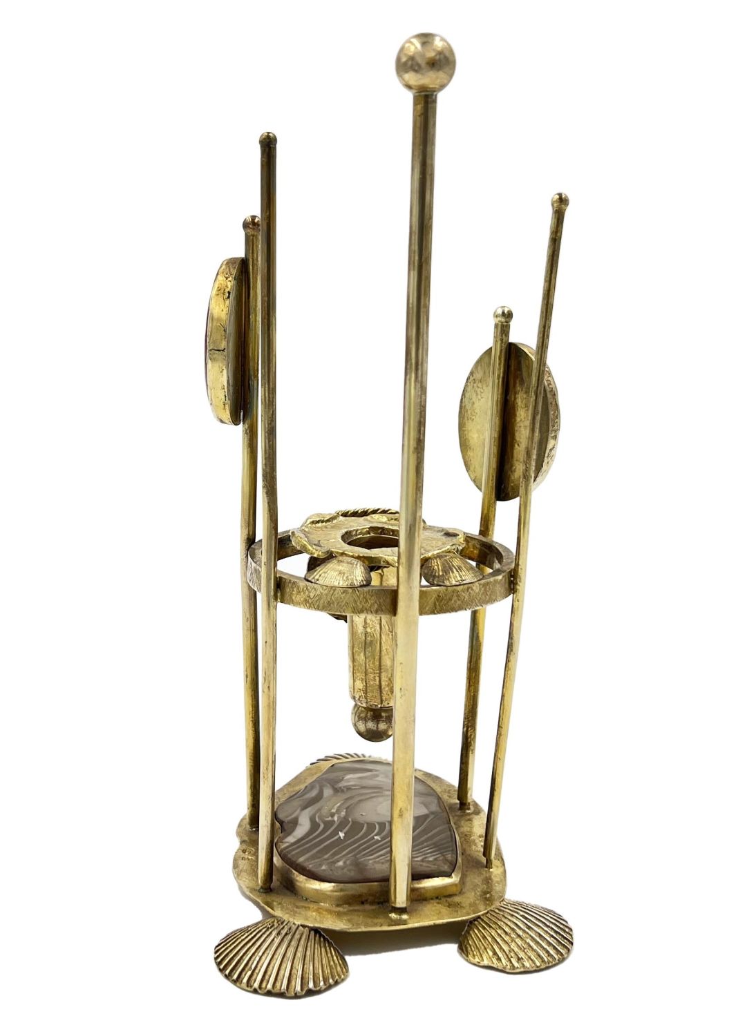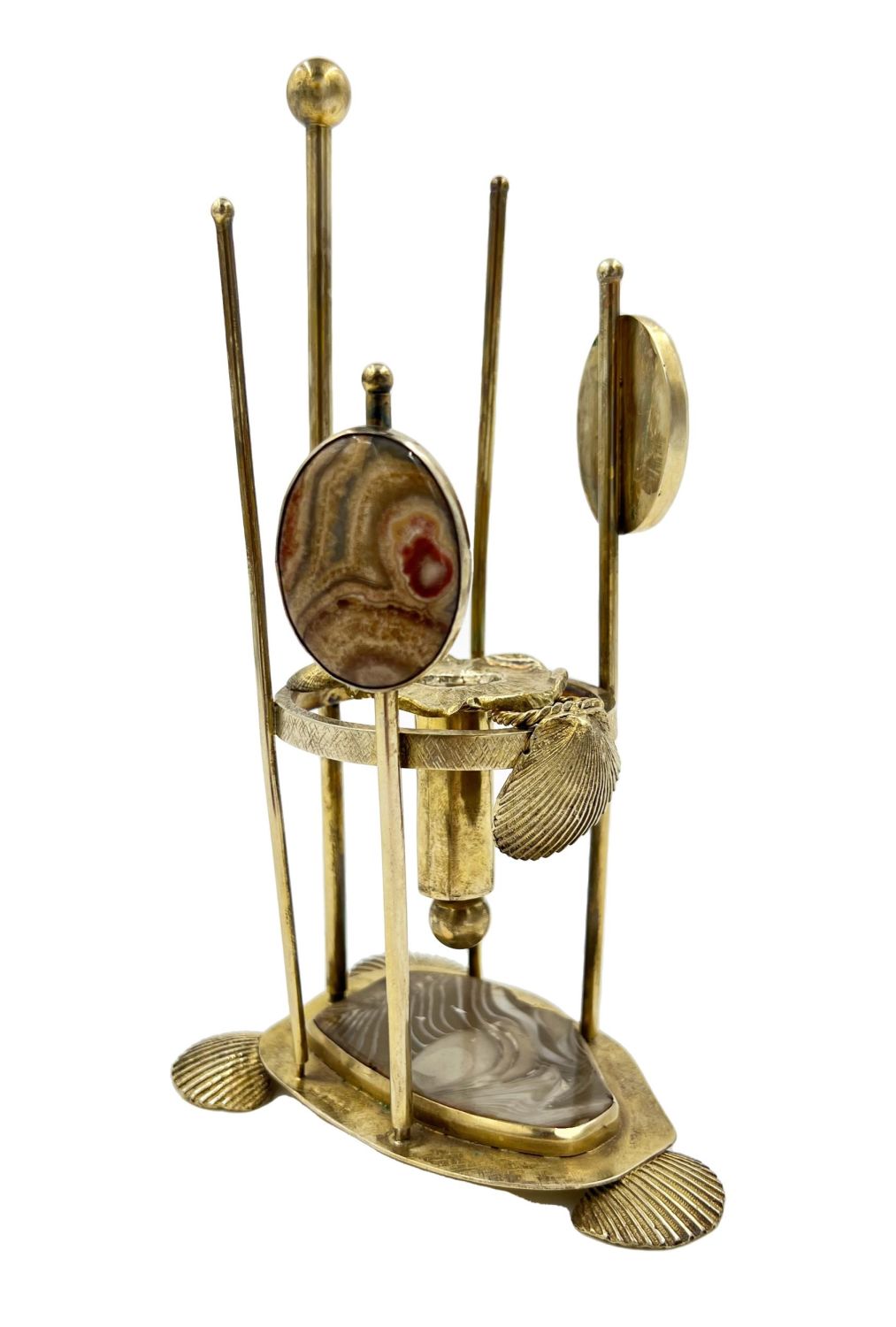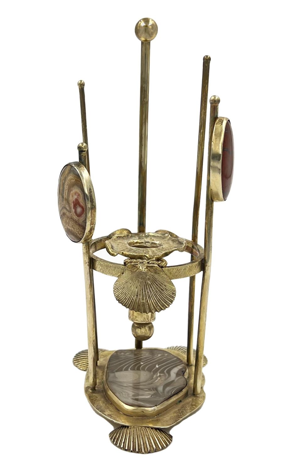 Silver Gilt Candle Holder With Agate Stones And Shell Feets, Lonodn, 1978.