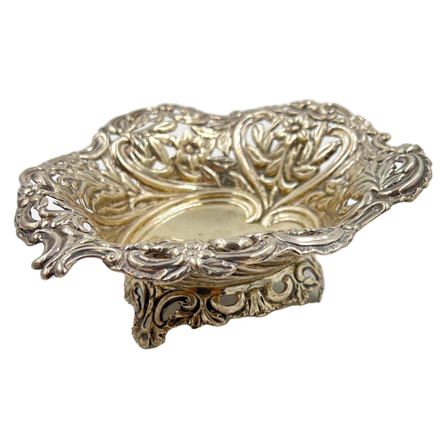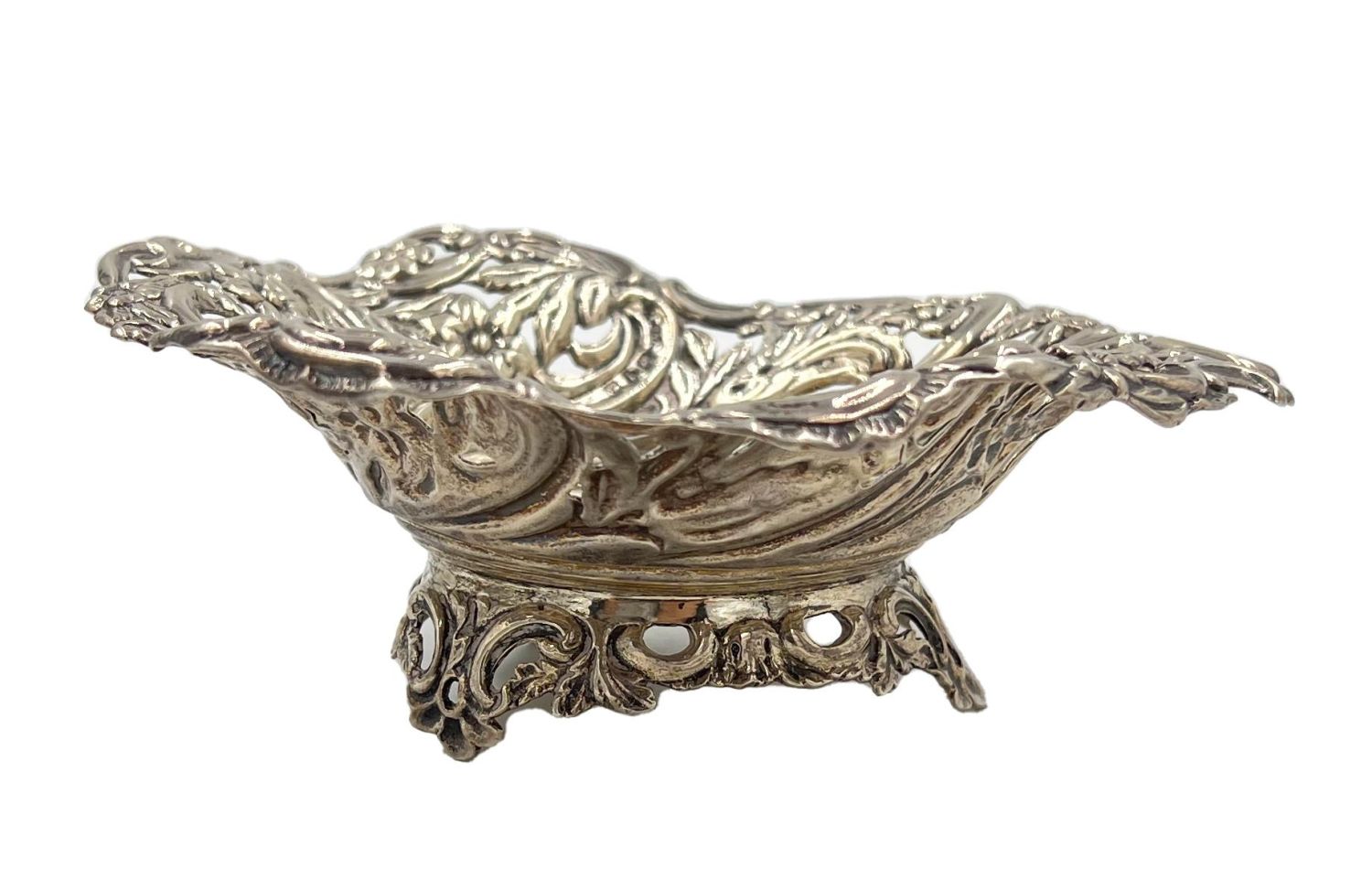 A DECORATIVE SILVER DISH, BIRMINGHAM, DEAKIN & FRANCIS, 1874 H: 5.5cm, W: 14cm, Weight: 122g