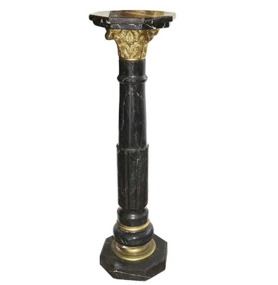 BLACK MARBLE AND ORMOLU MOUNTED FLOOR STANDING PEDESTAL, LATE 19TH CENTURY
