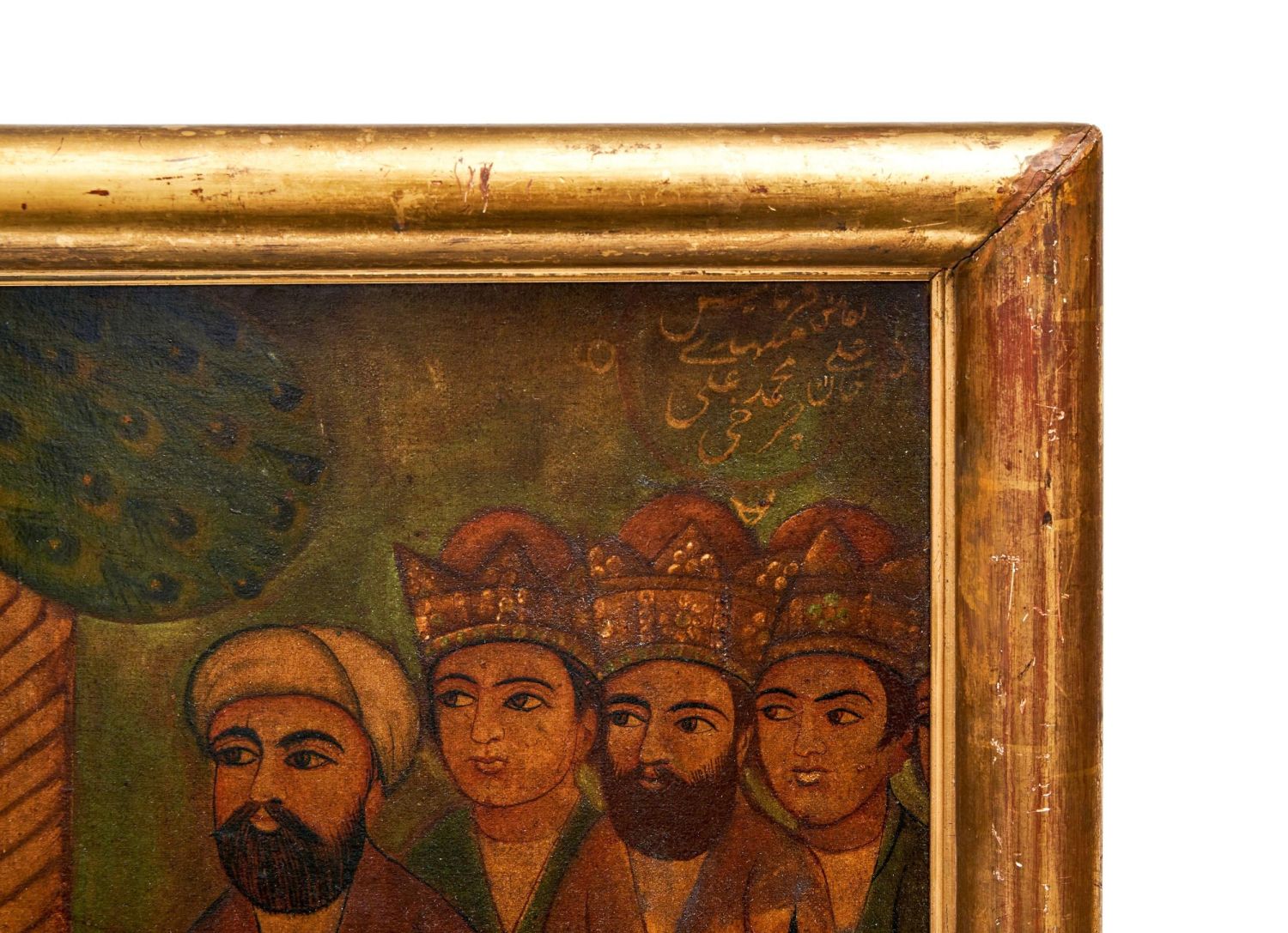 OIL ON CANVAS QAJAR PAINTING DEPICTING A SEATED HOLY MAN, 19TH/20TH CENTURY