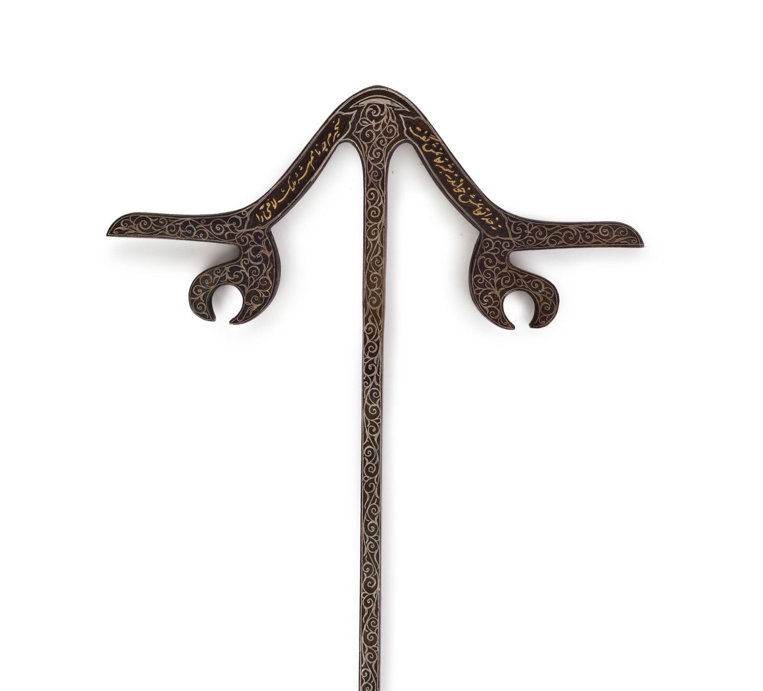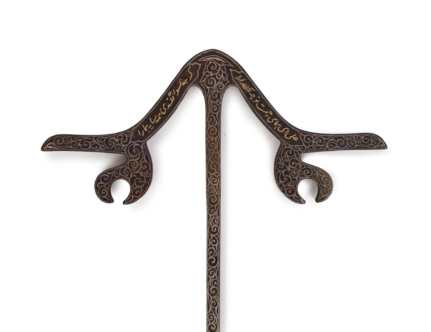 LATE 19TH CENTURY STEEL AND SILVER INLAY DERVISH BEGGING STICK, QAJAR Late 19Th Century Steel And Silver Inlay Dervish Begging Stick, Qajar, Length: 70Cm
