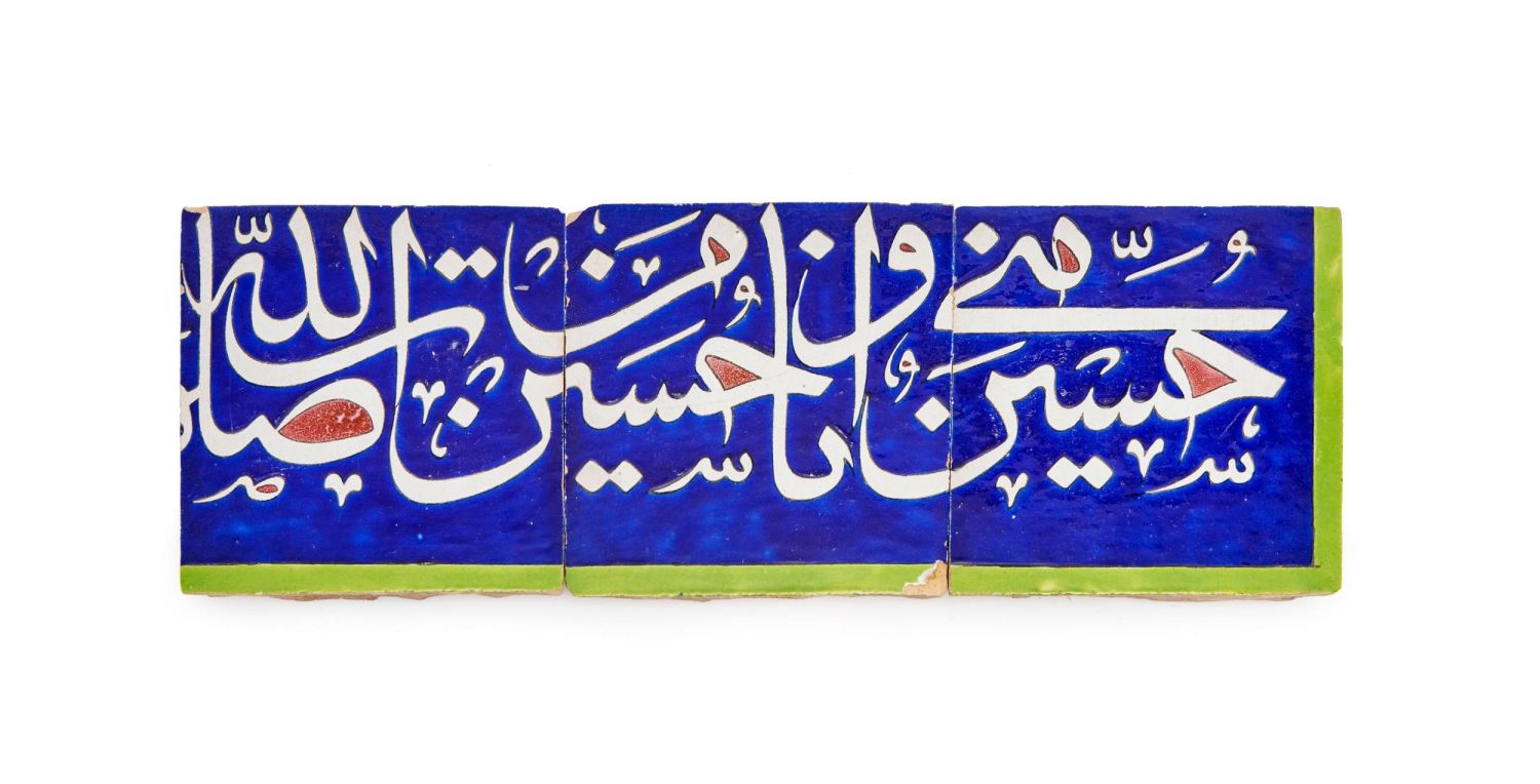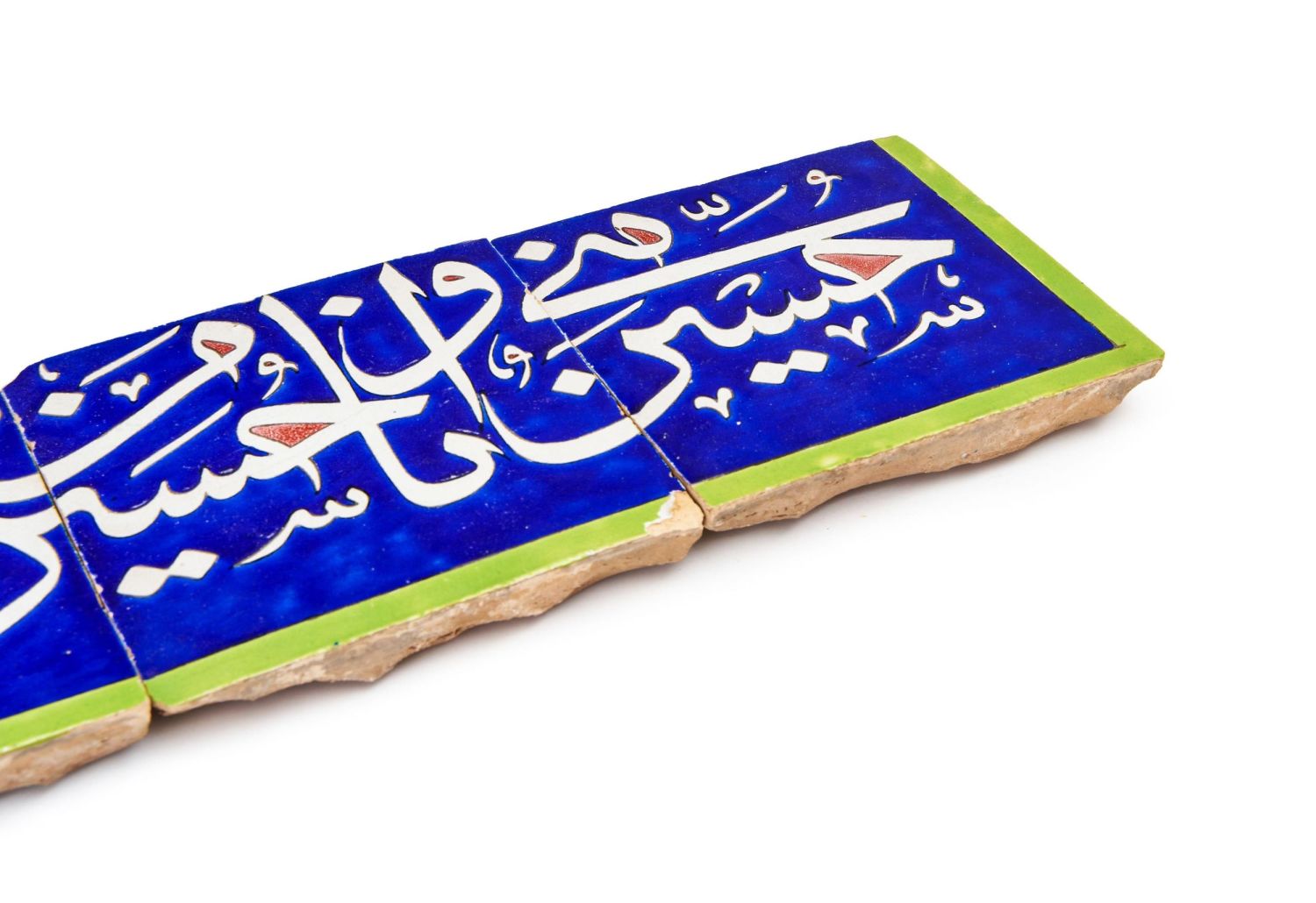 THREE CALLIGRAPHIC GLAZED BLUE TILES, 18TH-19TH CENTURY, PERSIA Three Calligraphic Glazed Blue Tiles, 18th-19th Century, Persia 58cm x 19cm
