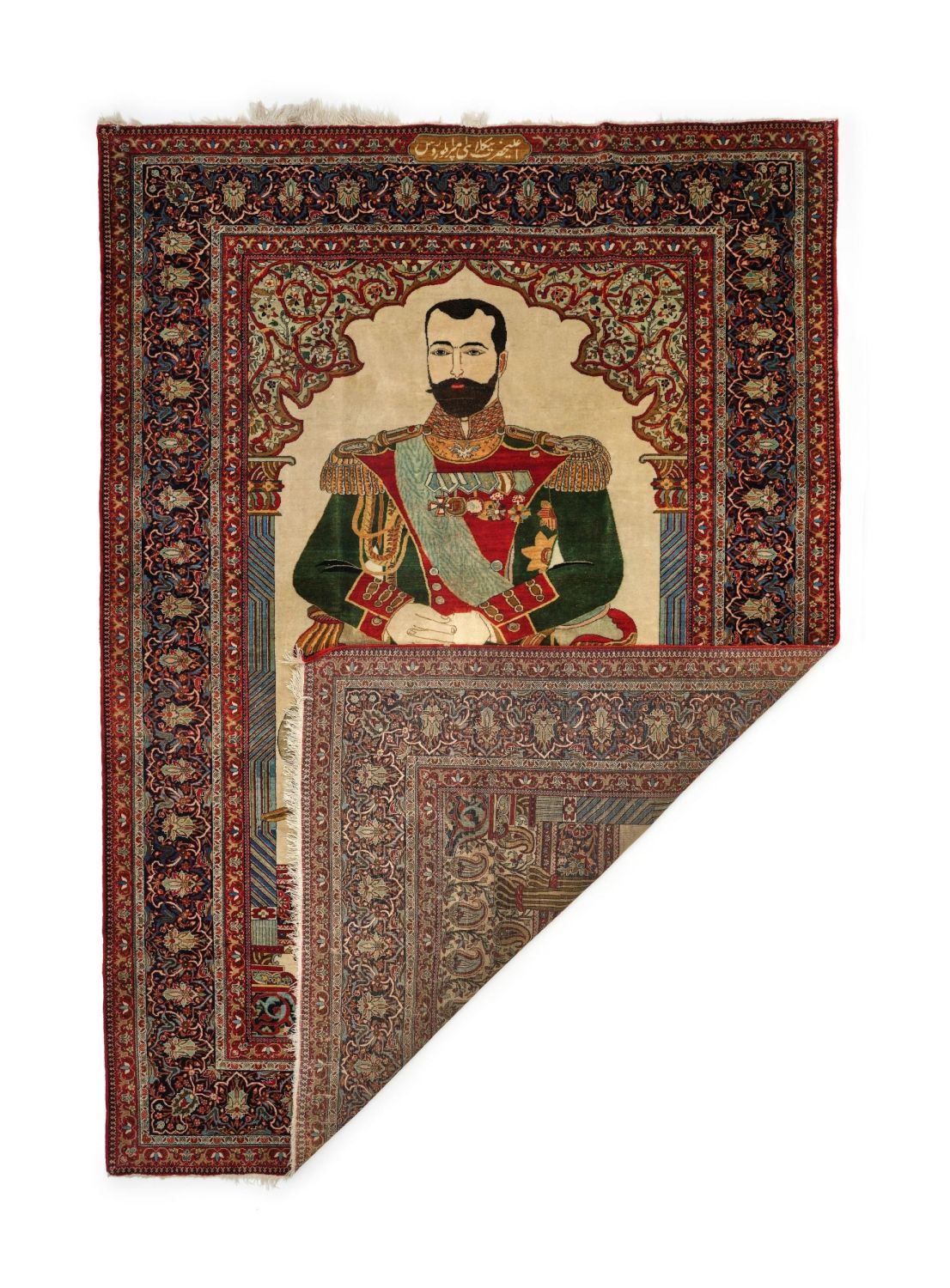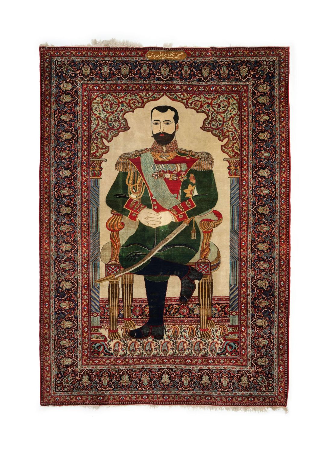 MOHTASHAM KASHAN RUG DEPICTING NICHOLAS II OF RUSSIA Mohtasham Kashan rug depicting Nicholas II of Russia 220cm x 130cm