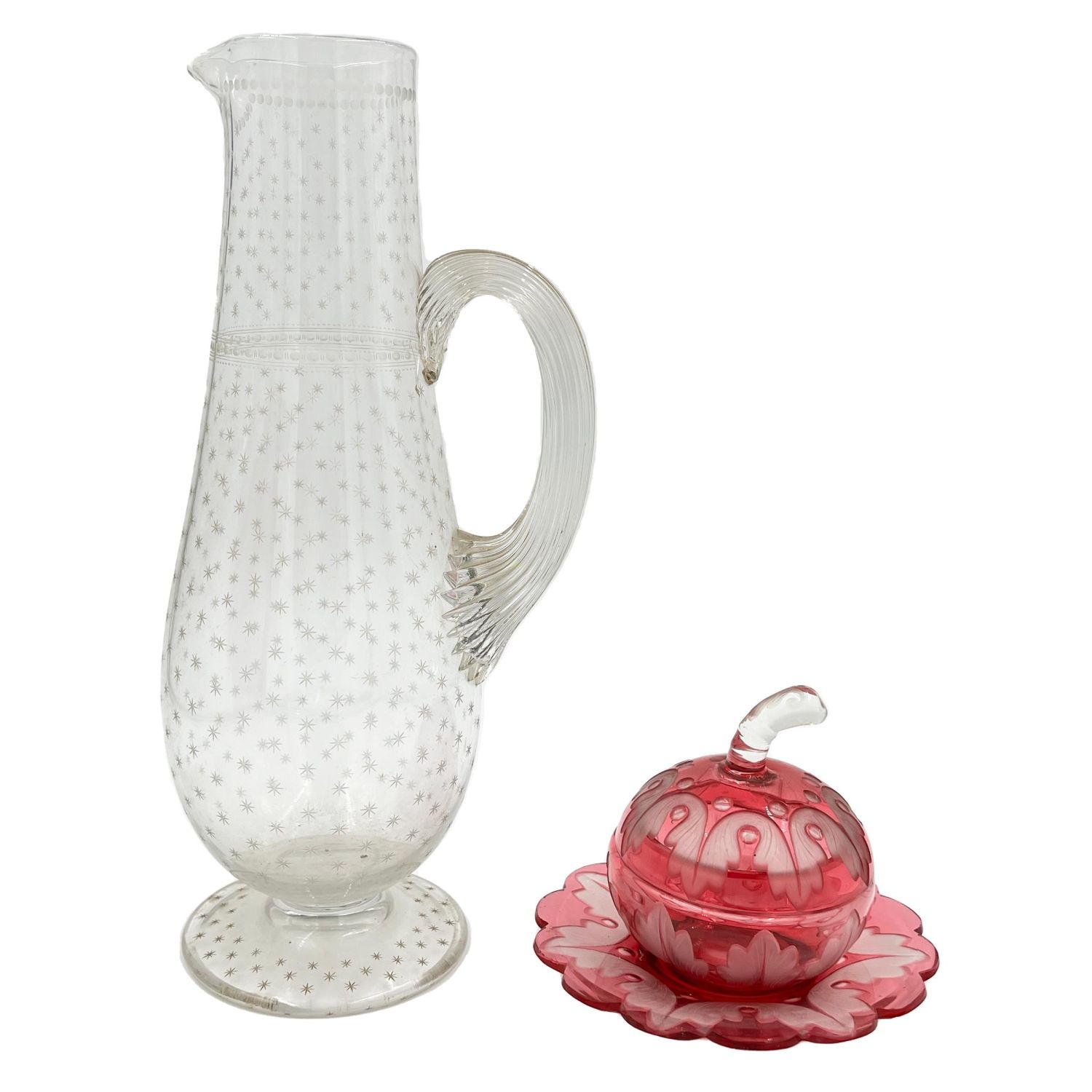 BOHEMIAN GLASS EWER AND BOWL Bohemian glass Ewer, standing at 34cm, with a bowl diameter of 15.5cm