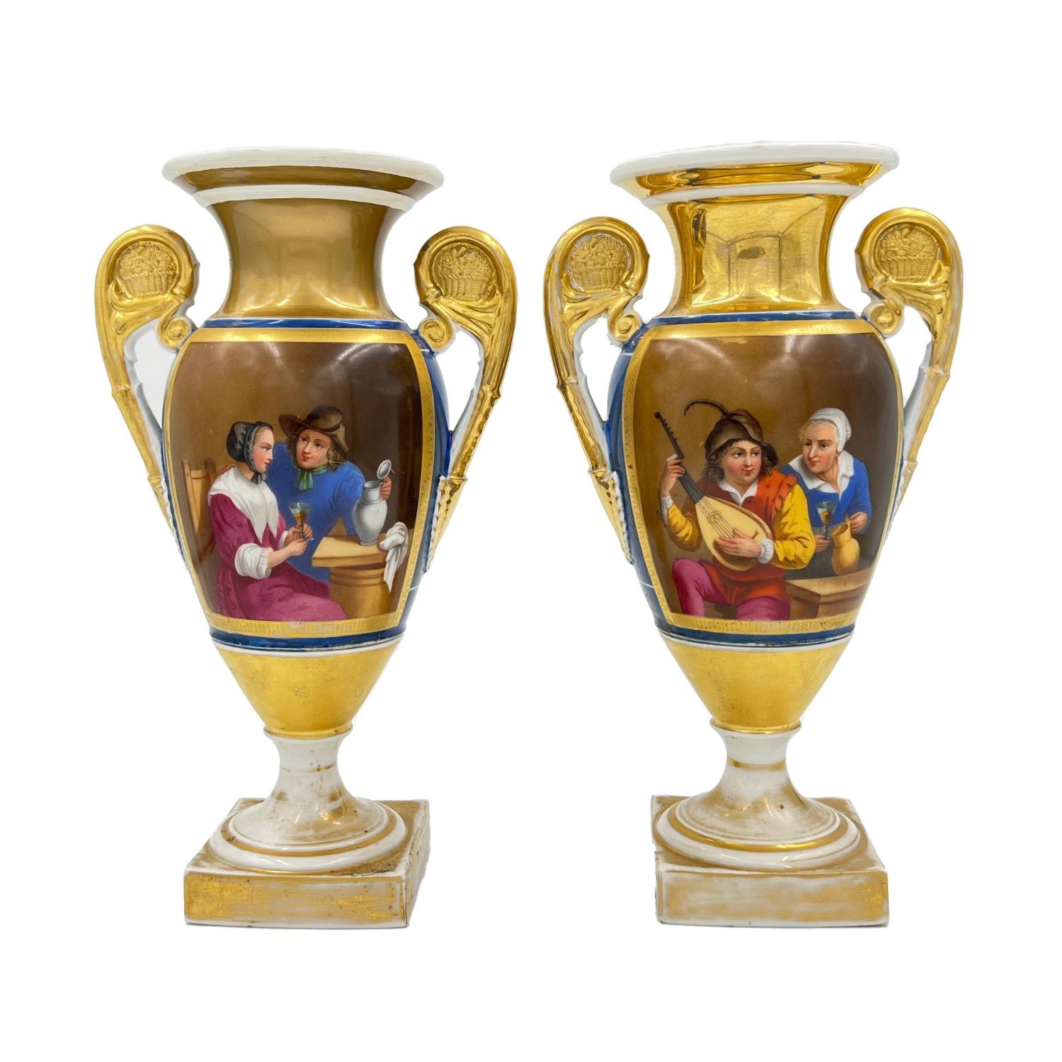 PAIR OF HAND PAINTED PARIS PORCELAIN VASES A charming pair of hand-painted Paris porcelain vases, standing at 30cm tall each.