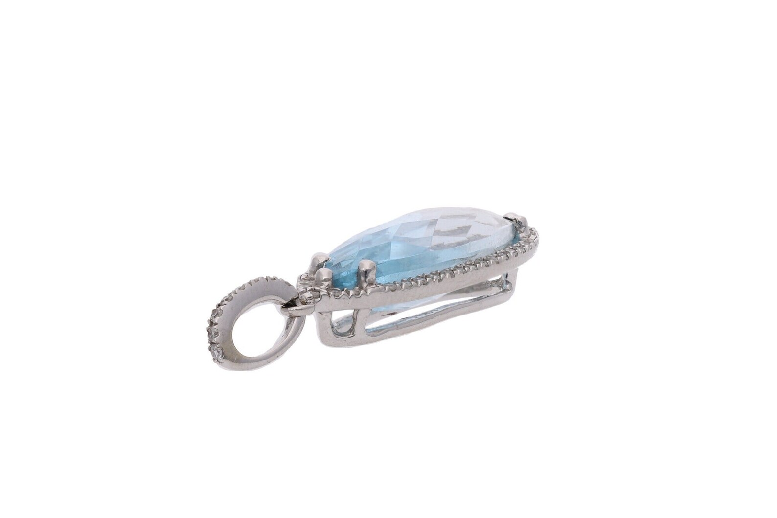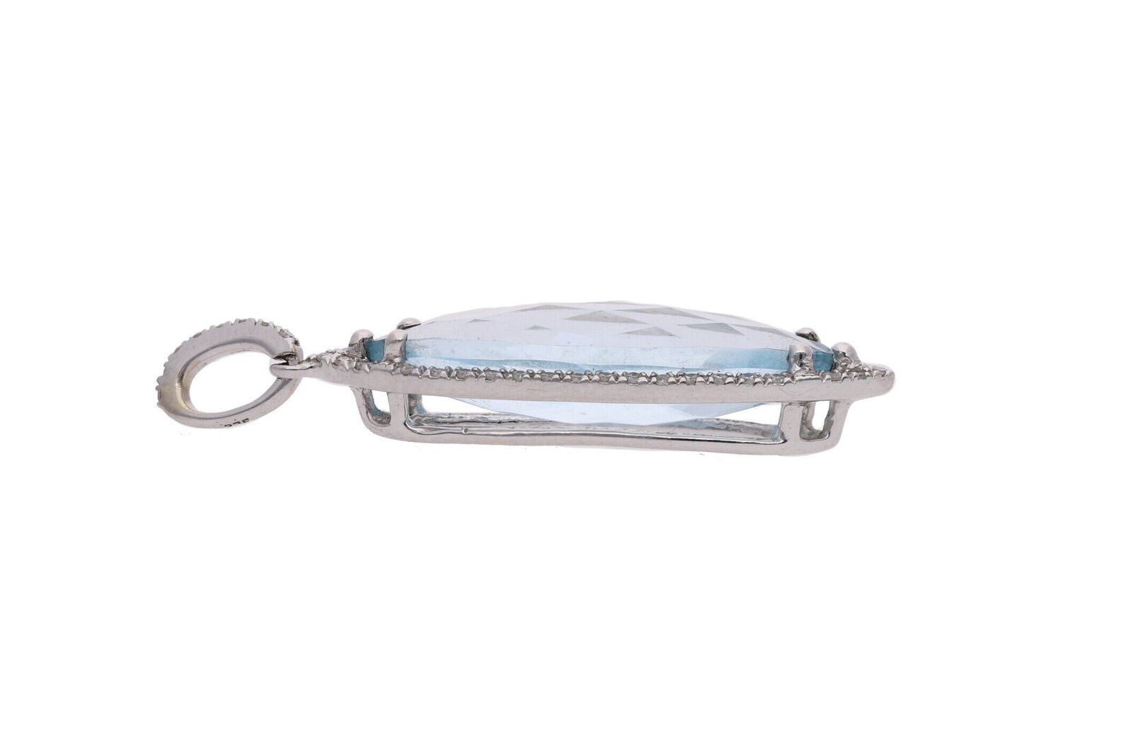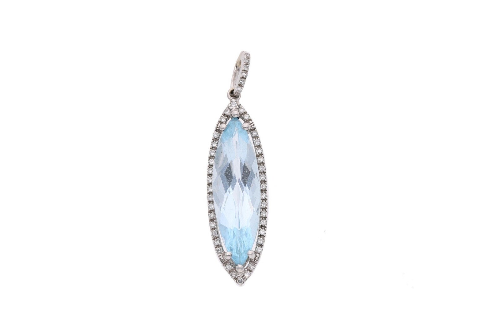 9ct White Gold Marquise Cut Blue Topaz and Diamond Pendant.
