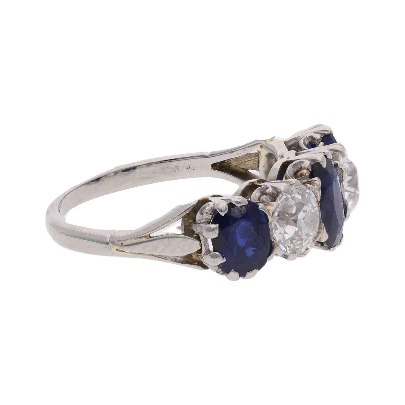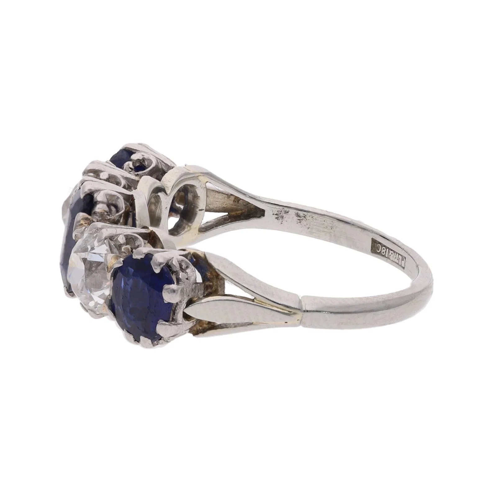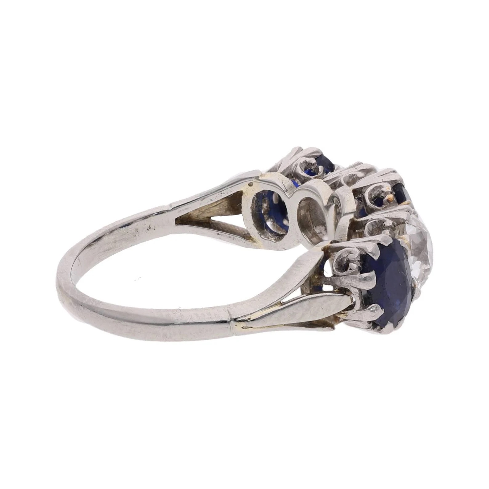 Platinum 18ct Gold Sapphire and Diamond Five Stone Ring.
