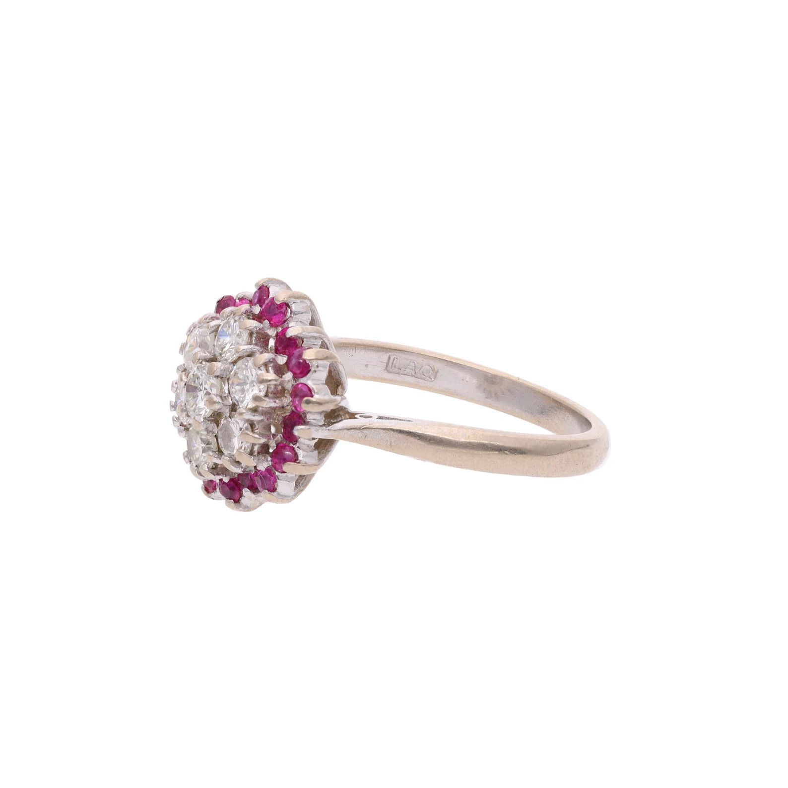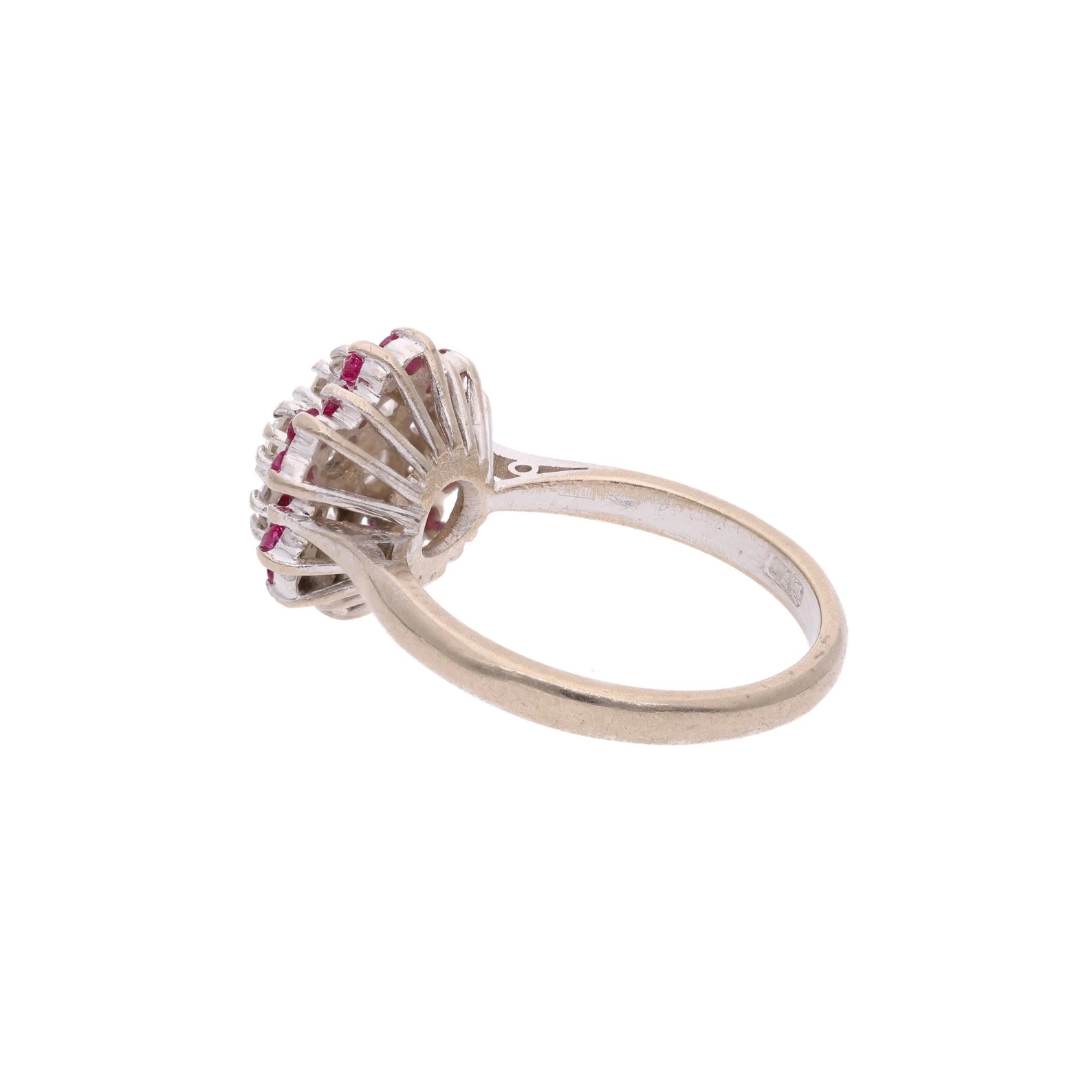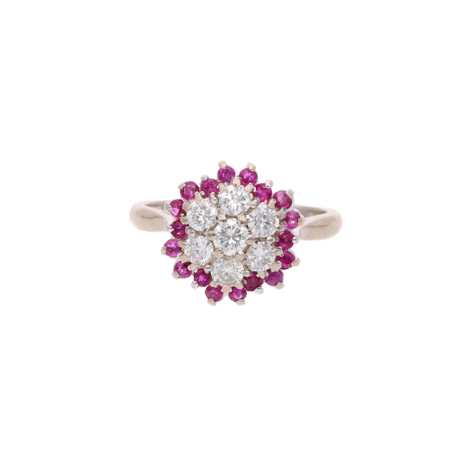 18ct White Gold Ruby and Diamond Cluster Ring.