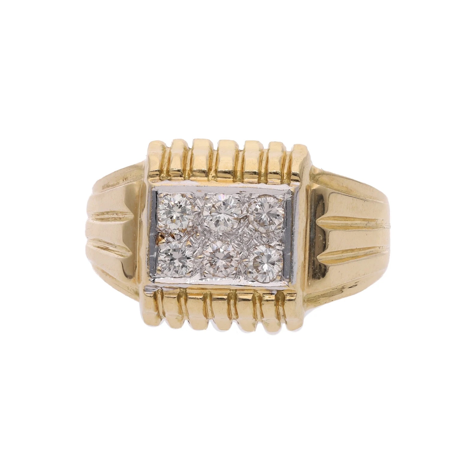 Quality 18ct yellow gold ring with a white gold finish to face and 6 diamond measuring approx .20ct Each, Totalling an impressive 1.2ct of diamonds.