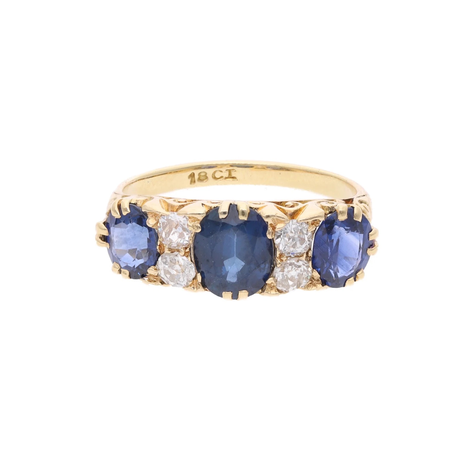Antique 18ct Gold Sapphire and Diamond Ring. (sh101/16)