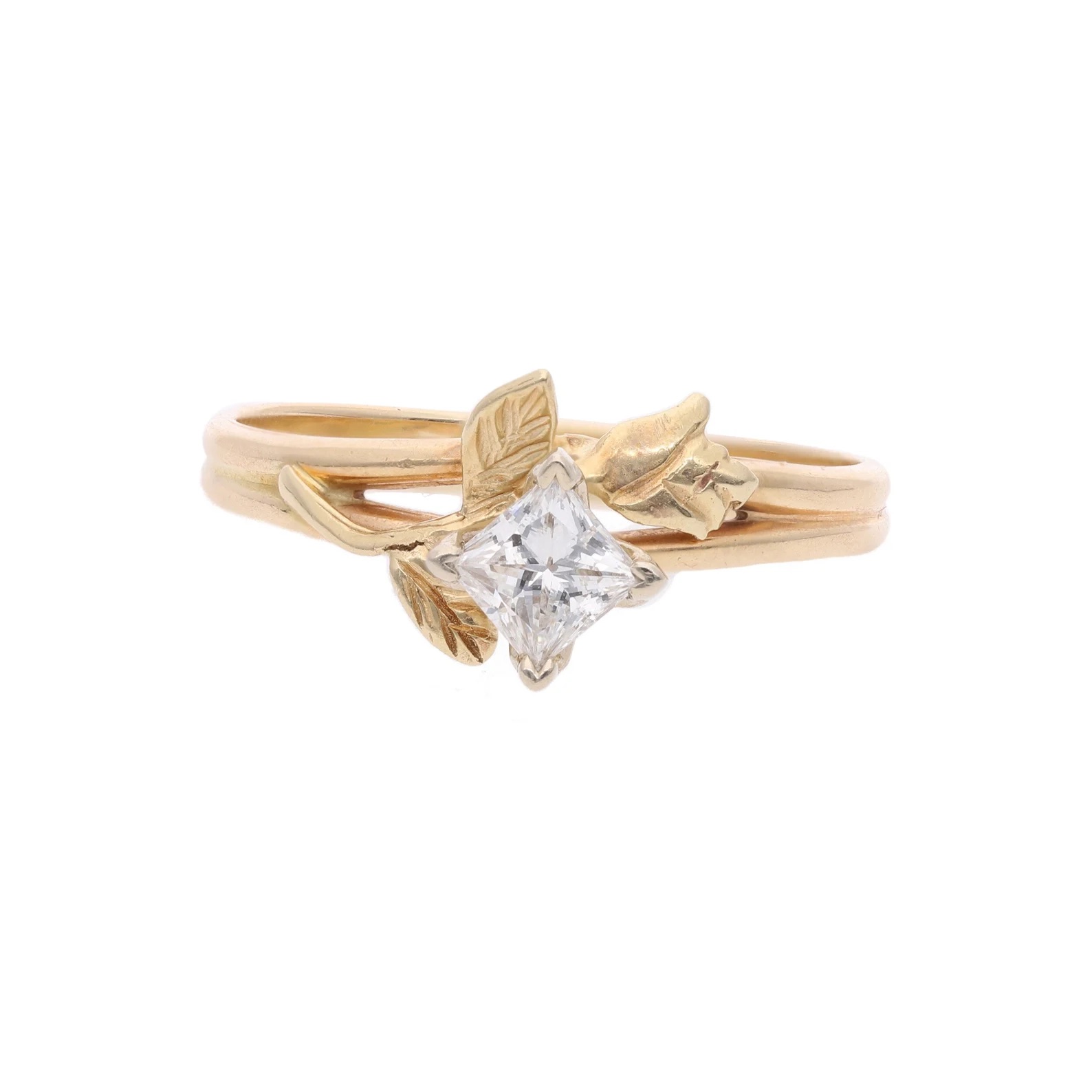 14ct Gold and Princess Cut Diamond Flower Ring.