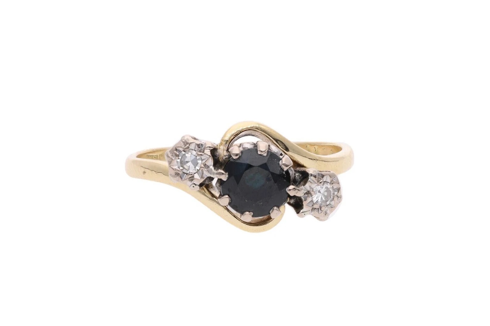 18ct Gold Sapphire and Diamond Three Stone Ring.