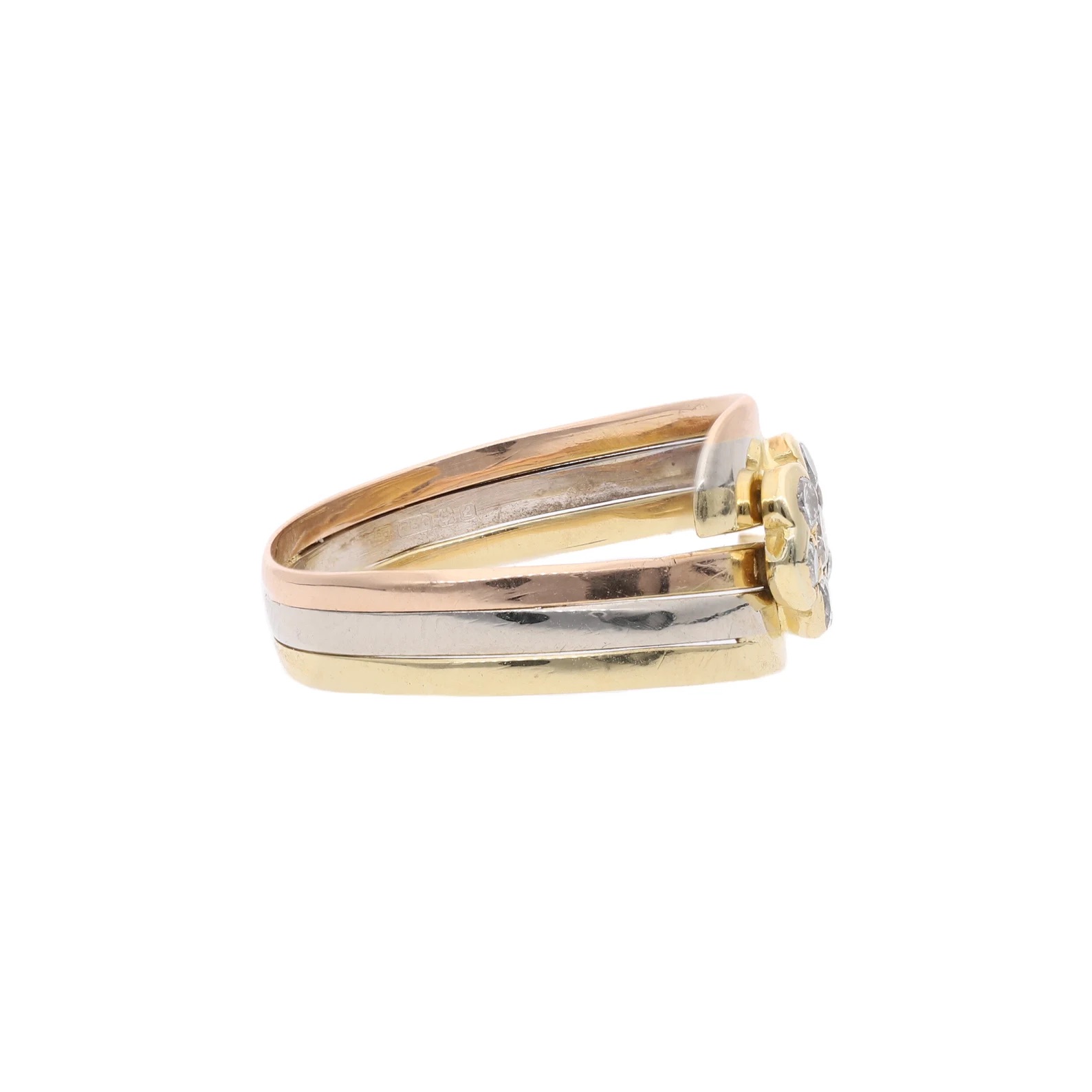 18ct Gold Three Tone Diamond Daisy Ring.