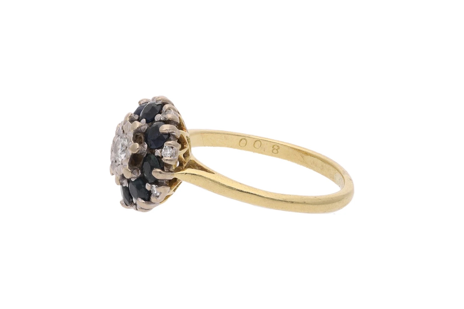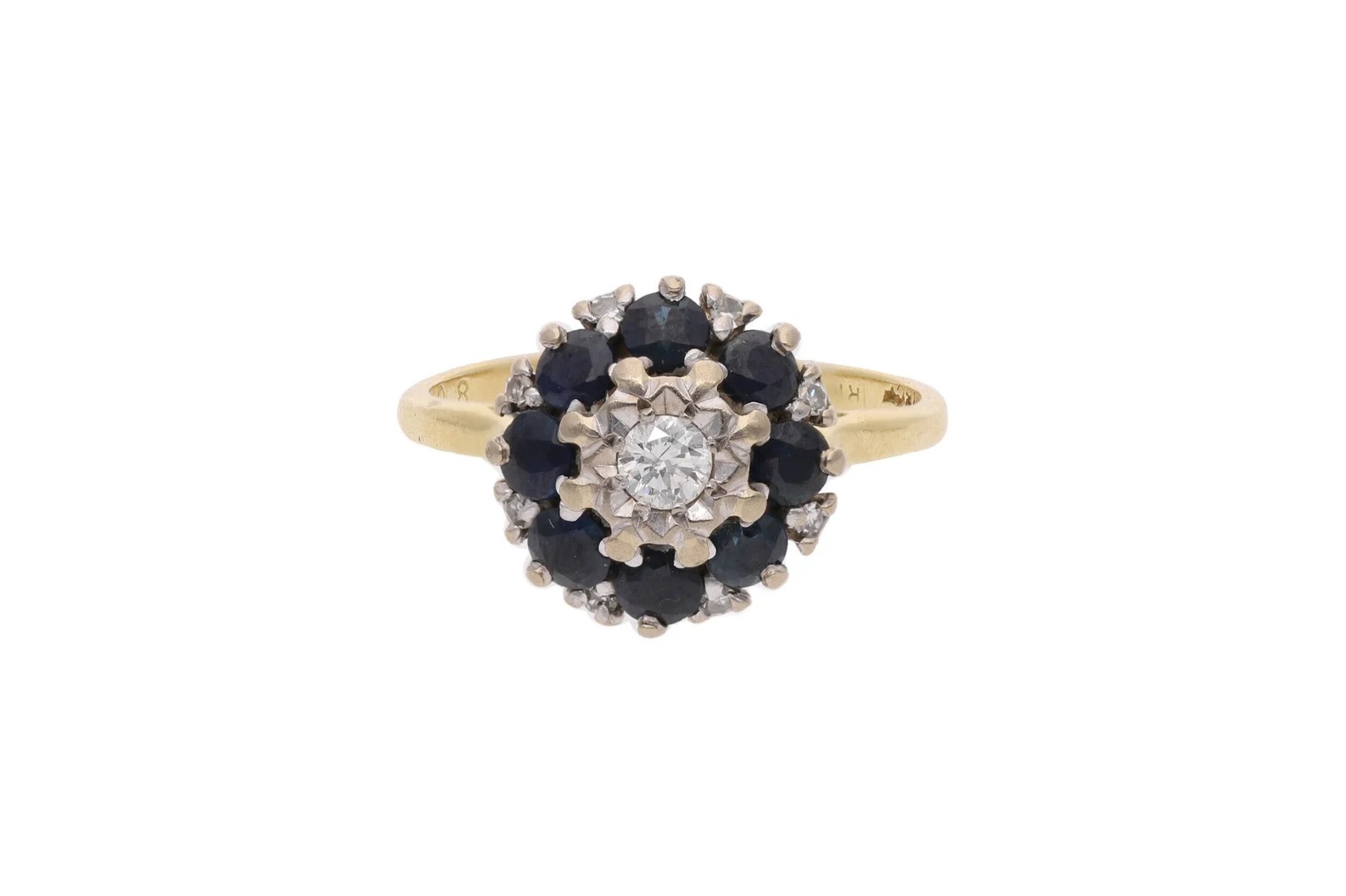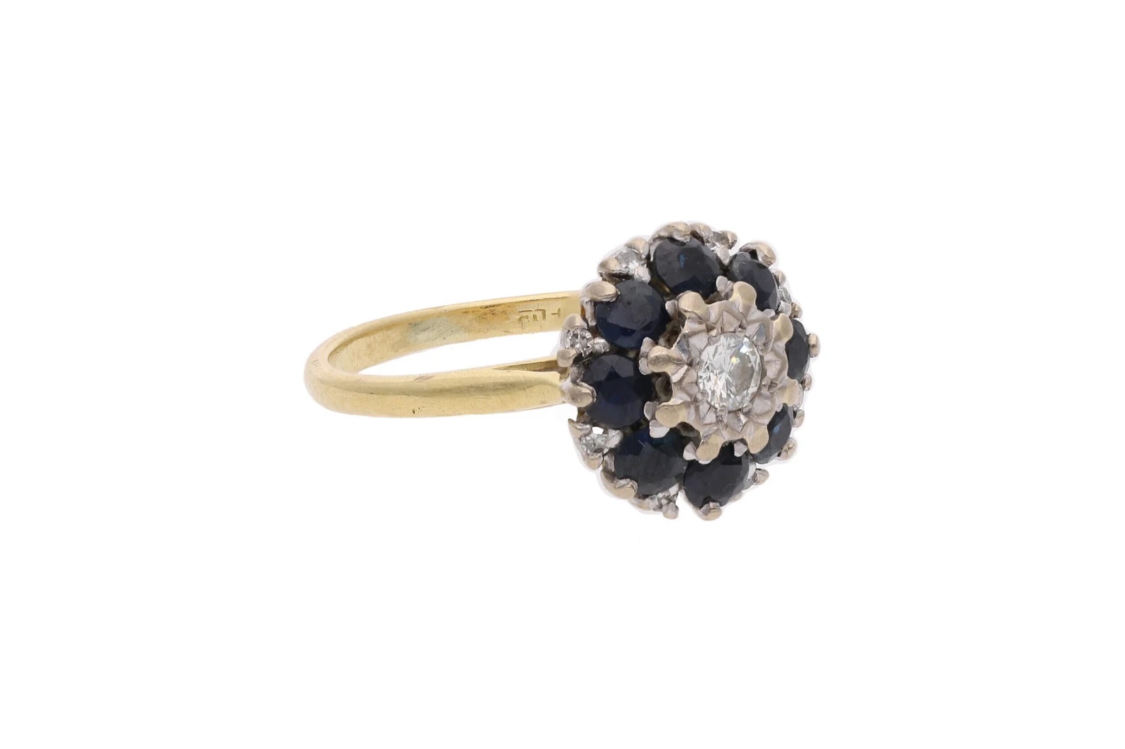 18ct Gold Sapphire and Diamond Cluster Ring.