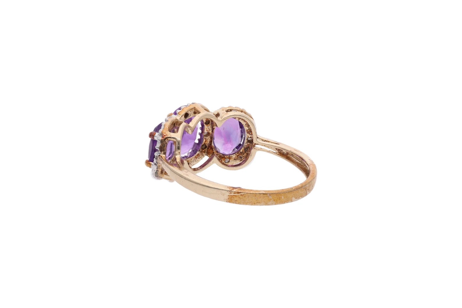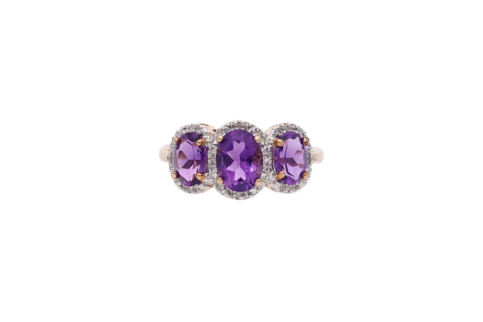 9ct Gold Amethyst and Diamond Three Stone Ring.