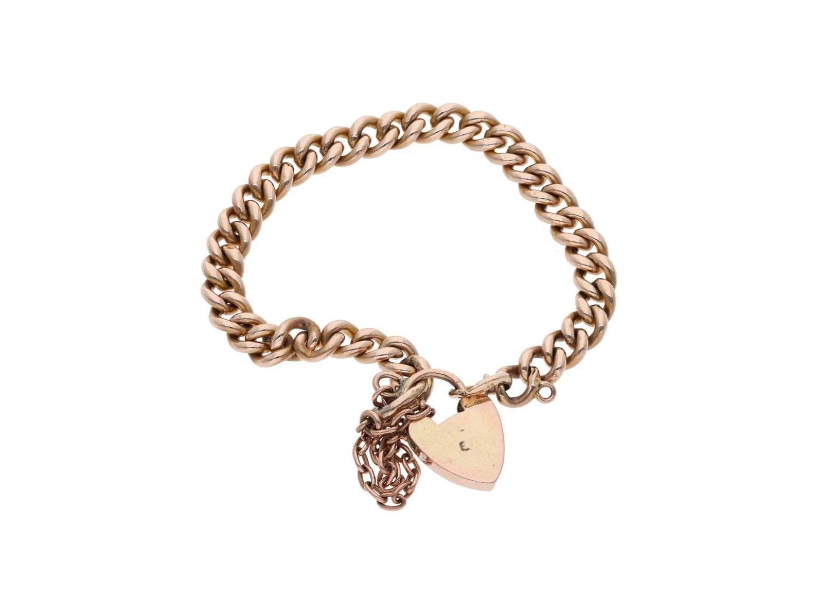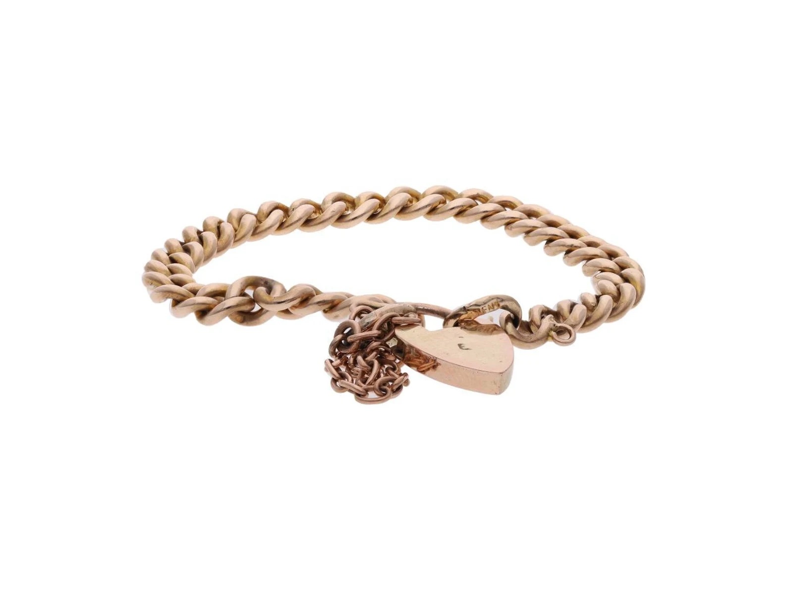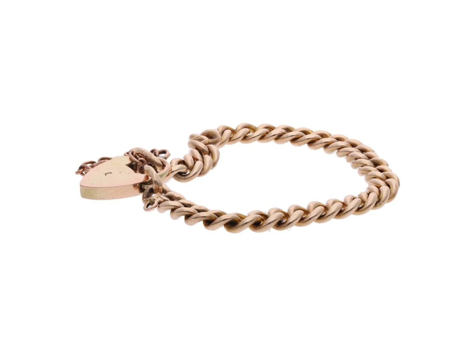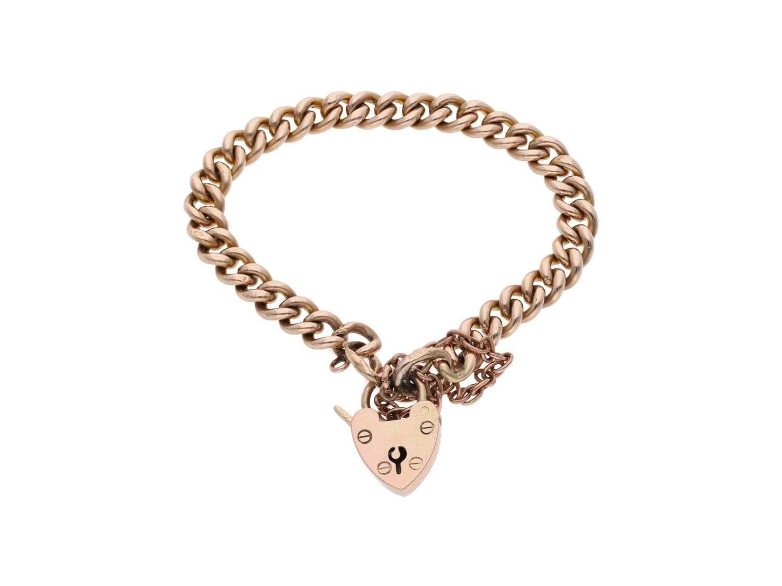 Small 9ct Rose Gold Heart Padlock Charm Bracelet.