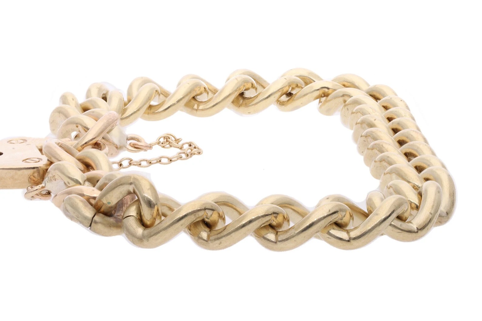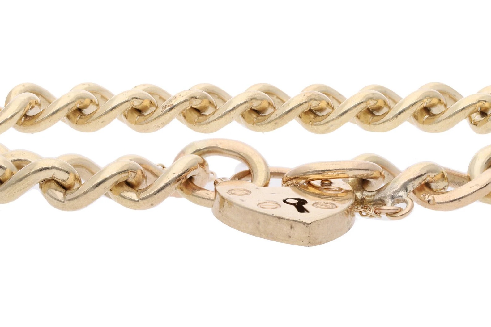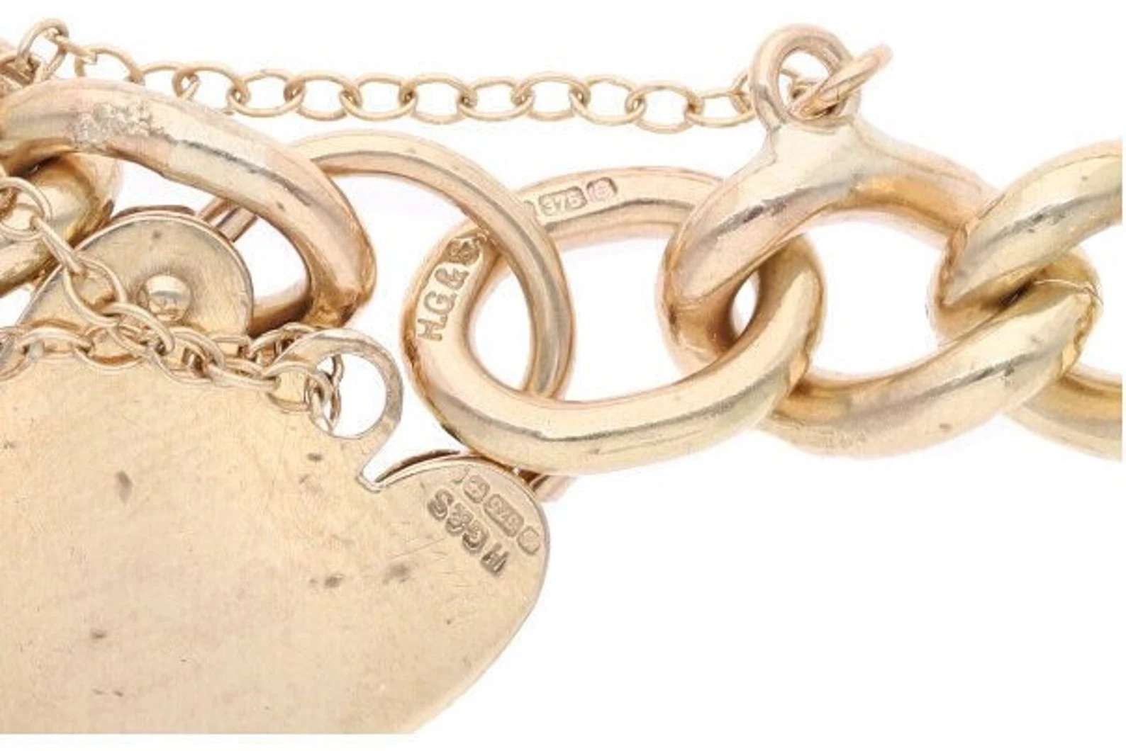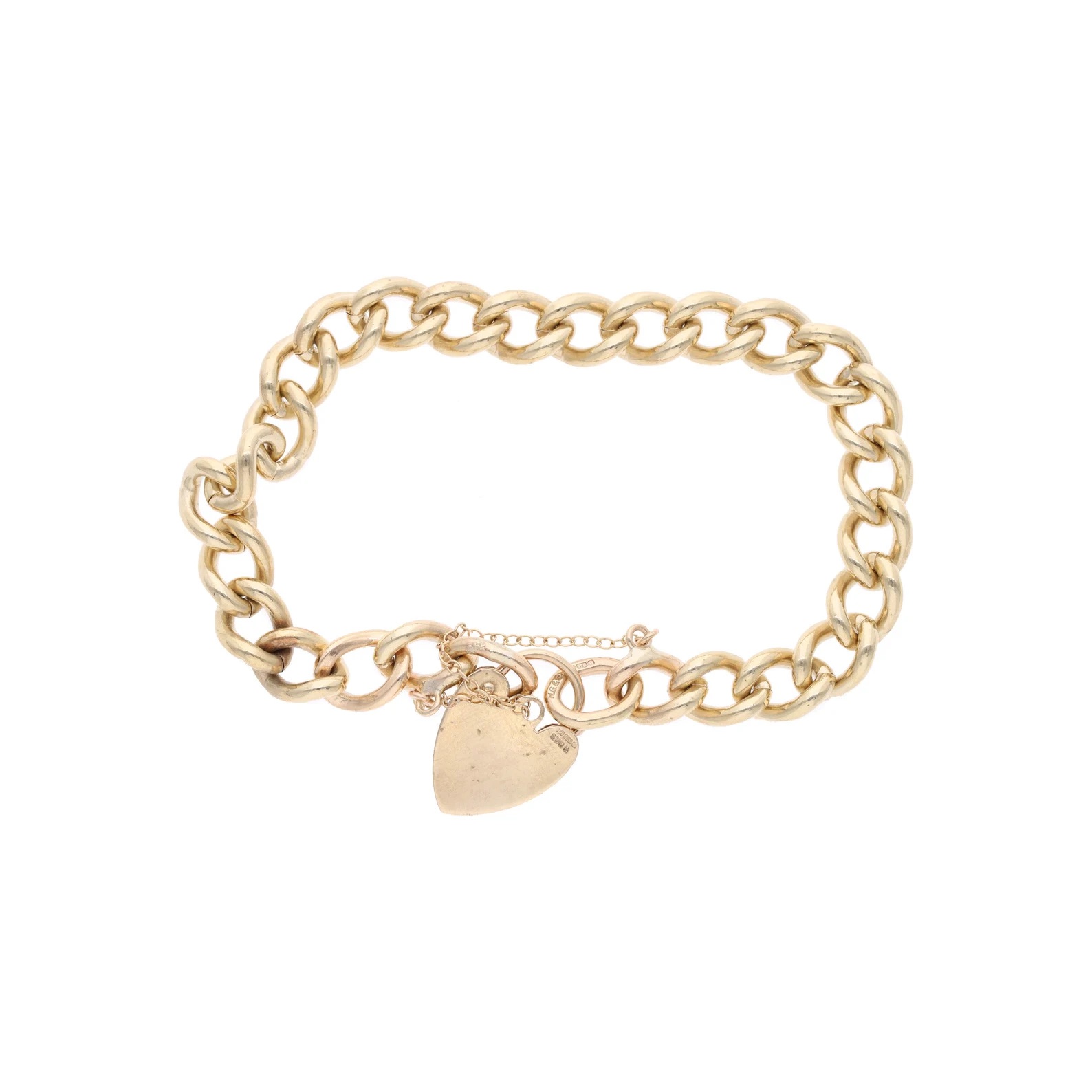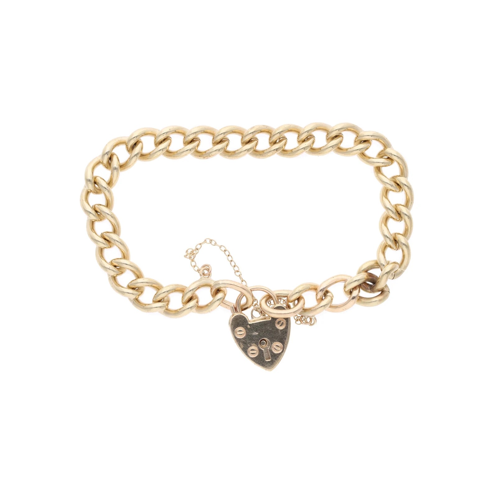 9ct Gold Heart Padlock Link Charm Bracelet.