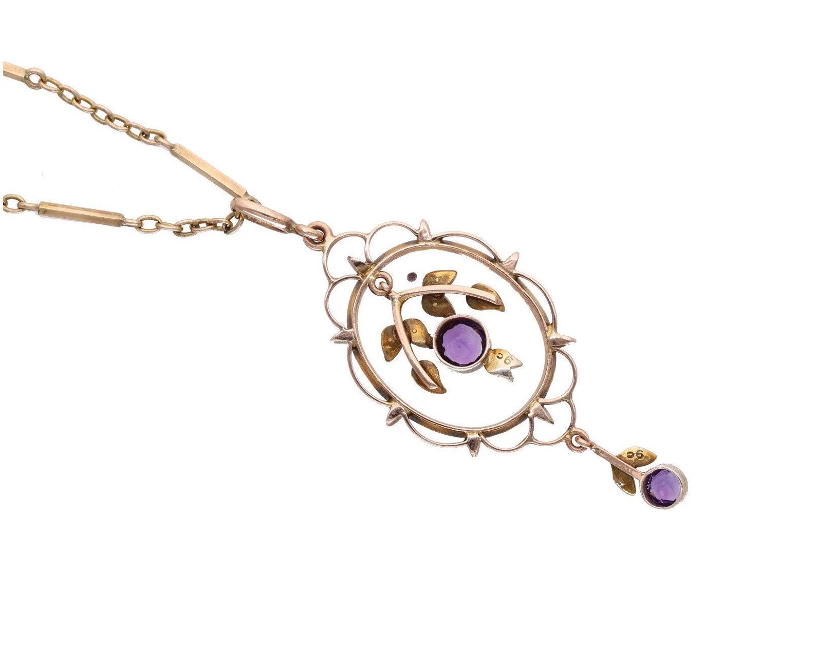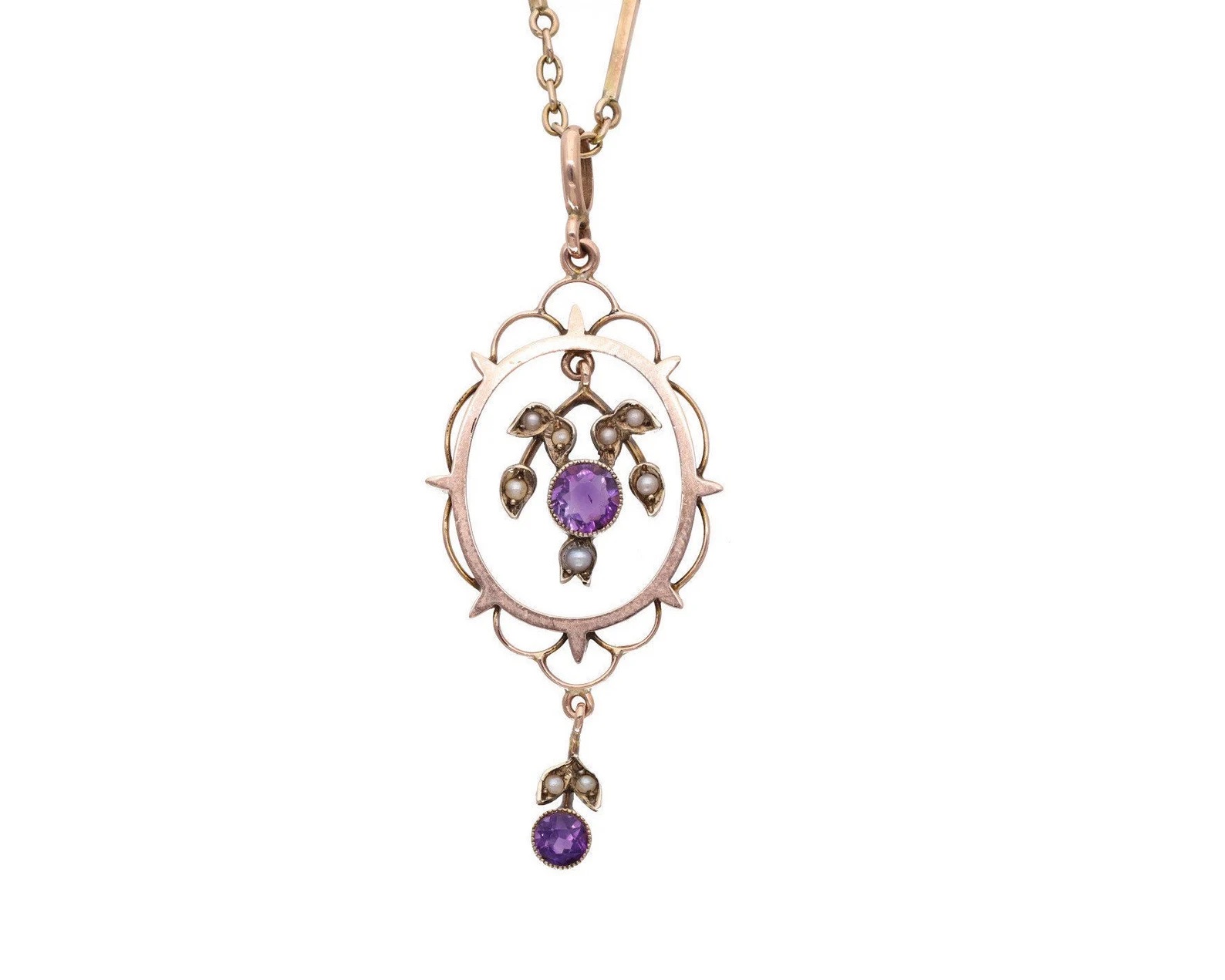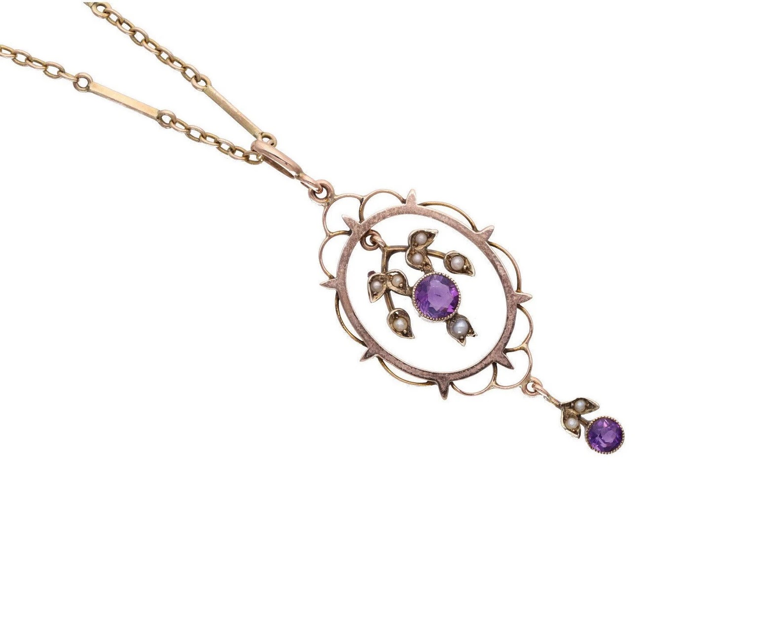 Antique 9ct Gold Amethyst and Pearl Necklace.