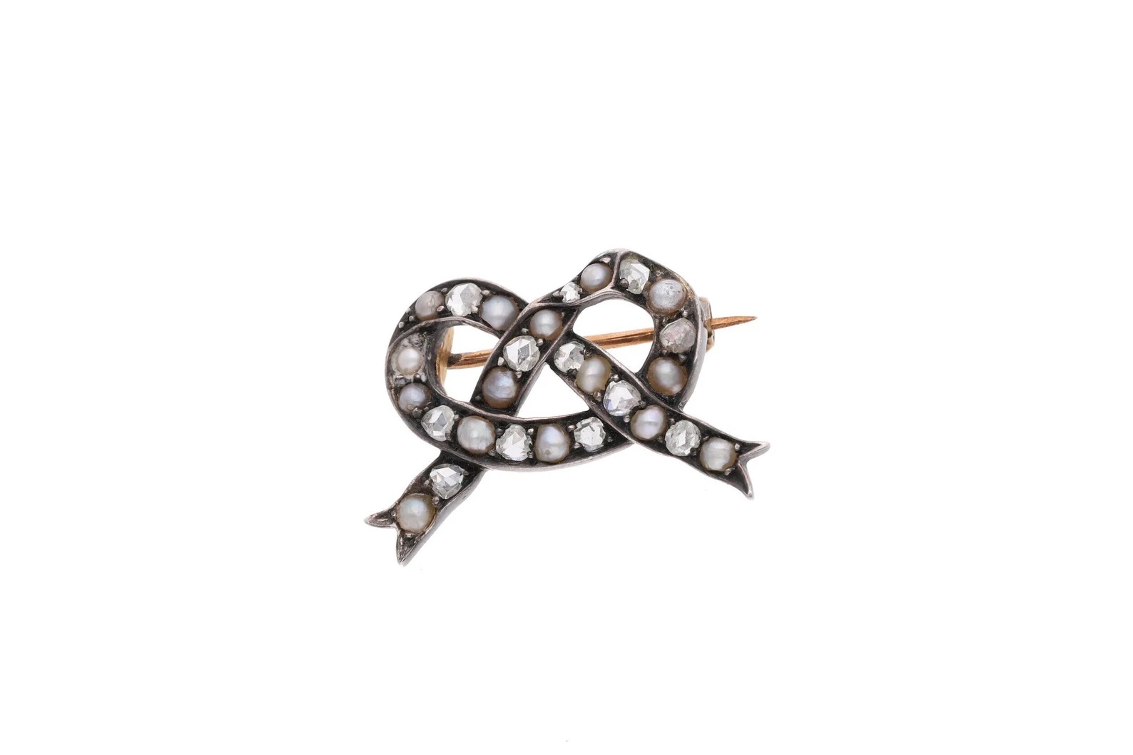 Antique Pearl and Diamond Bow tie Brooch.