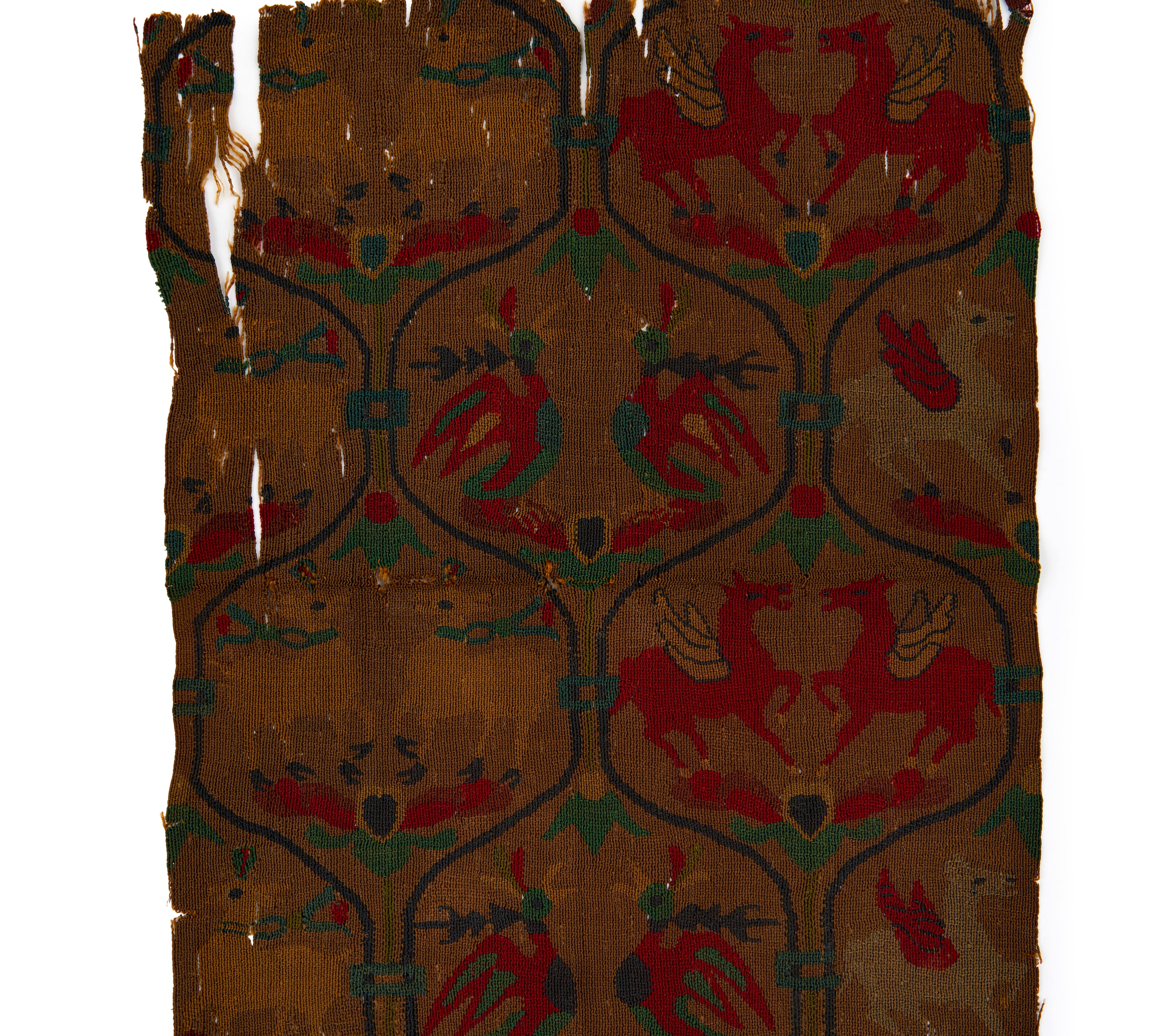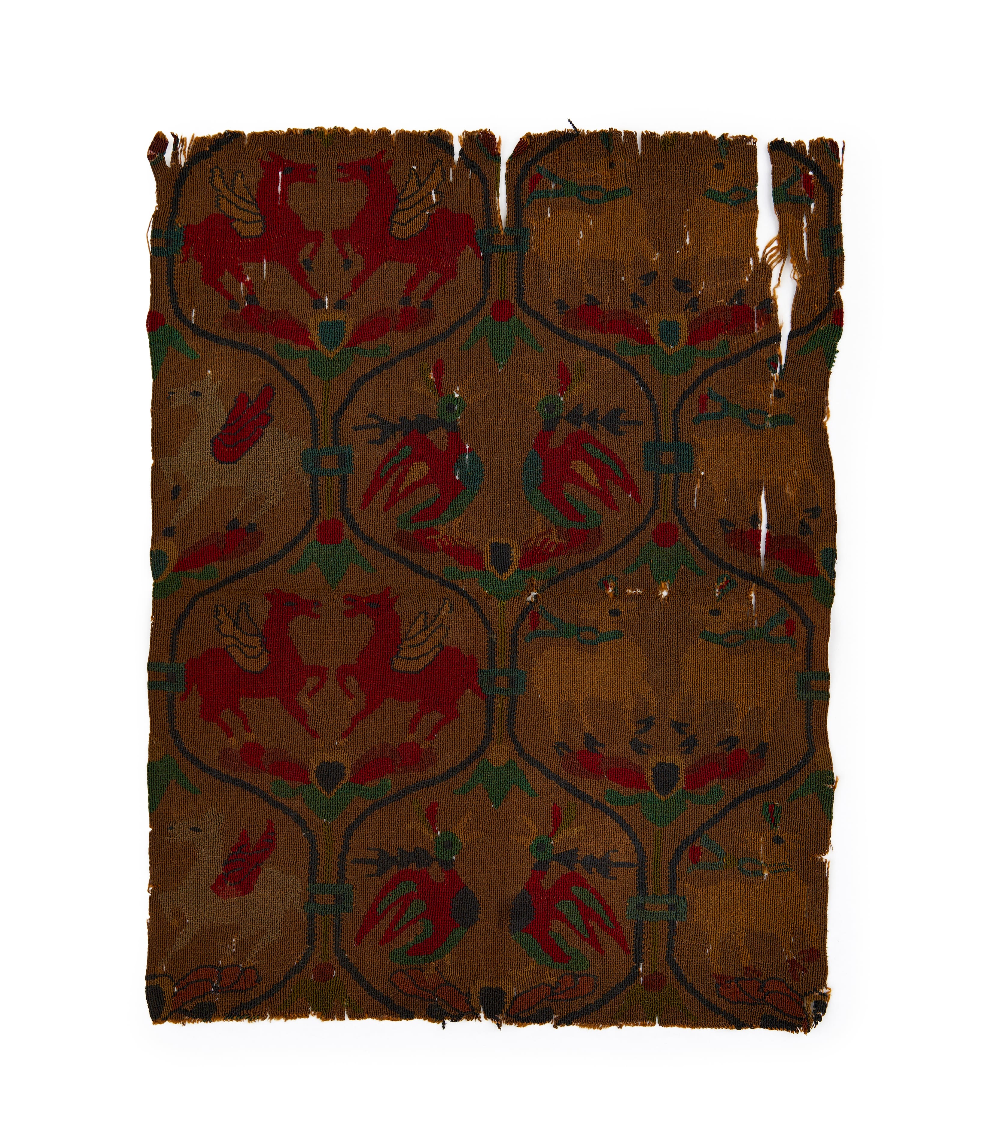 A SOGDIAN SILK SAMITE FRAGMENT WITH WINGED HORSES, CENTRAL ASIA, 7TH-9TH CENTURY