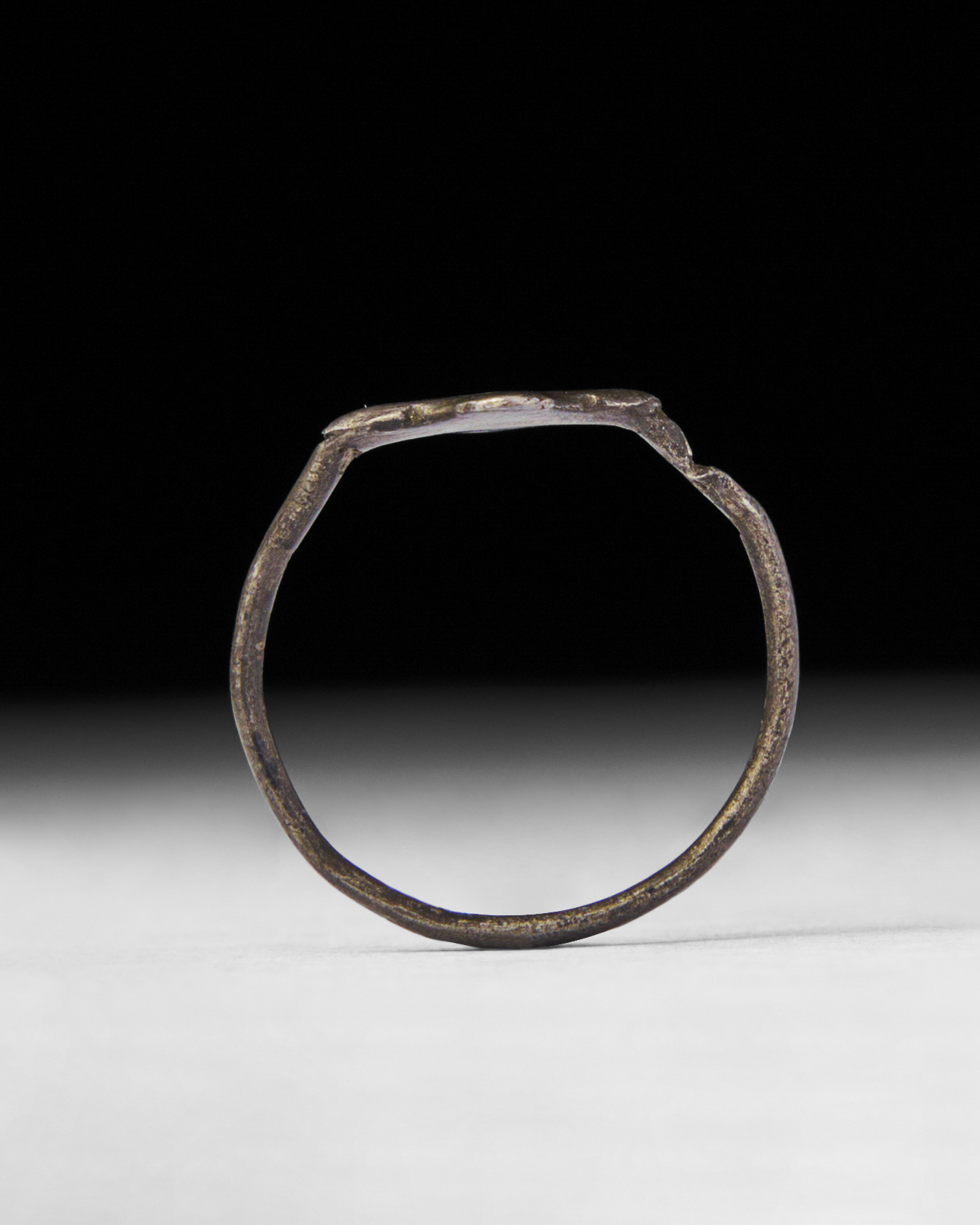 This Byzantine silver ring dates back to the 6th-7th century A.D. The ring features a distinct, square-shaped bezel adorned with a simple yet striking blue enamel inlay.
