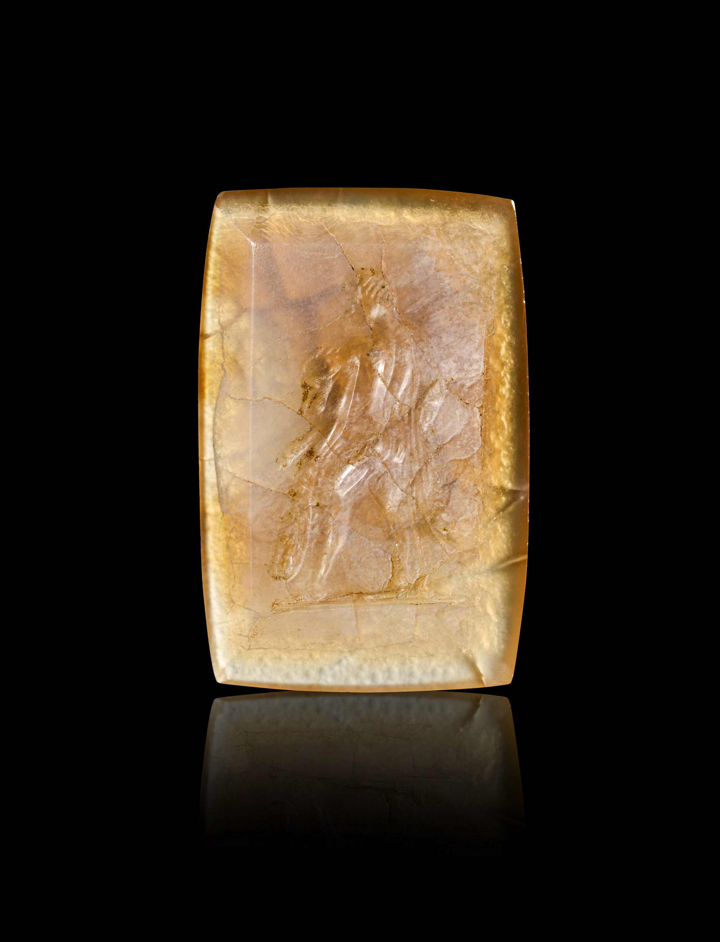 A CHALCEDONY INTAGLIO DEPICTS HERCULES HOLDING FOUR PART OF A LION, 1ST CENTURY B.C. – 1ST CENTURY A.D. OR LATER