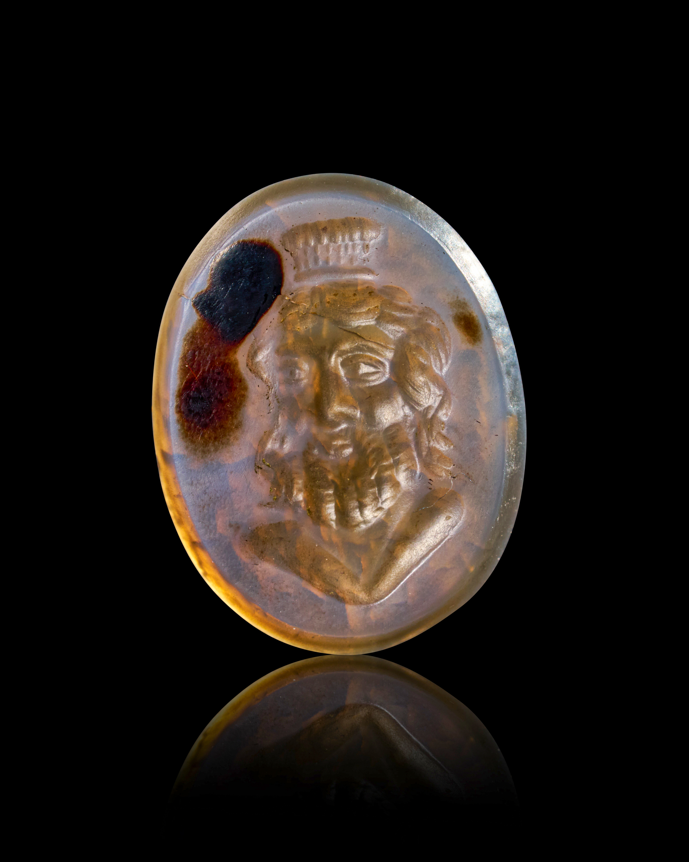 A ROMAN CHALCEDONY AGATE POSING AS SERAPIS, 2ND – 3RD CENTURY A.D. OR LATER