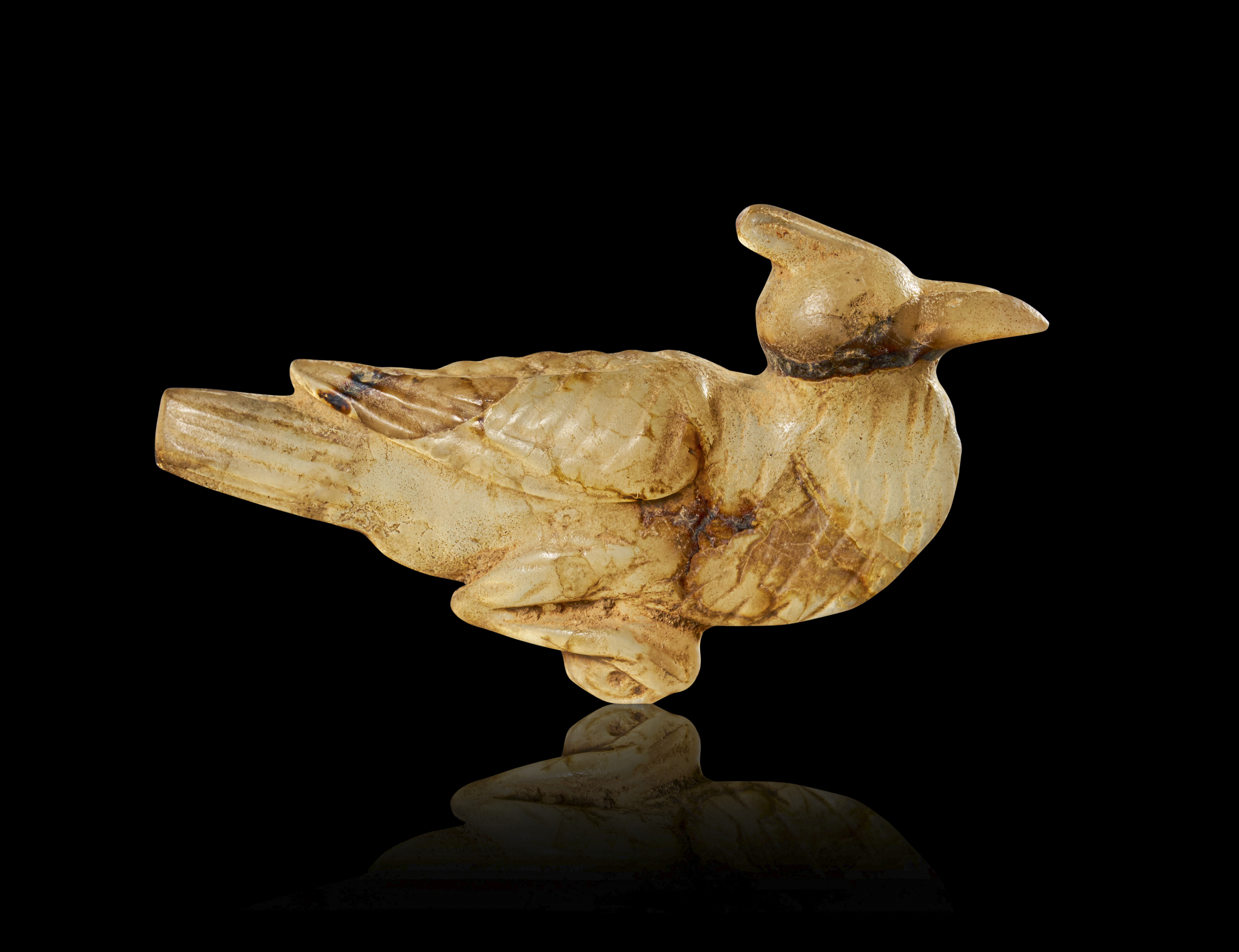 A SEATED AGATE BIRD ATTACHMENT OF A VESSEL, HELLENISTIC PERIOD