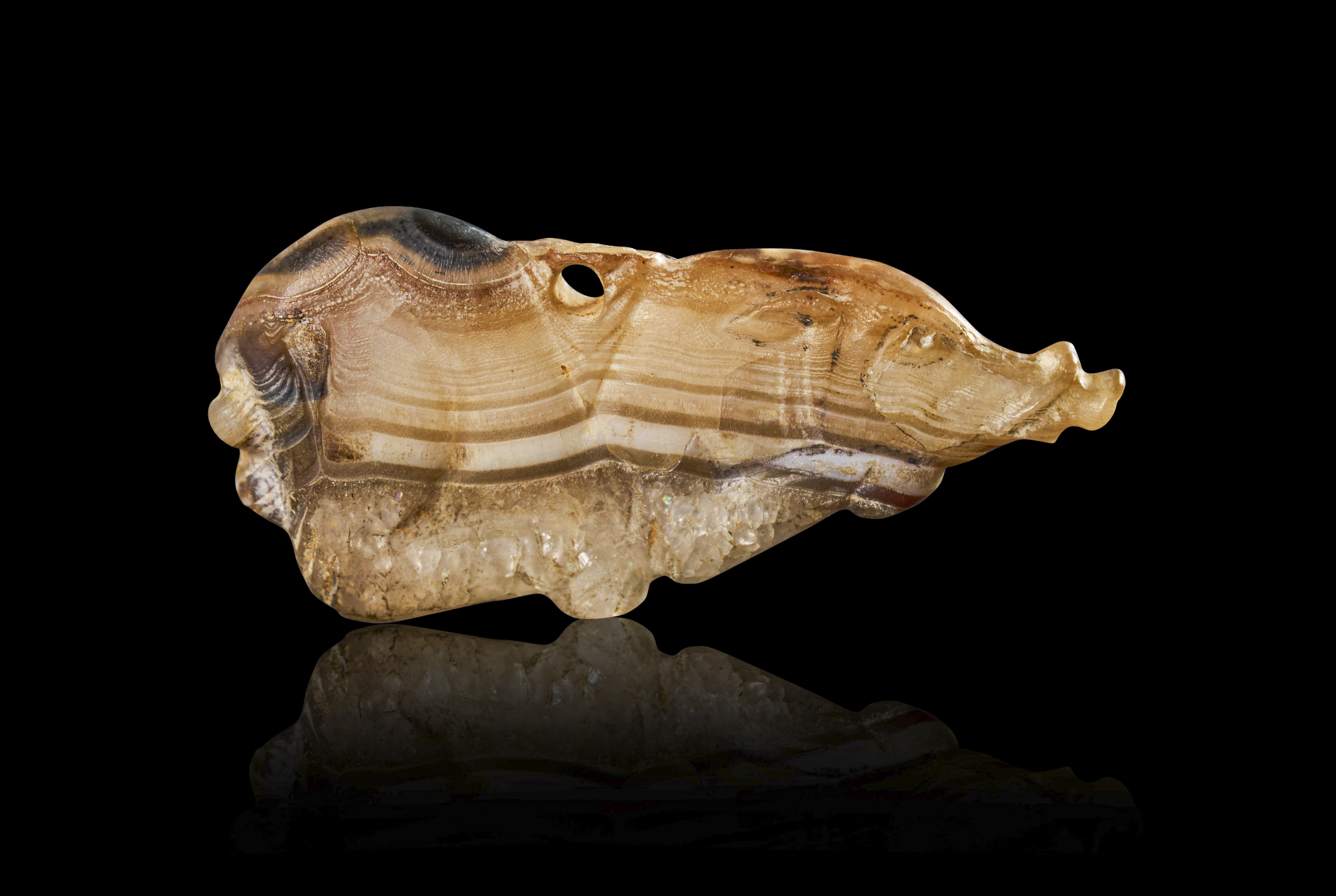 A CHALCEDONY AGATE IN THE FORM OF A WILD BOAR AS A PENDANT, CLASSICAL PERSIAN PERIOD