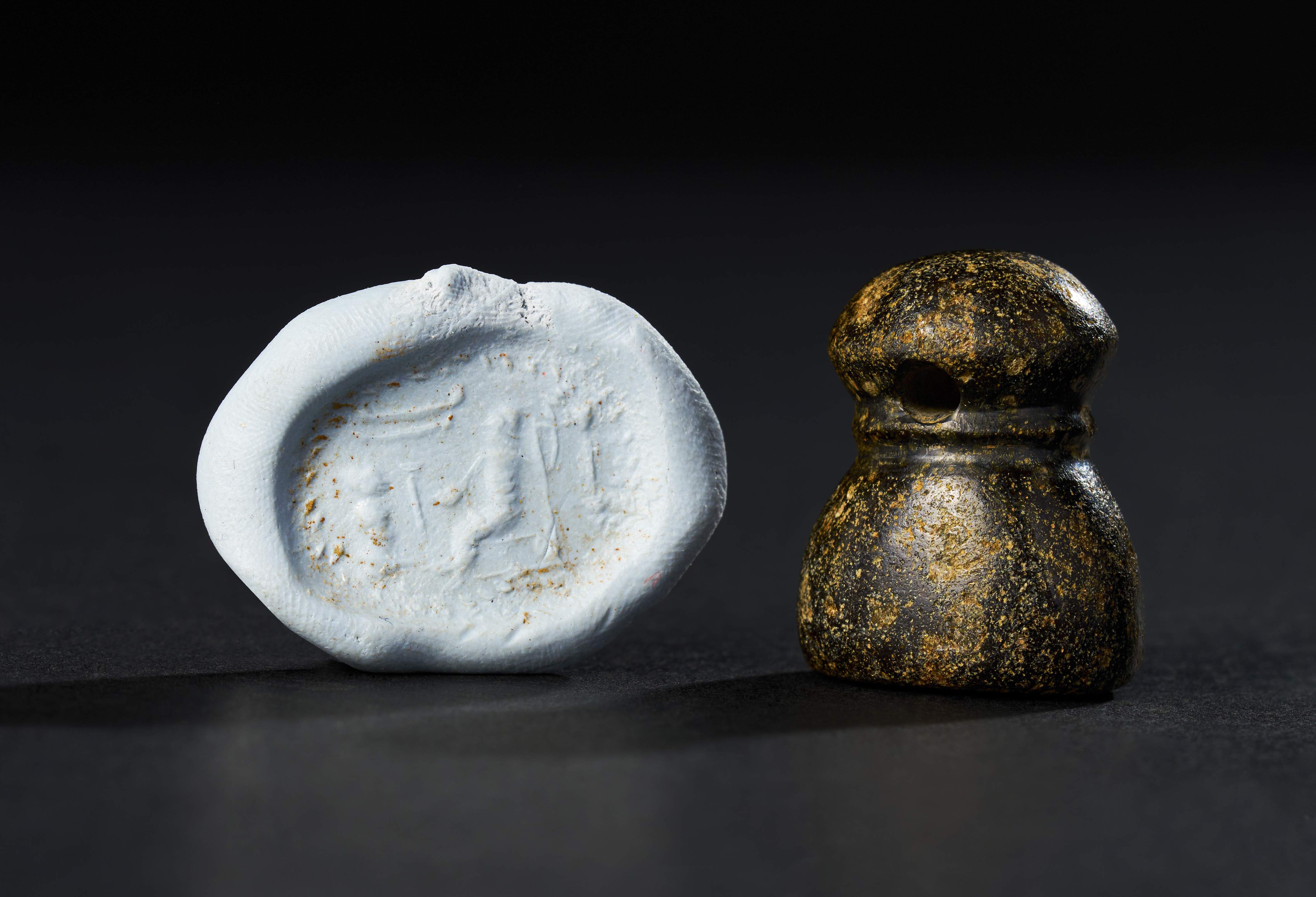 AN ANCIENT STEATITE STONE STAMP SEAL, NEO BABYLONIAN