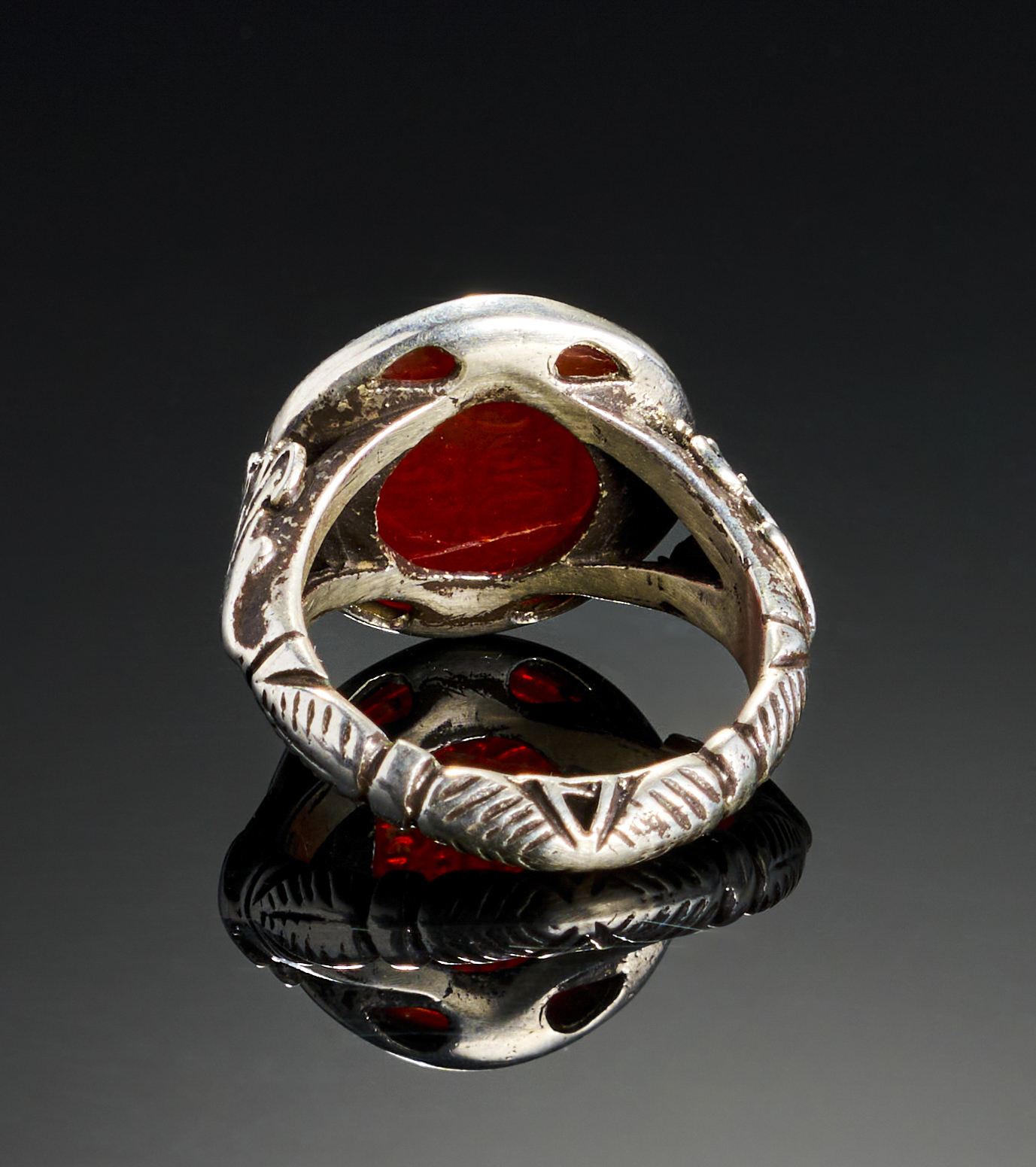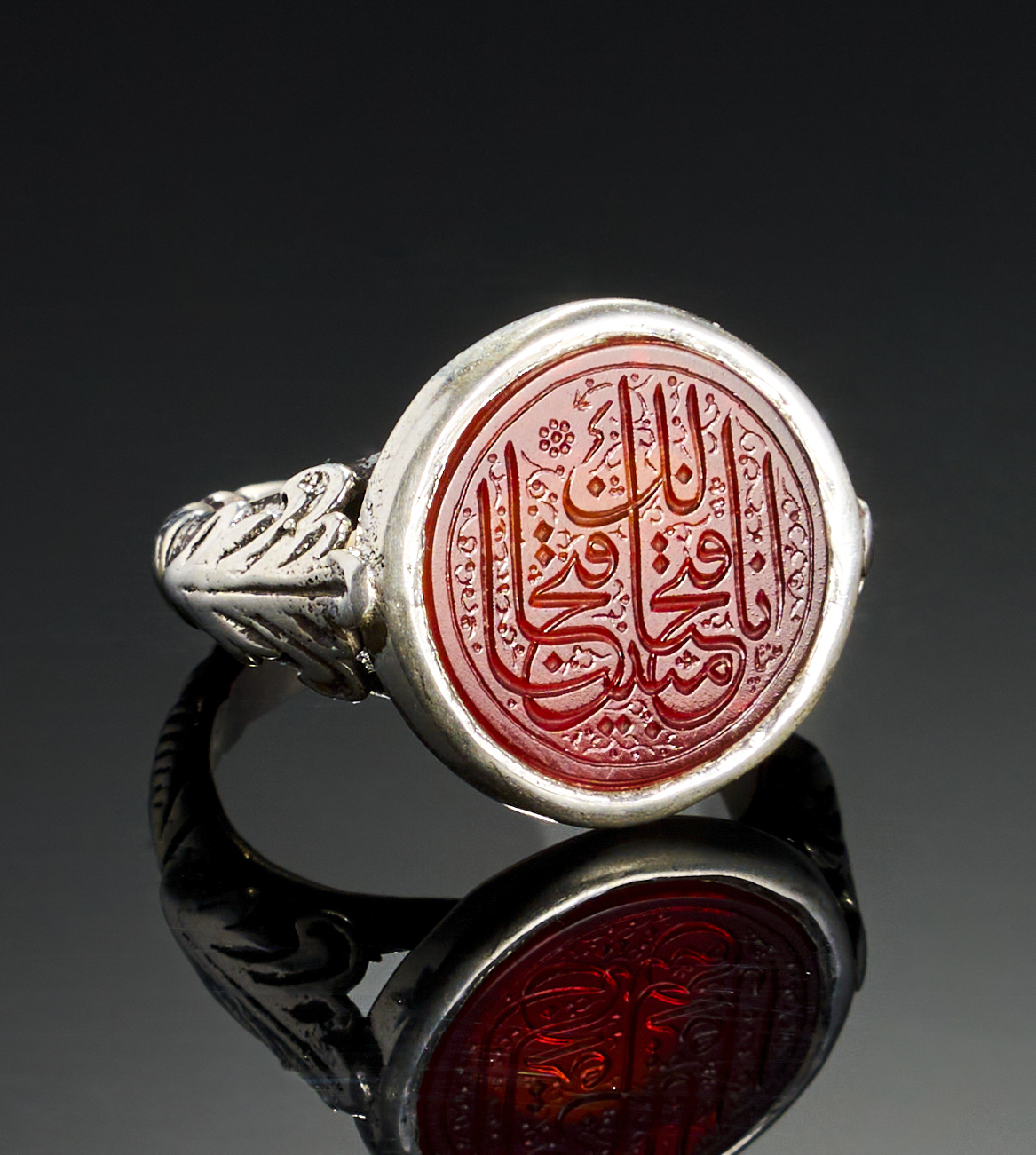 AN INSCRIBED ISLAMIC AGATE IN A SILVER RING