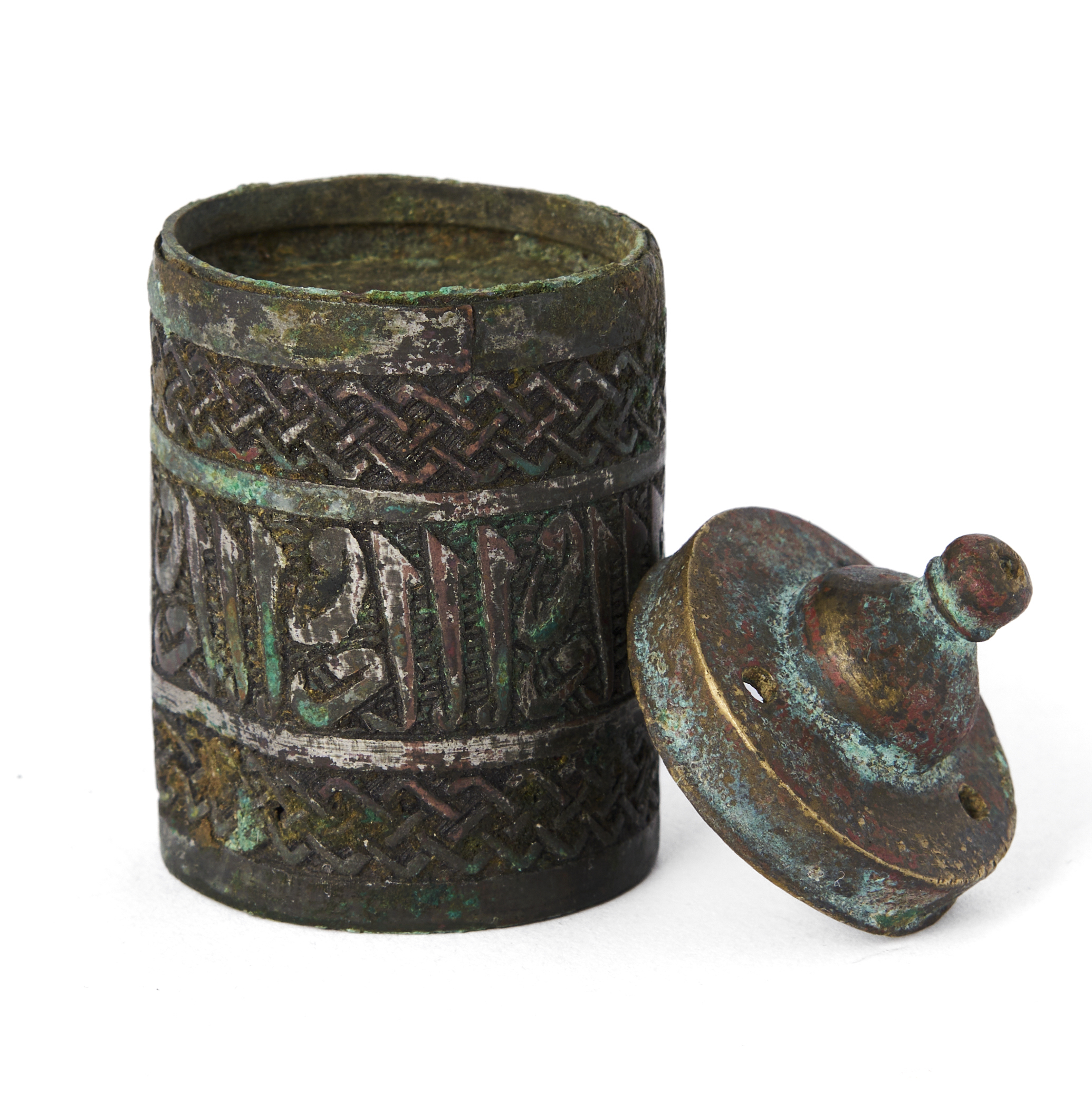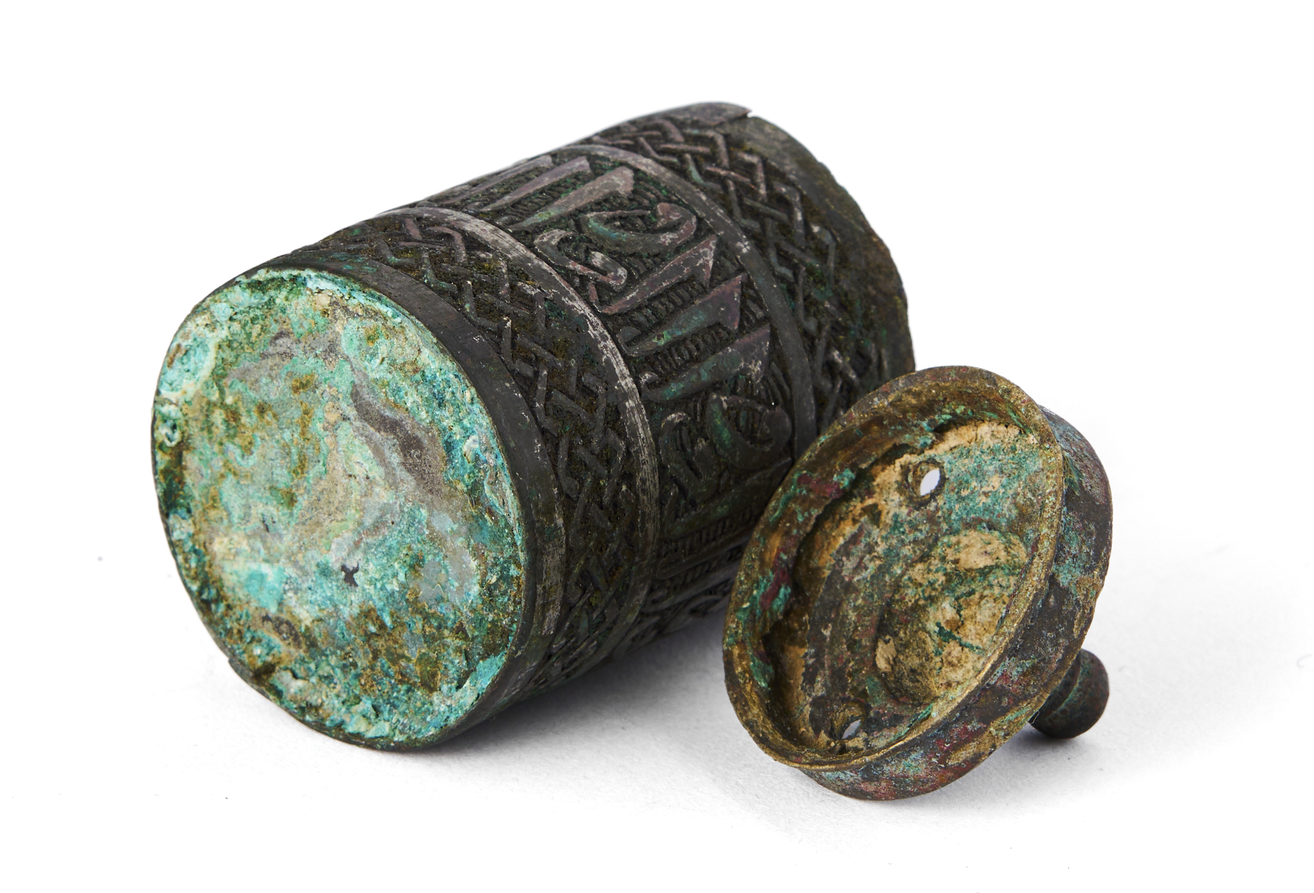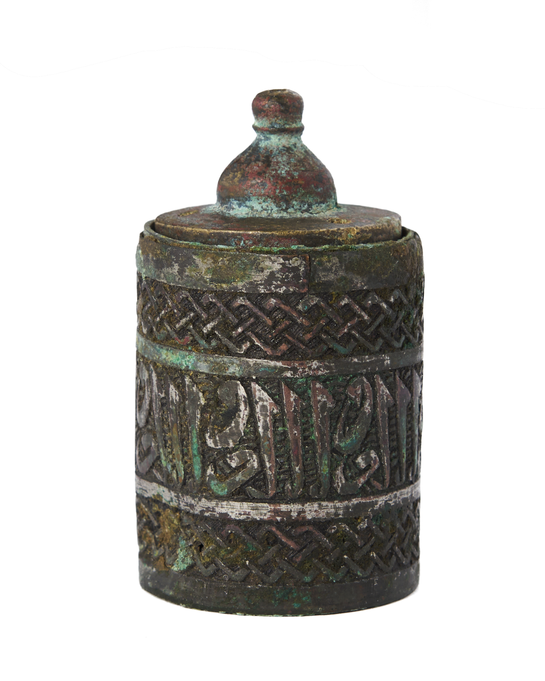 A SELJUK BRONZE INKWELL WITH A LID, KHURASAN, 12TH – 13TH CENTURY