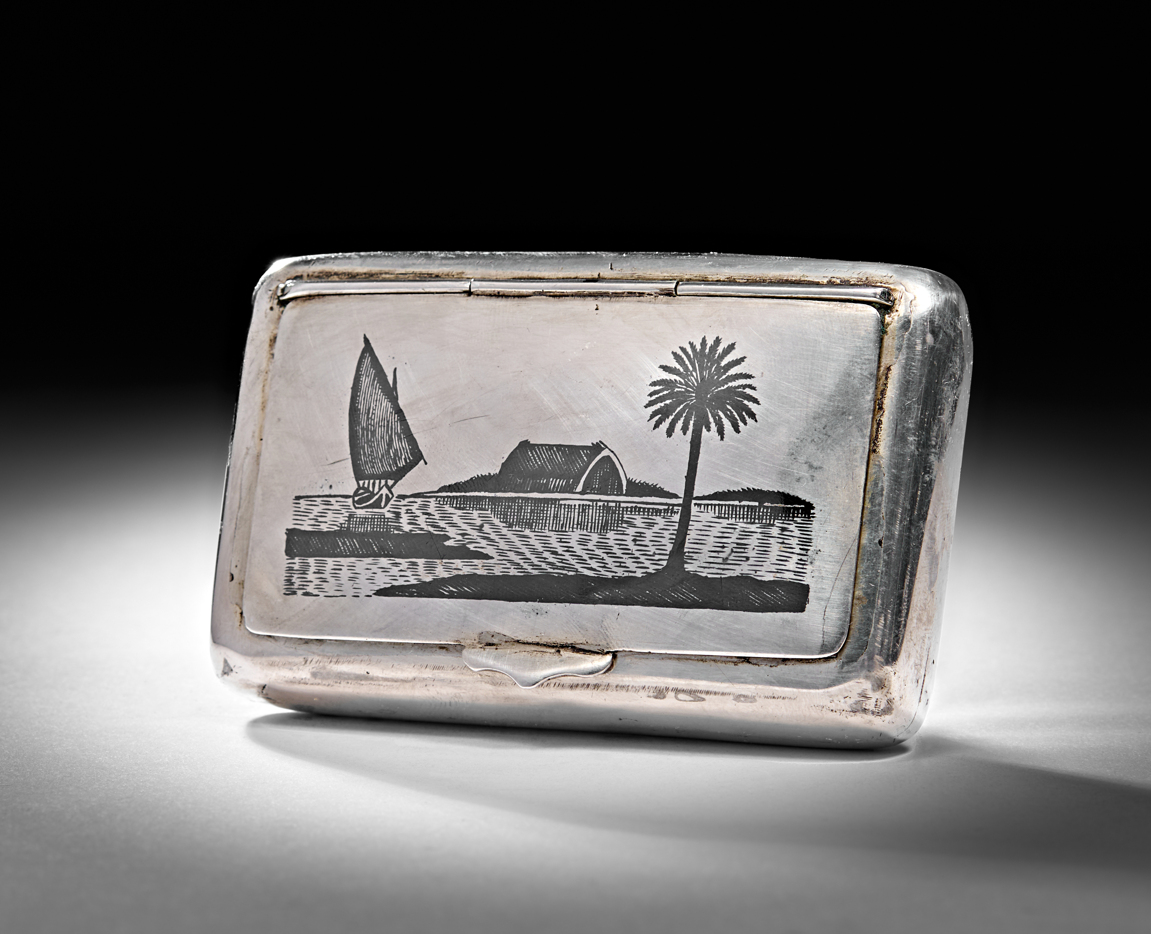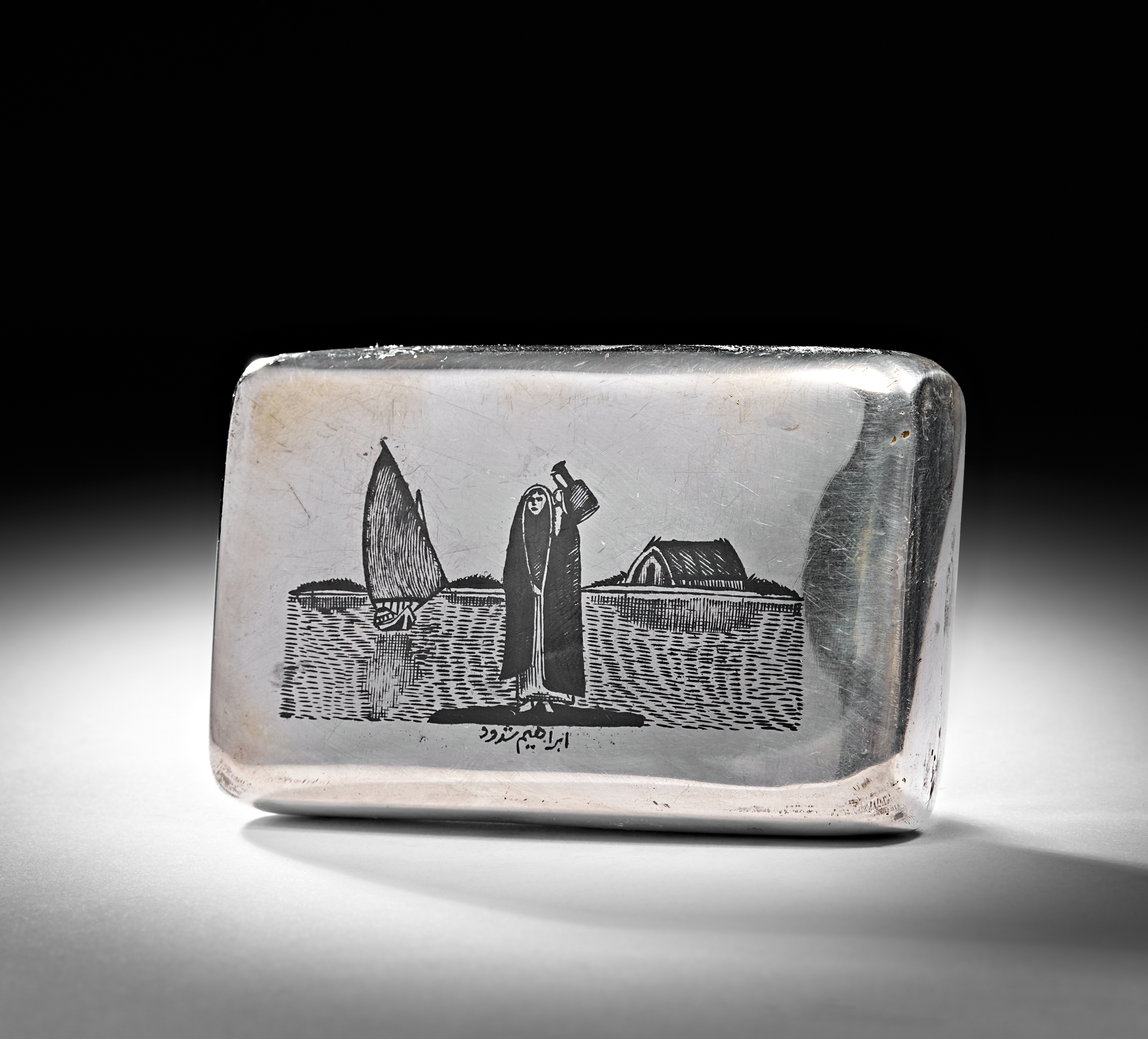 A SILVER AND NIELLO SNUFF BOX, IRAQ, 20TH CENTURY