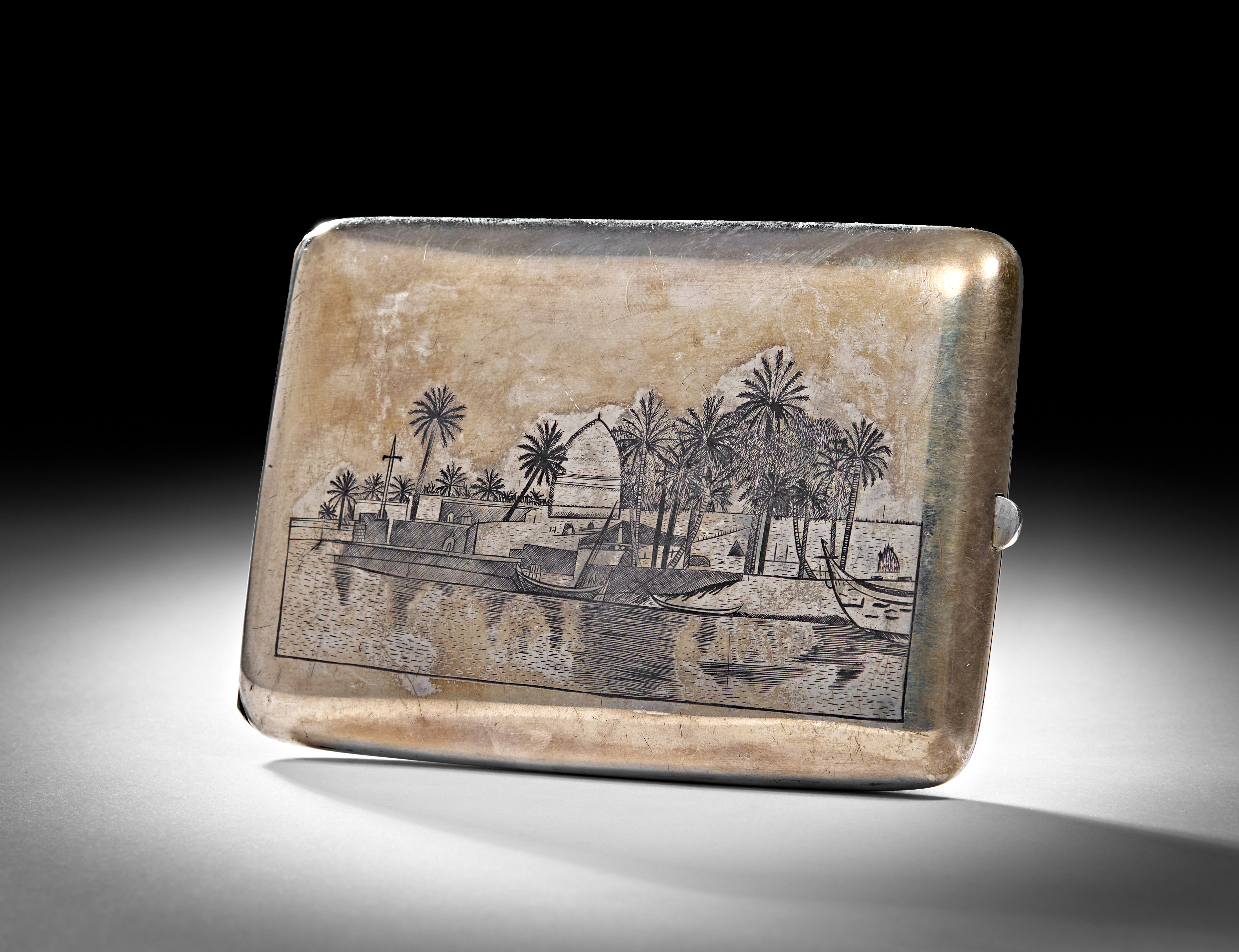 A 20TH CENTURY IRAQI SILVER AND NIELLO CIGARETTE CASE