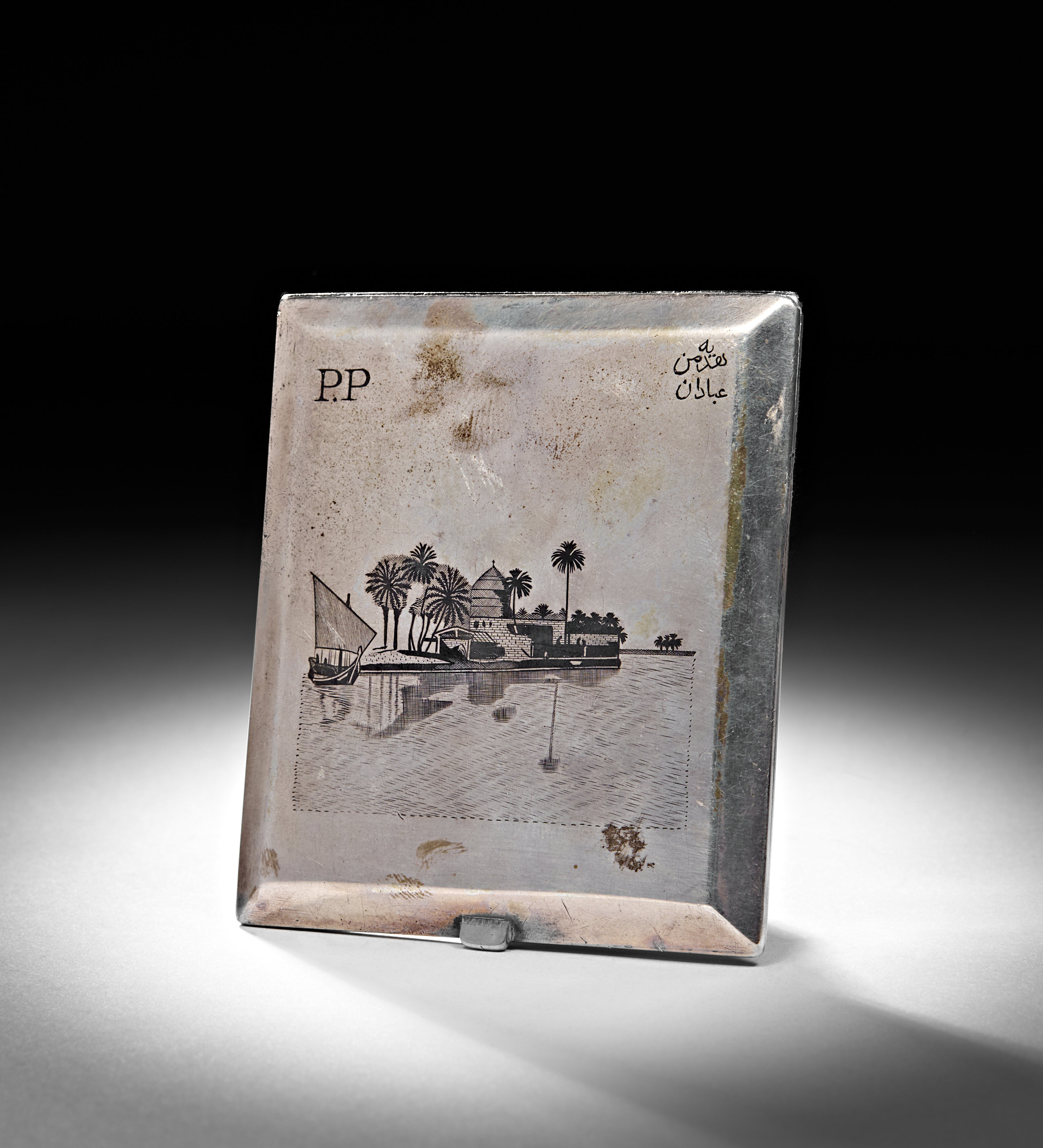 A 20TH CENTURY IRAQI SILVER AND NIELLO CIGARETTE CASE