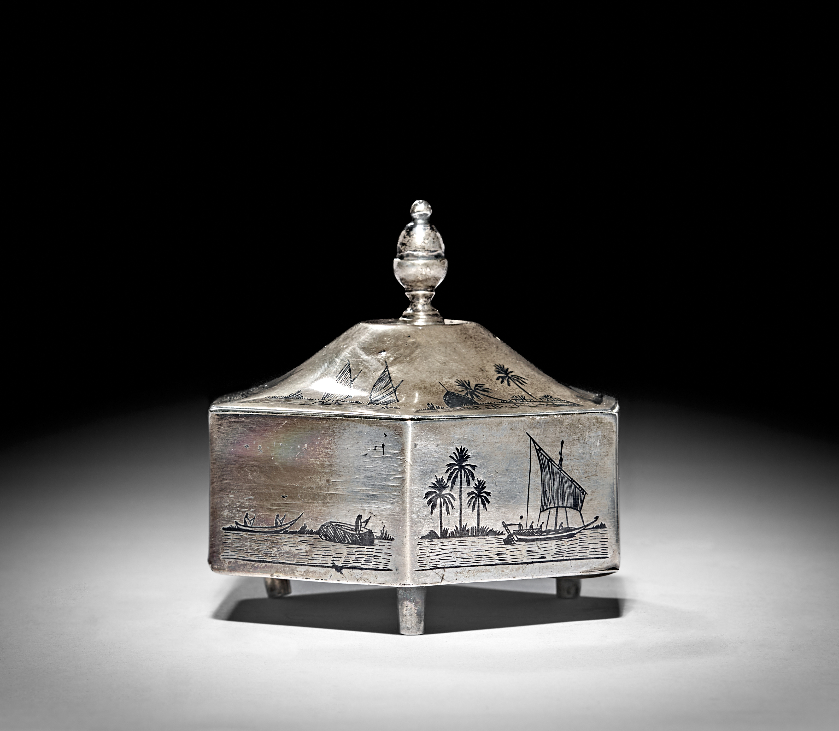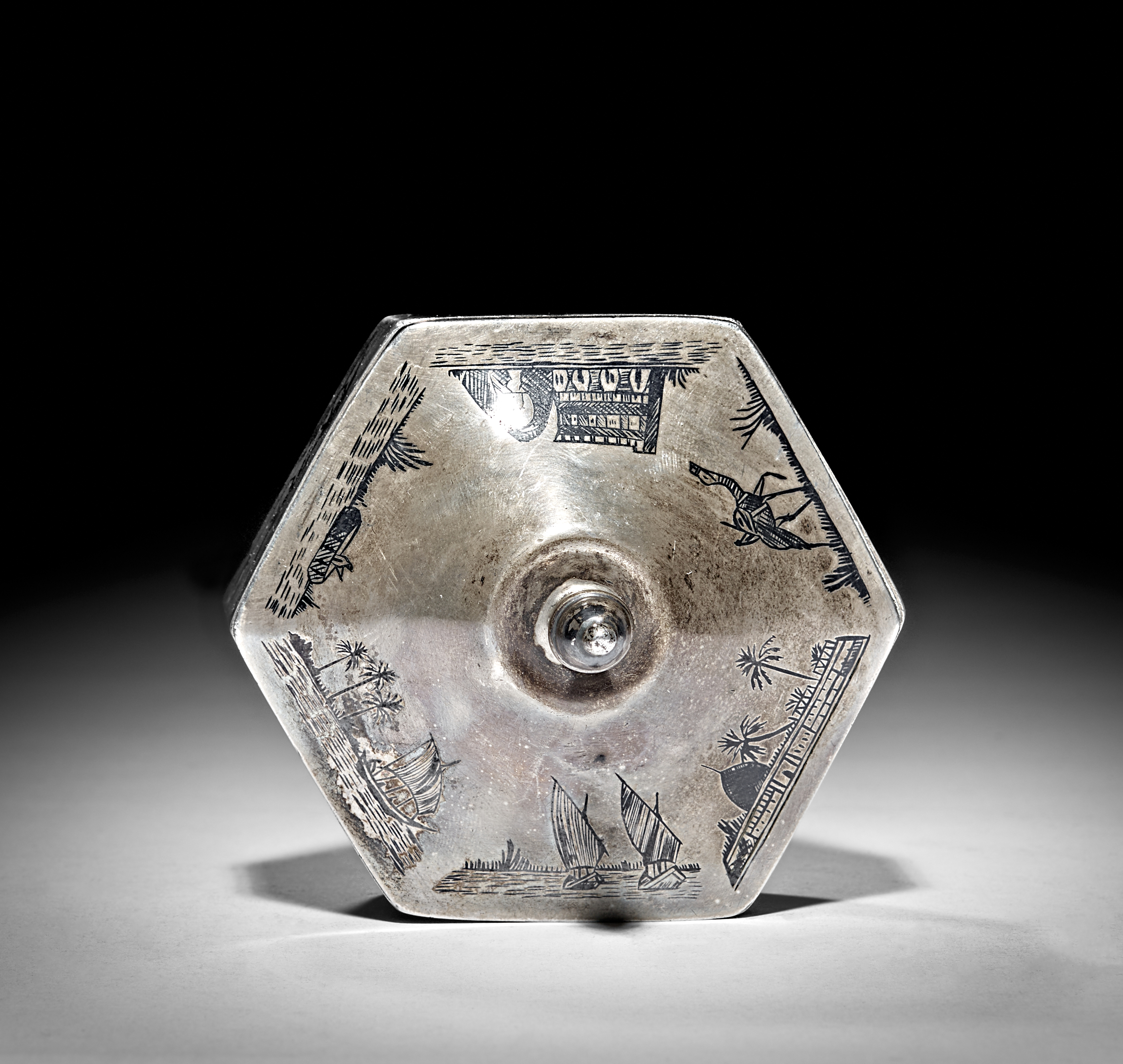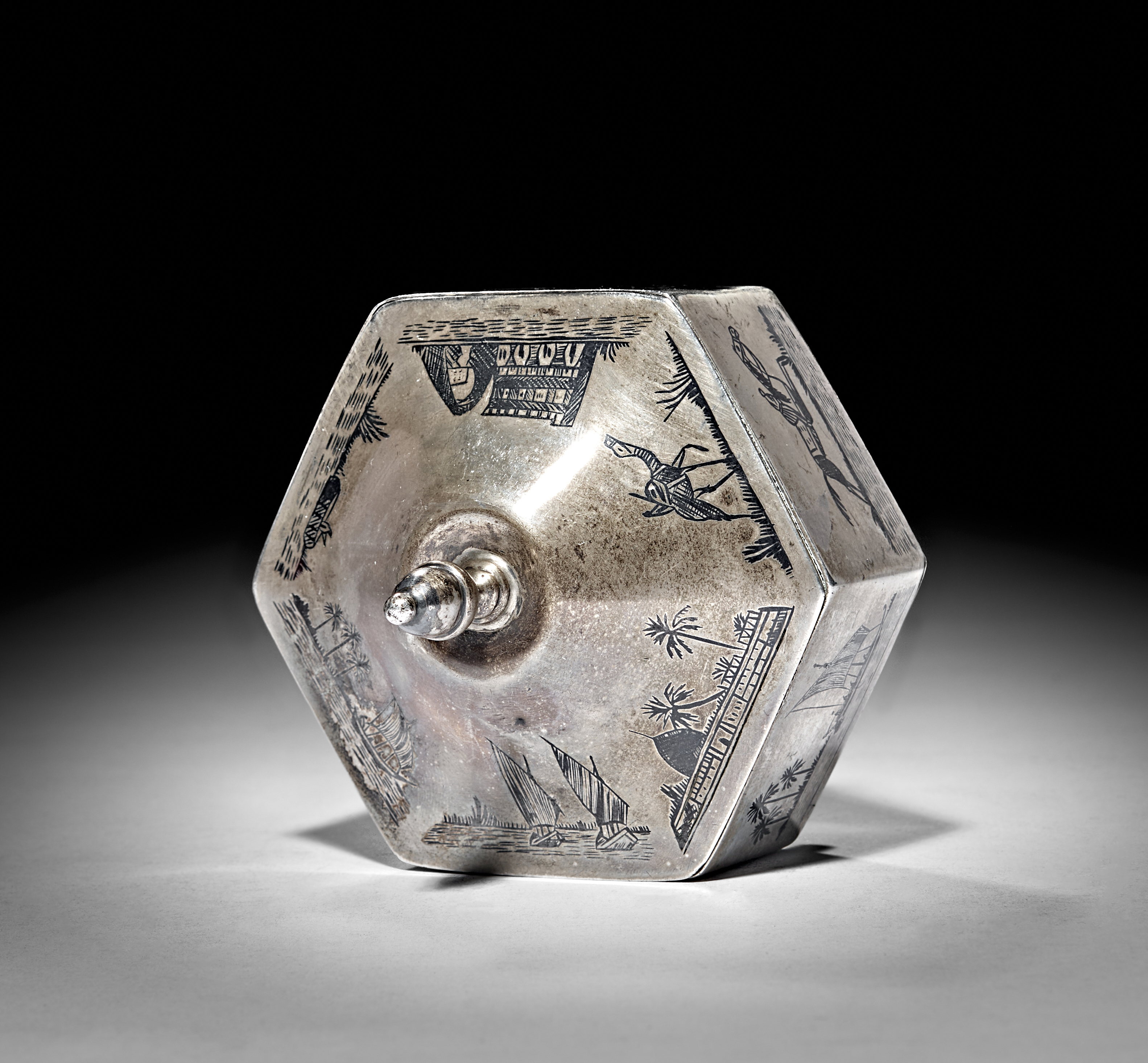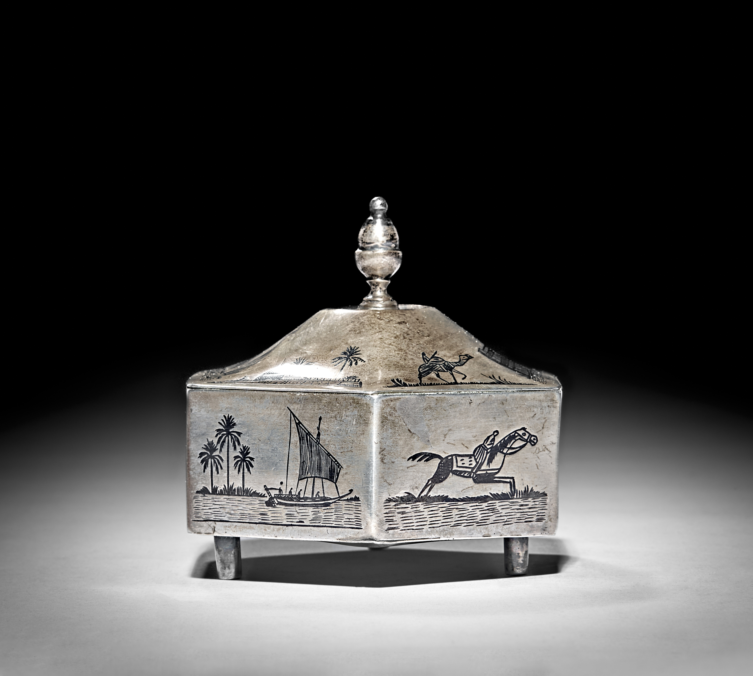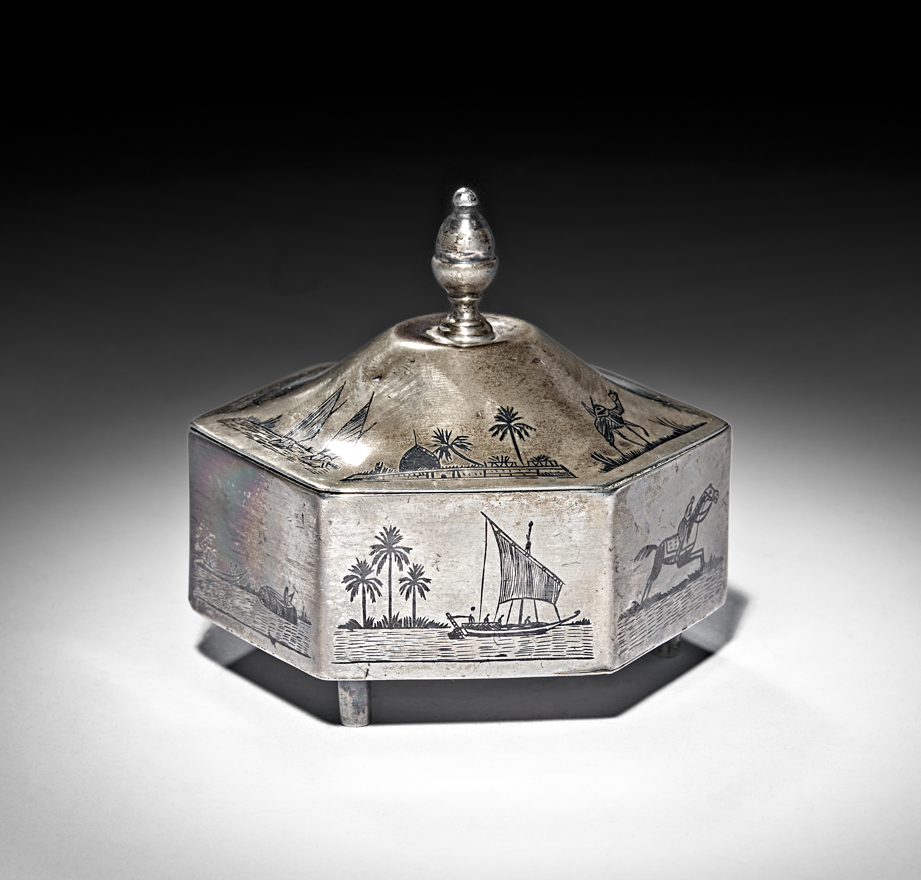 AN EARLY 20TH CENTURY IRAQI SILVER AND NIELLO SUGAR BOWL