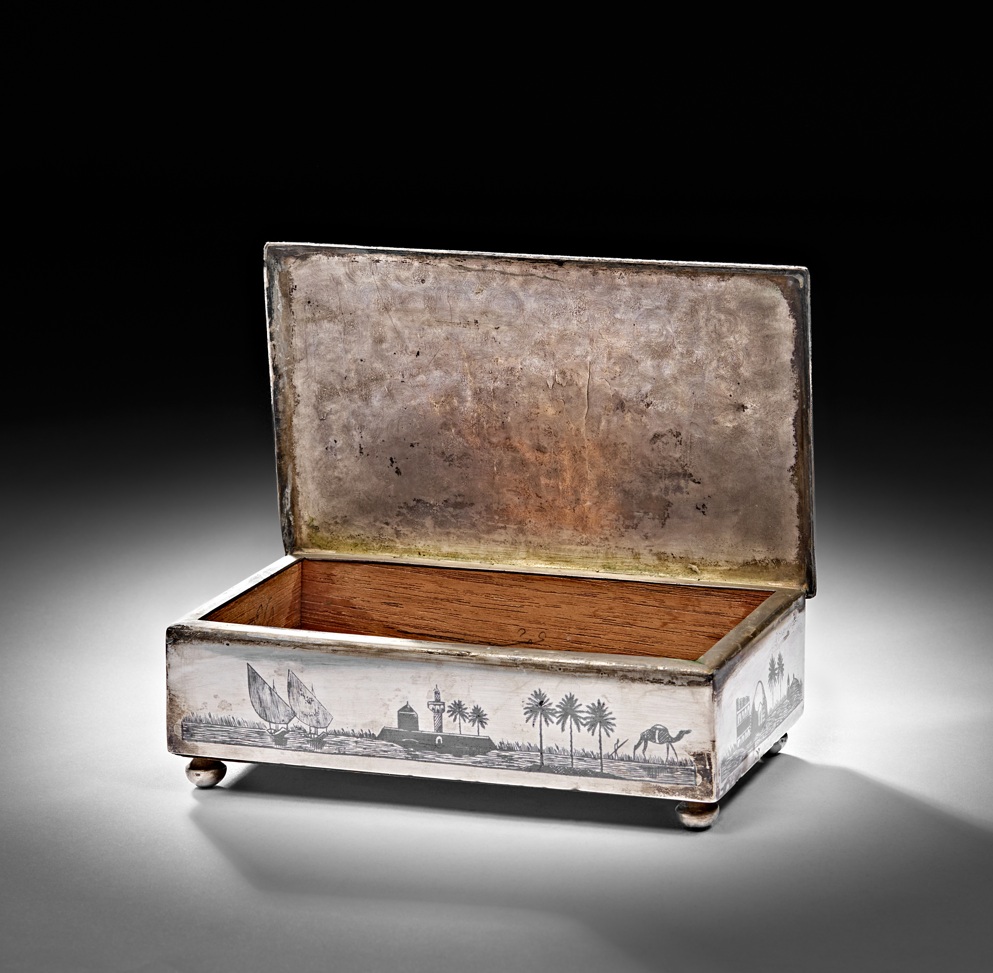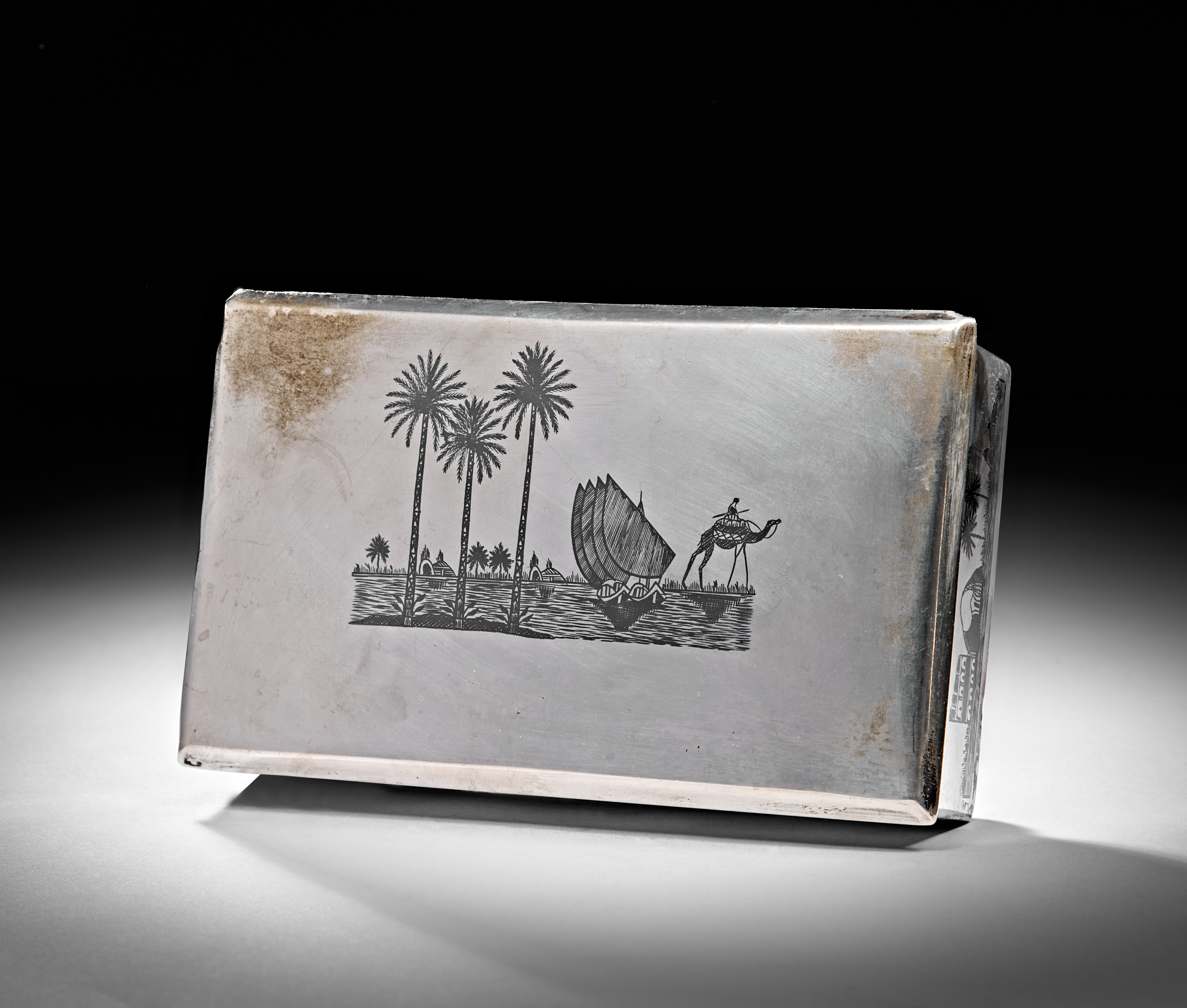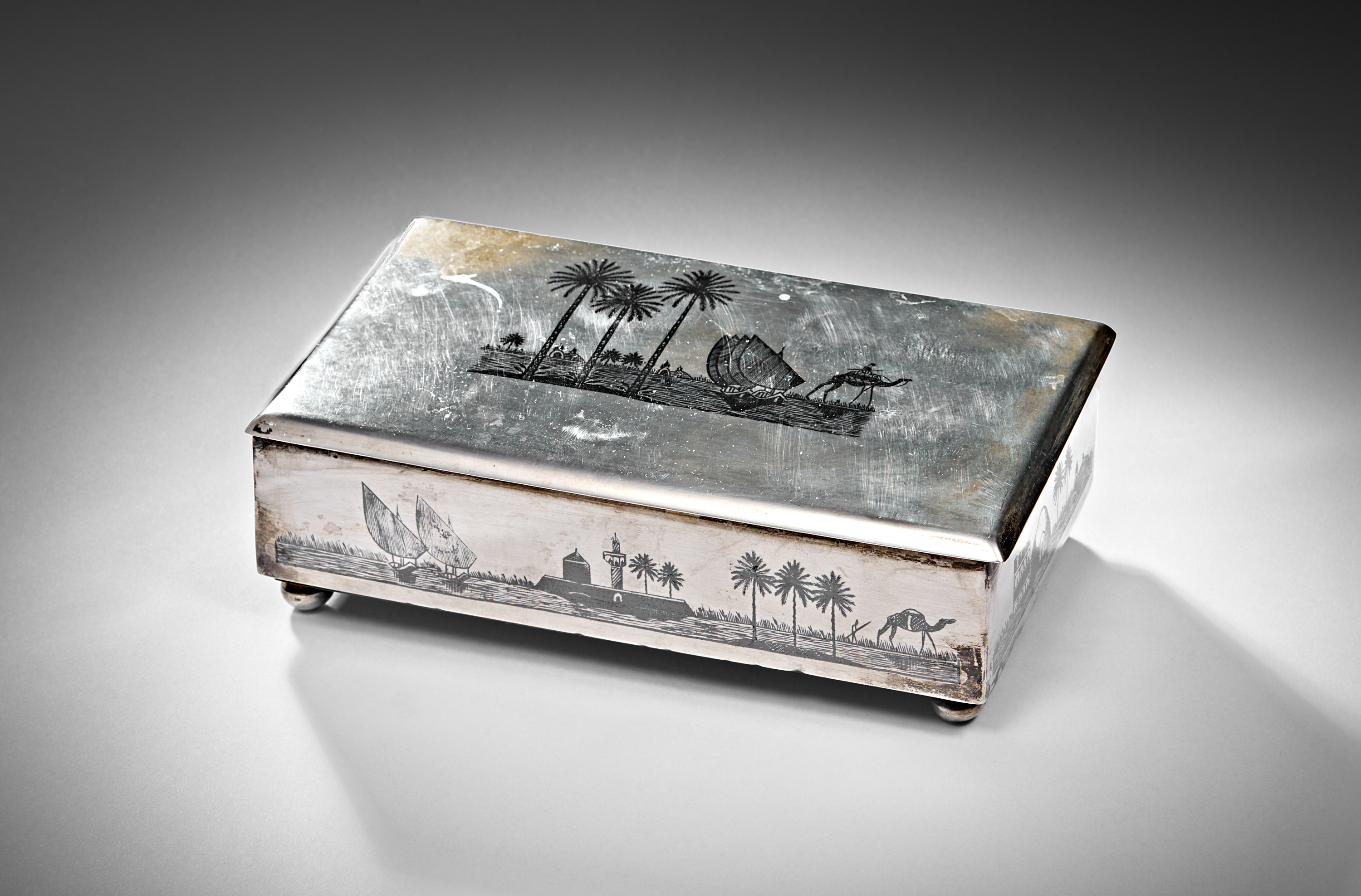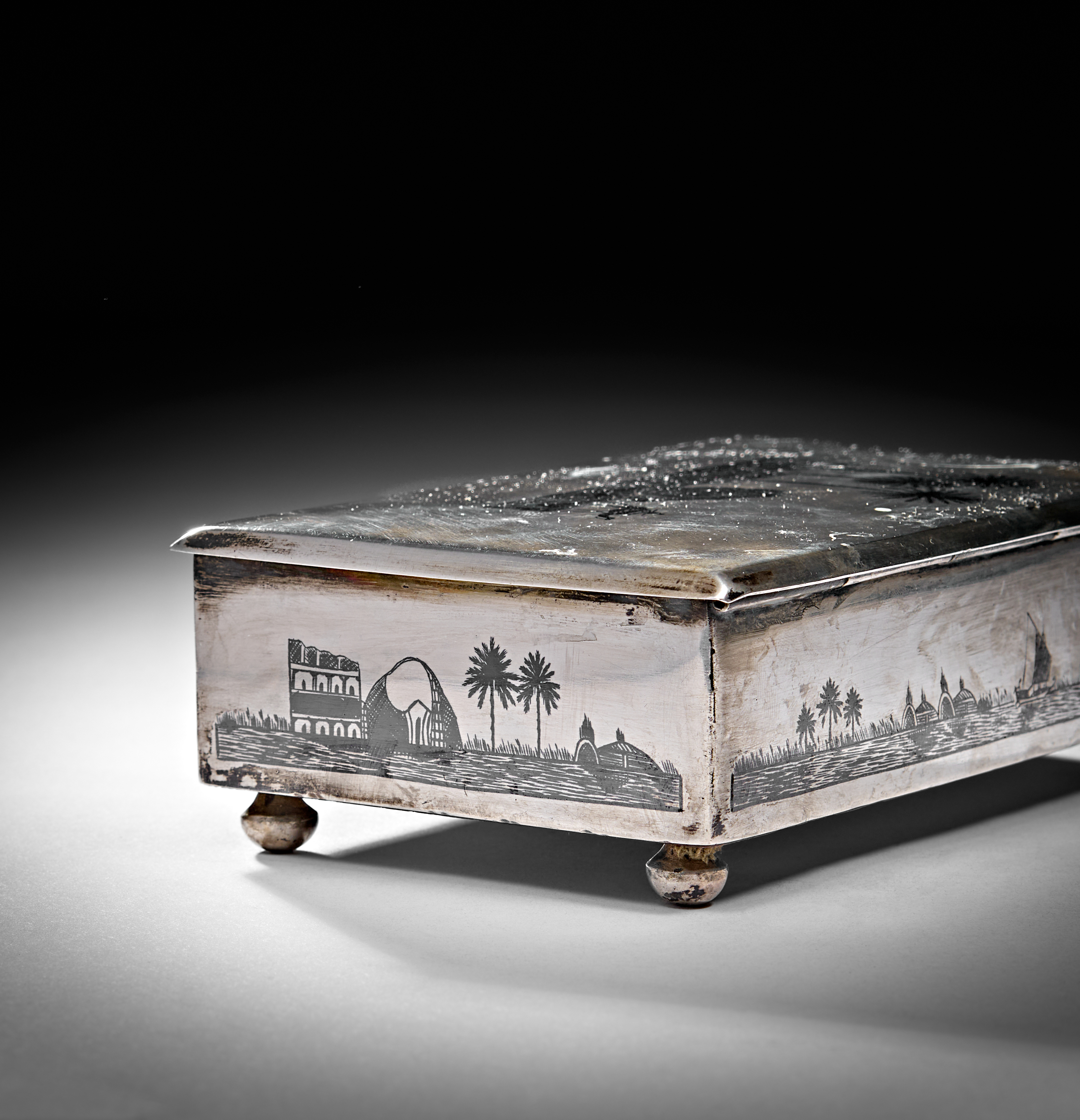 A 20TH CENTURY IRAQI SILVER AND NIELLO CIGAR BOX