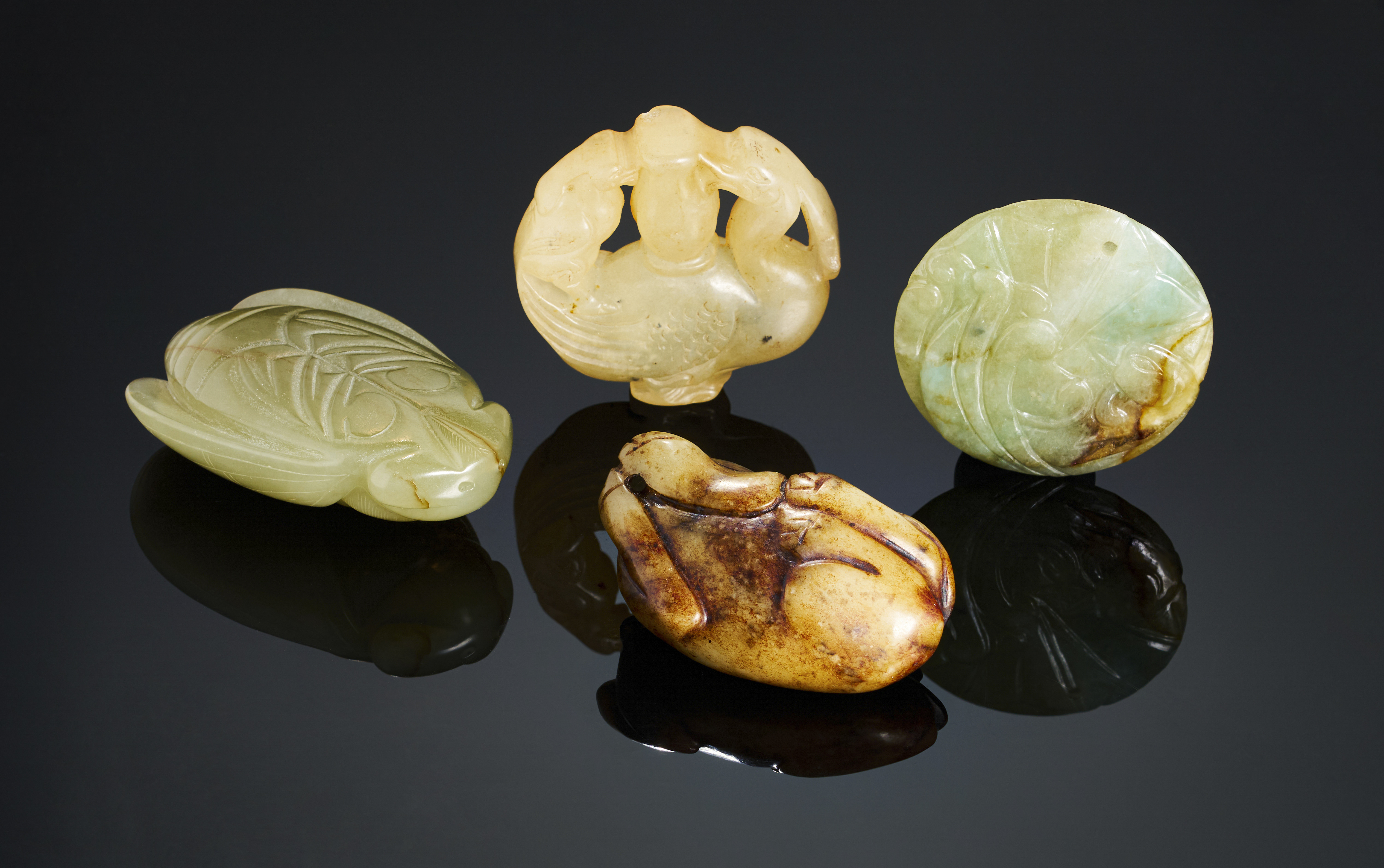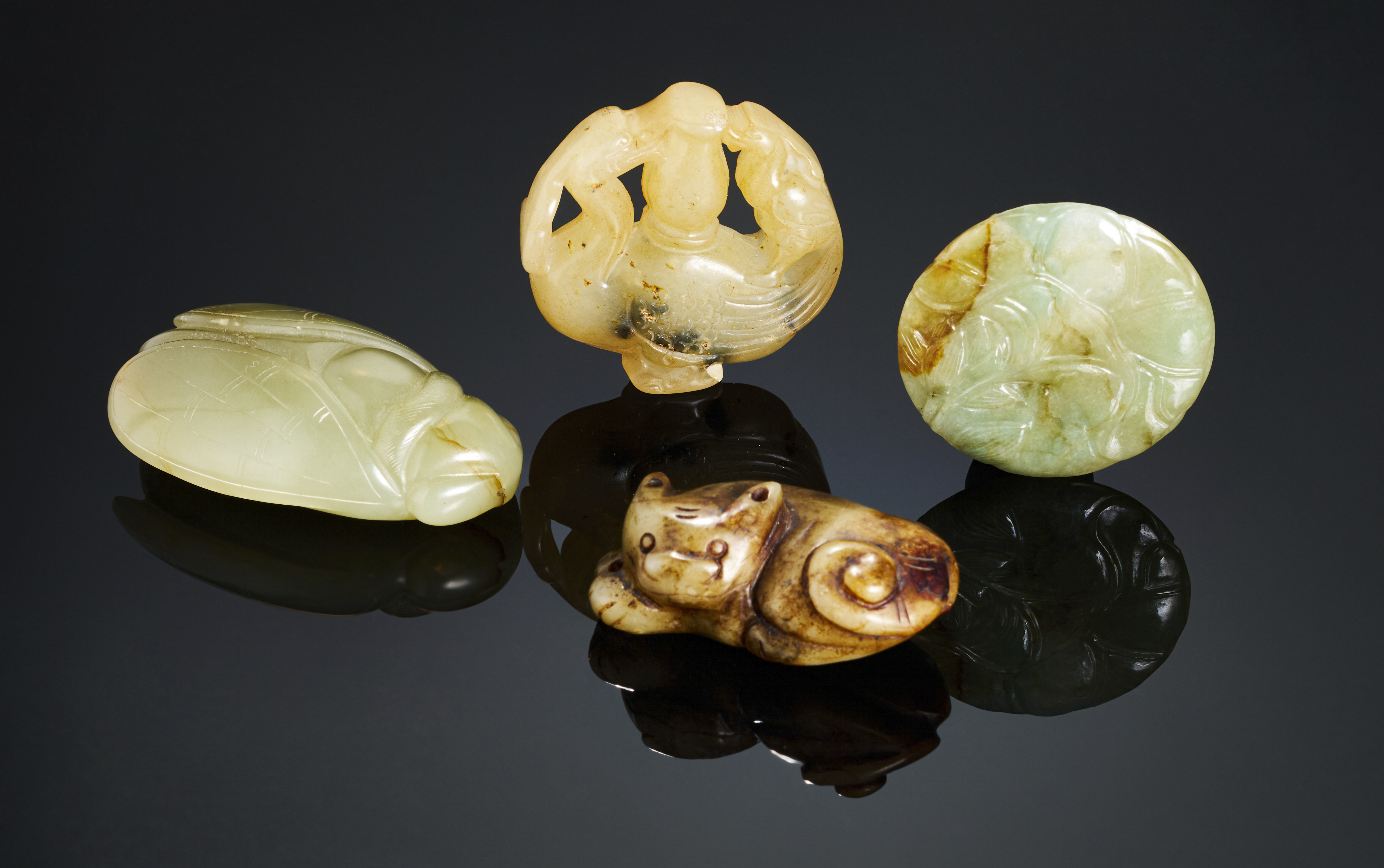 A GROUP OF FOUR CHINESE CARVED JADE BELT OBJECTS