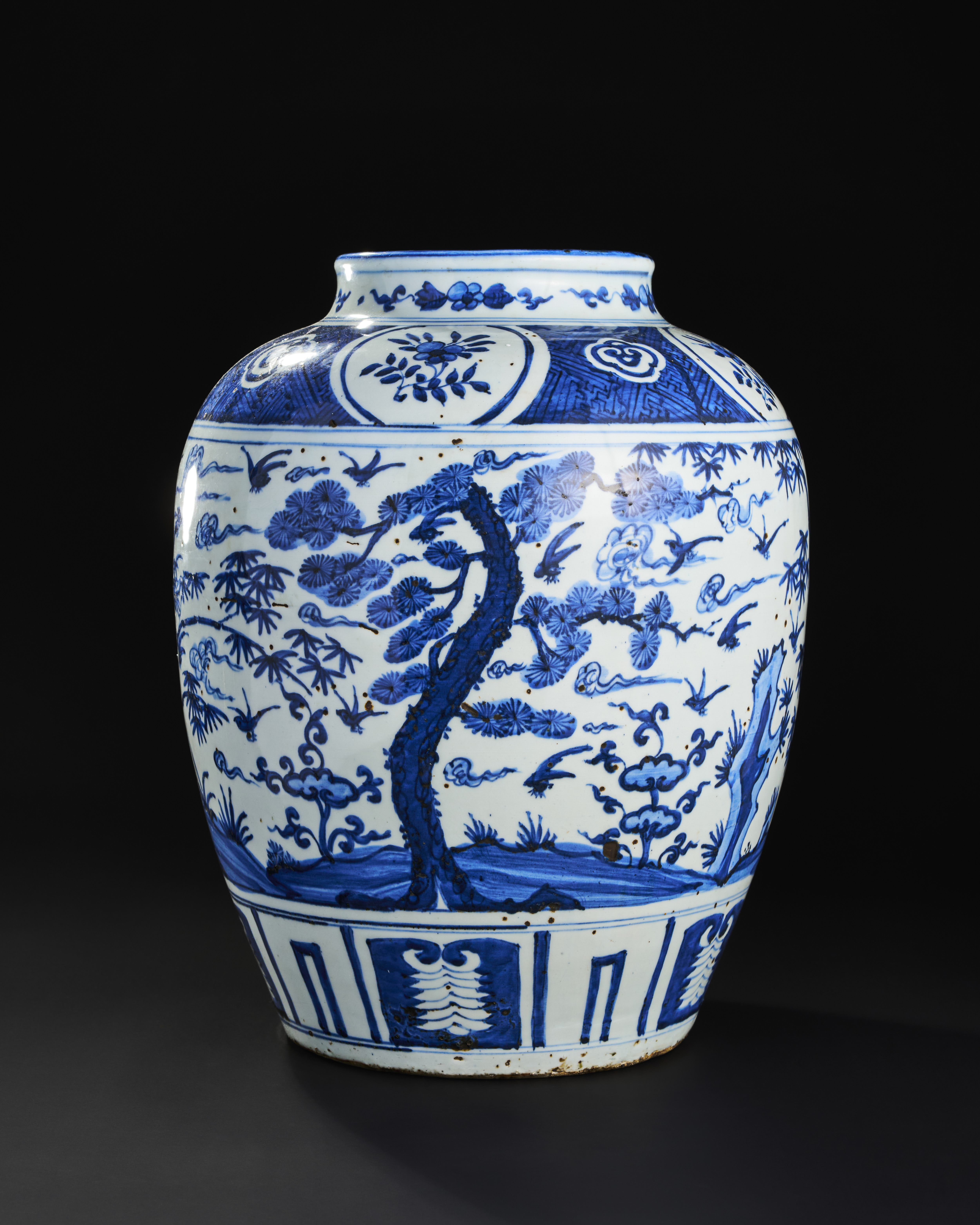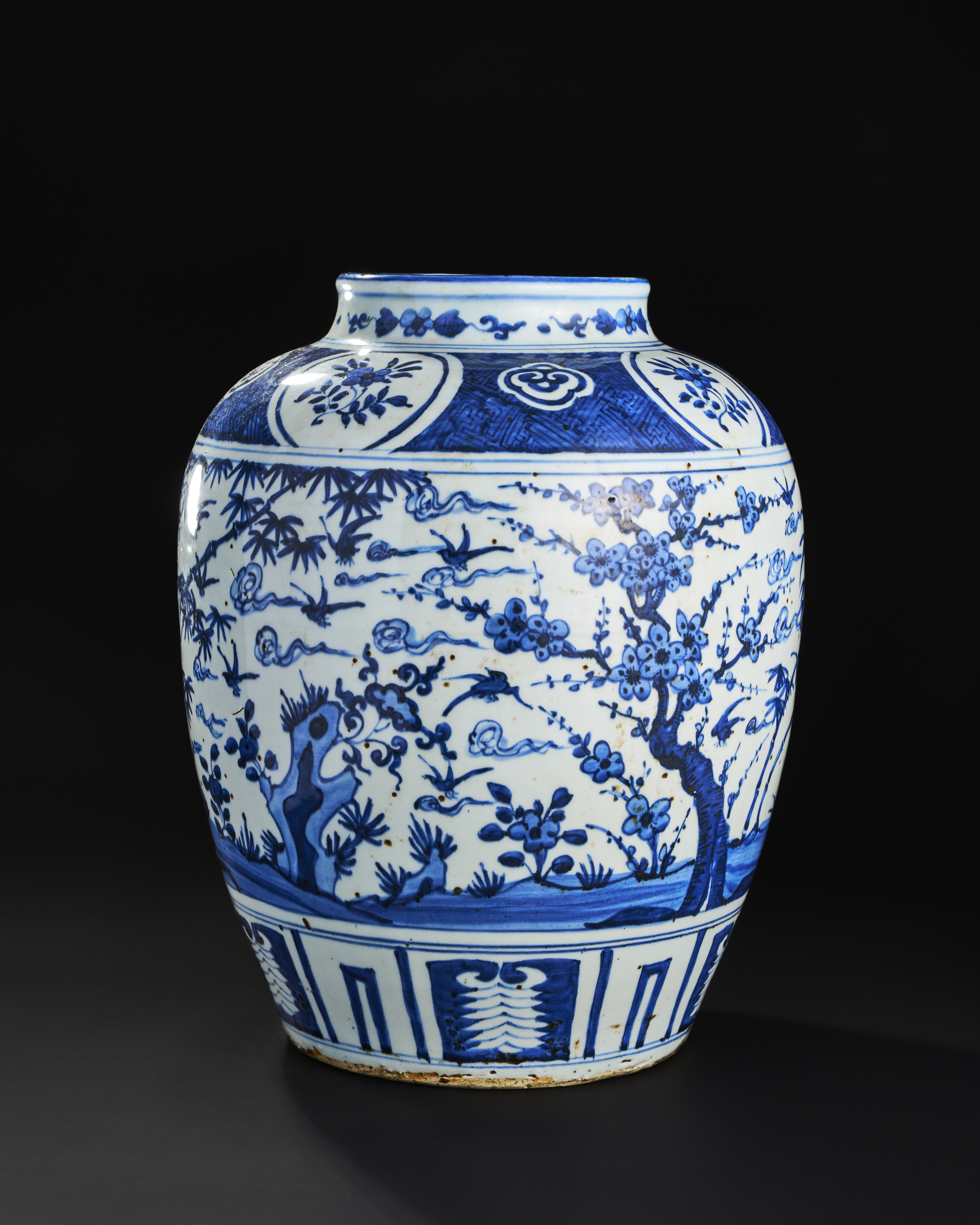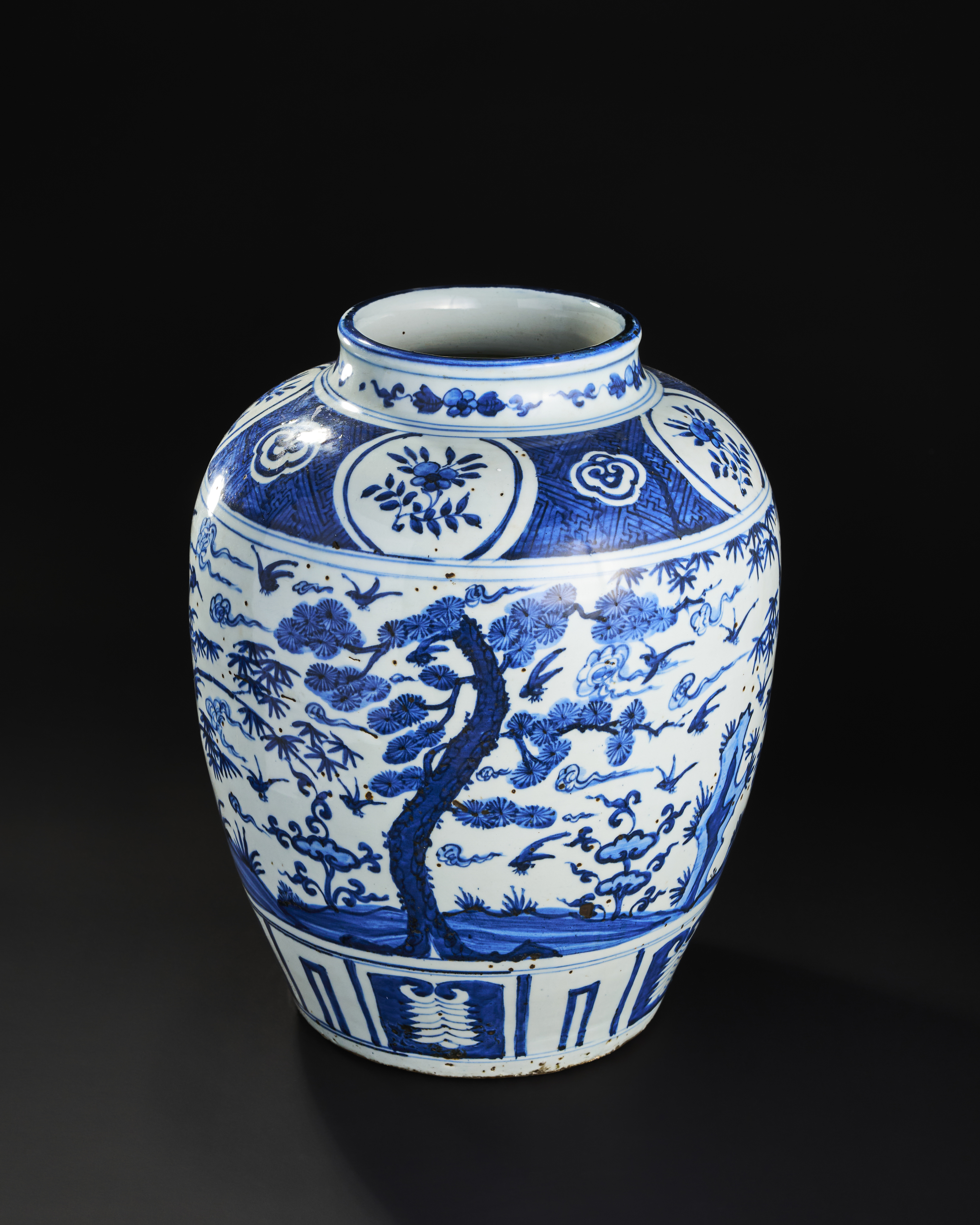 A LARGE BLUE AND WHITE CHINESE PORCELAIN JAR, MING OR QING DYNASTY