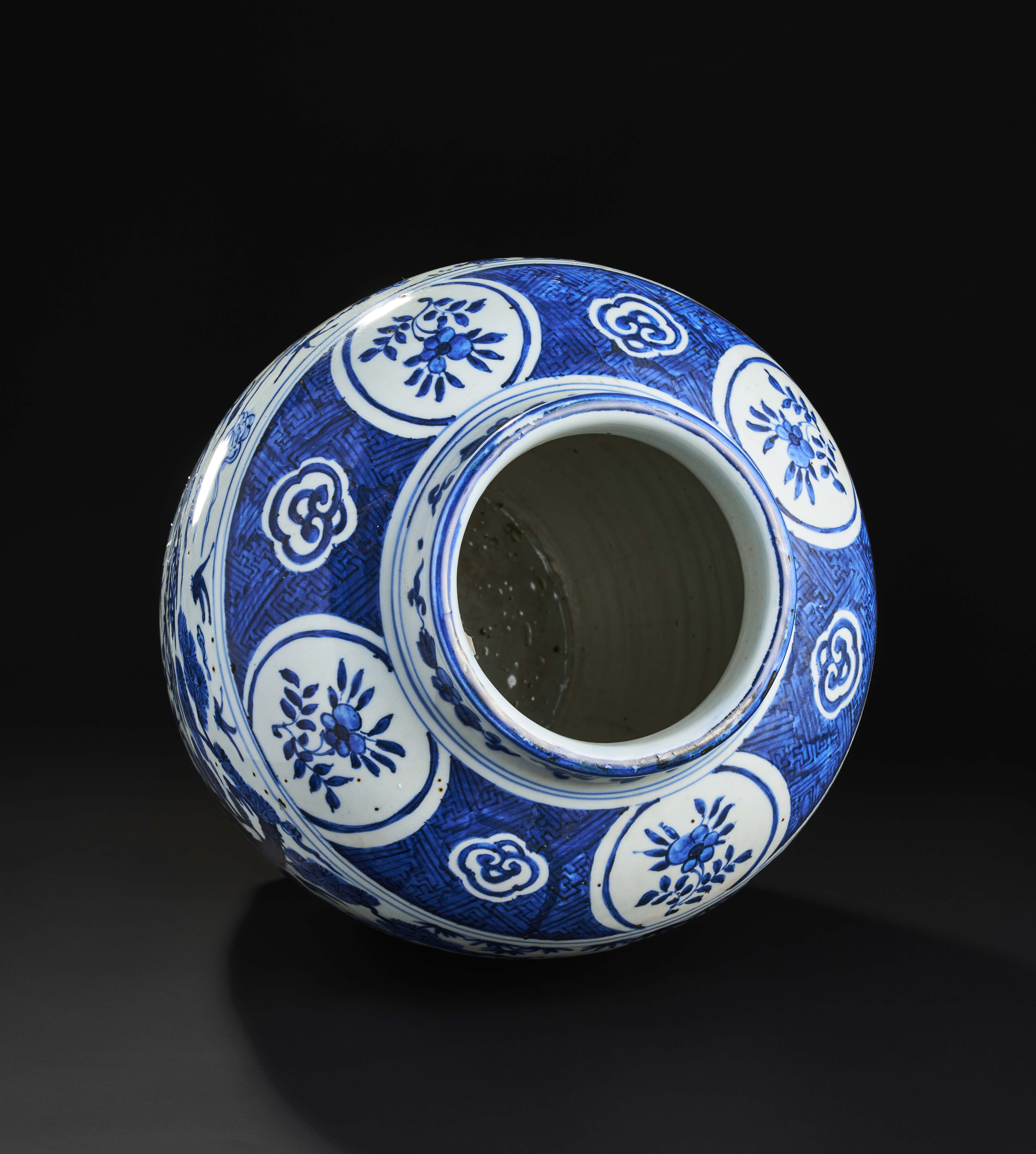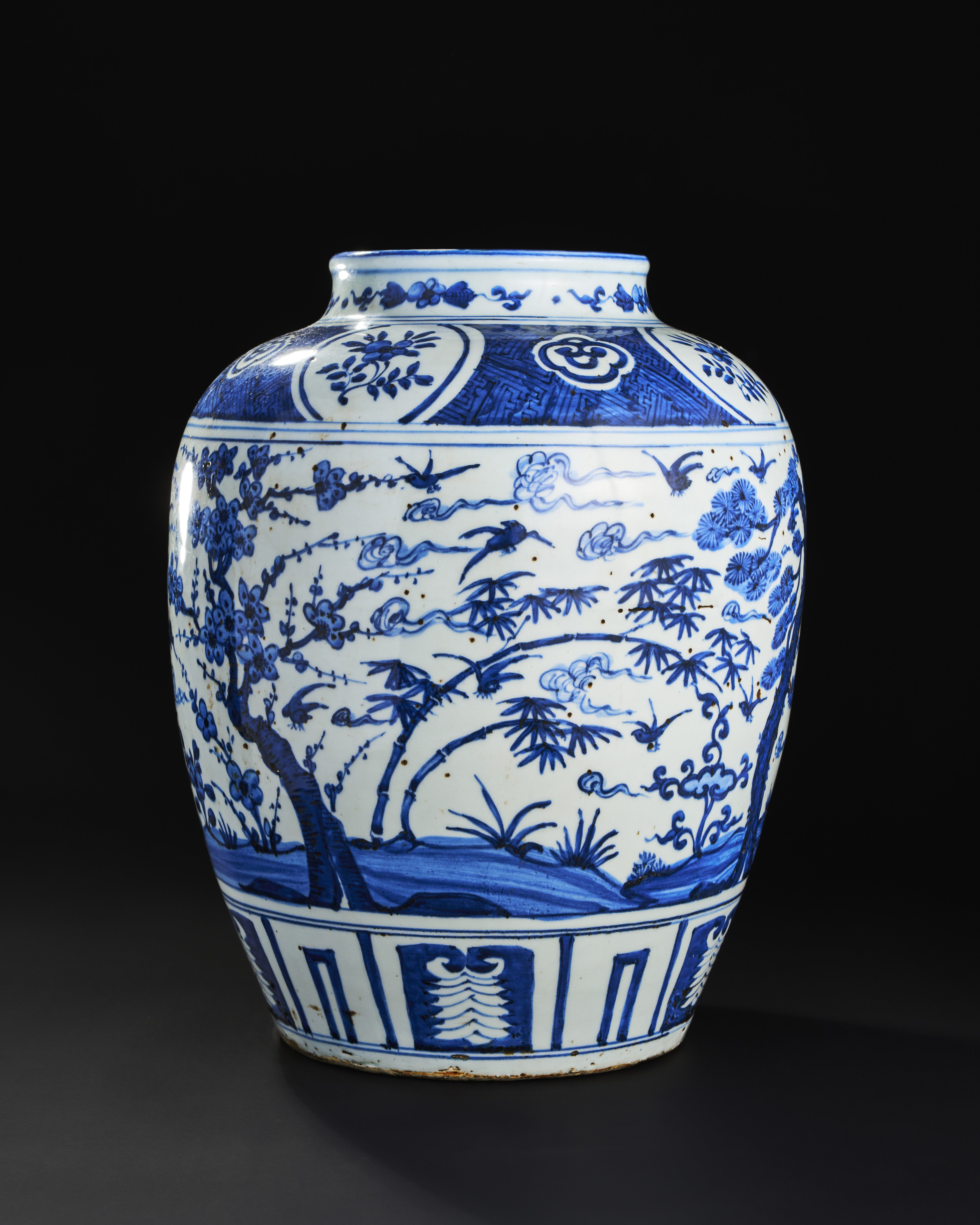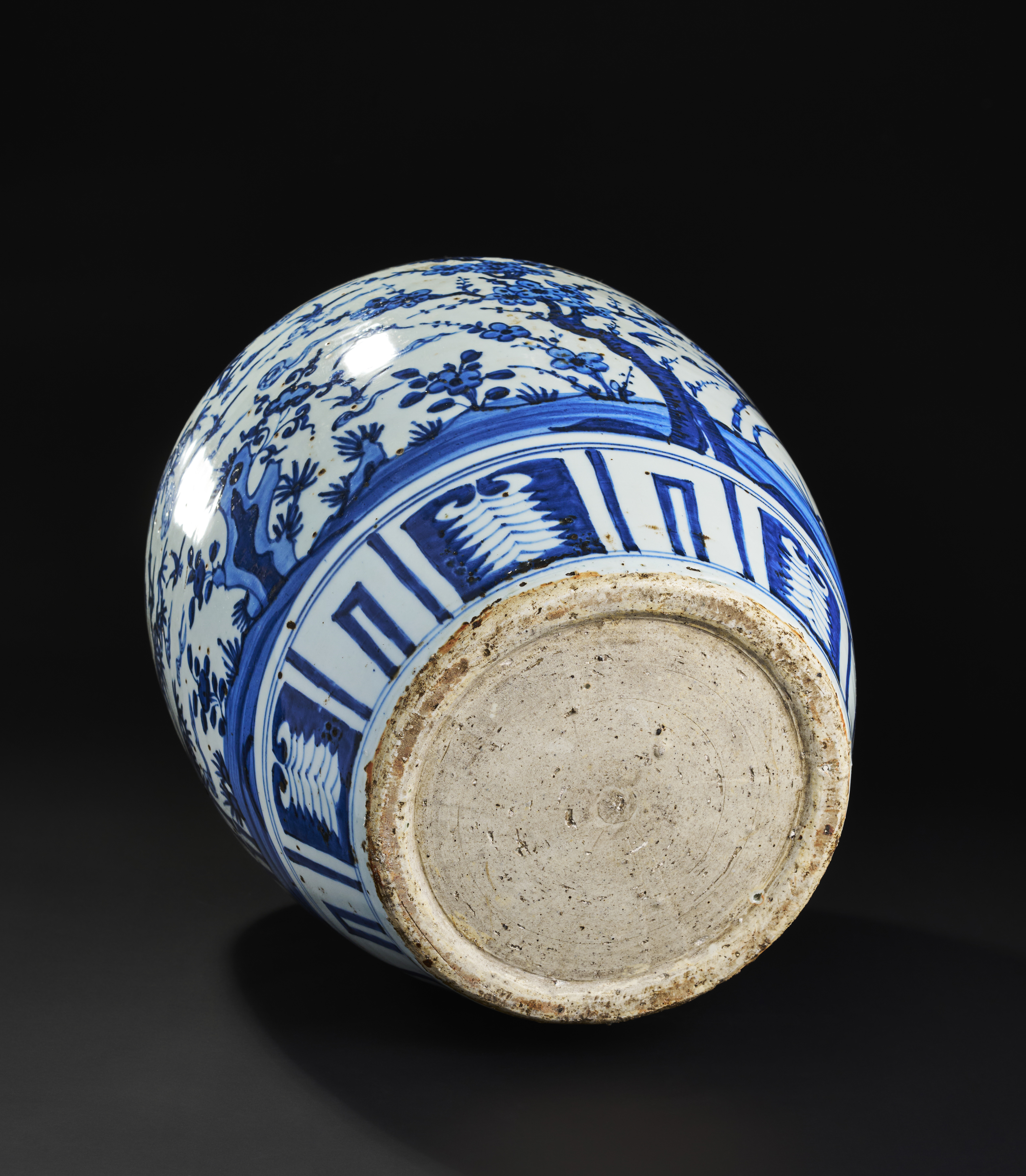 A LARGE BLUE AND WHITE CHINESE PORCELAIN JAR, MING OR QING DYNASTY