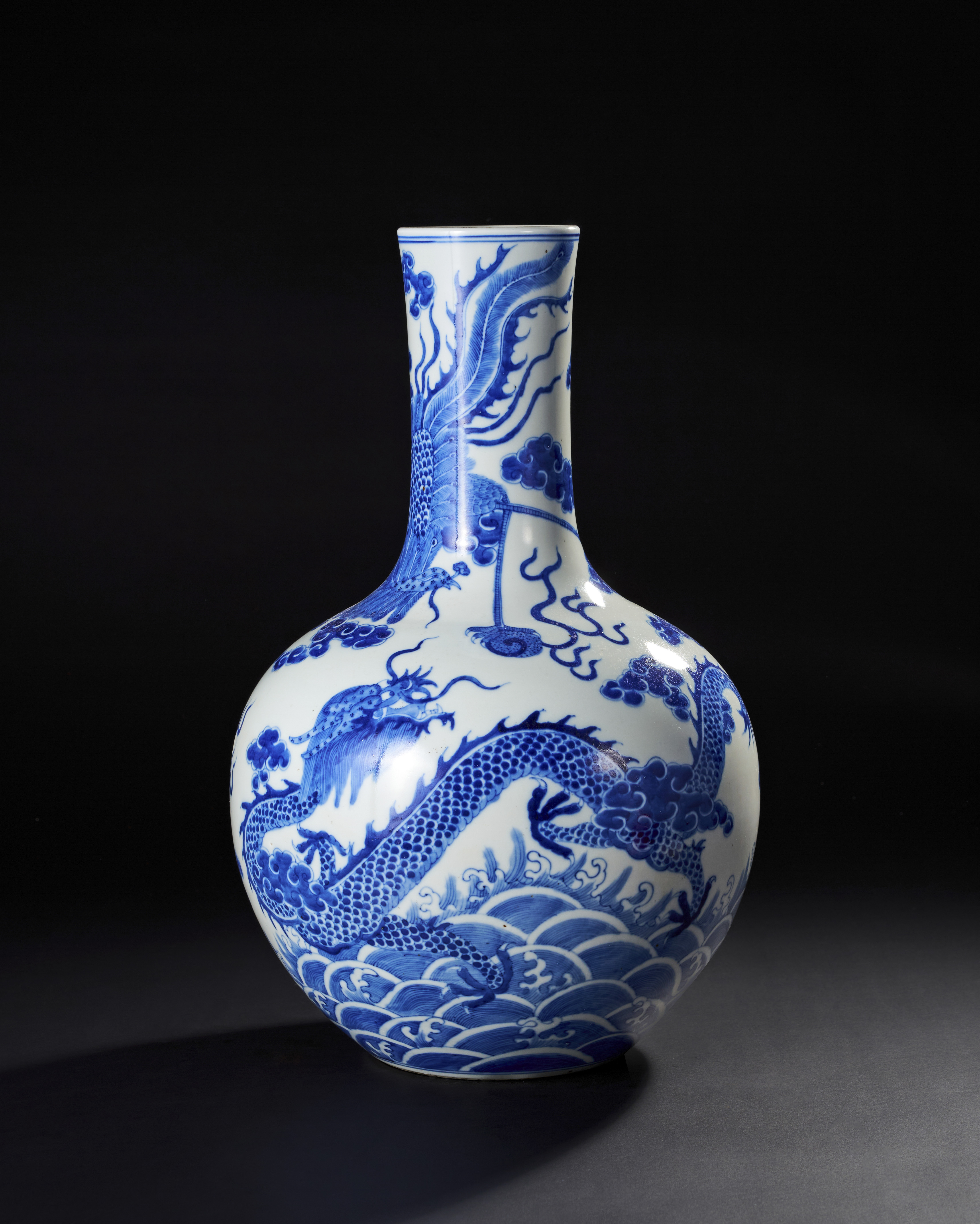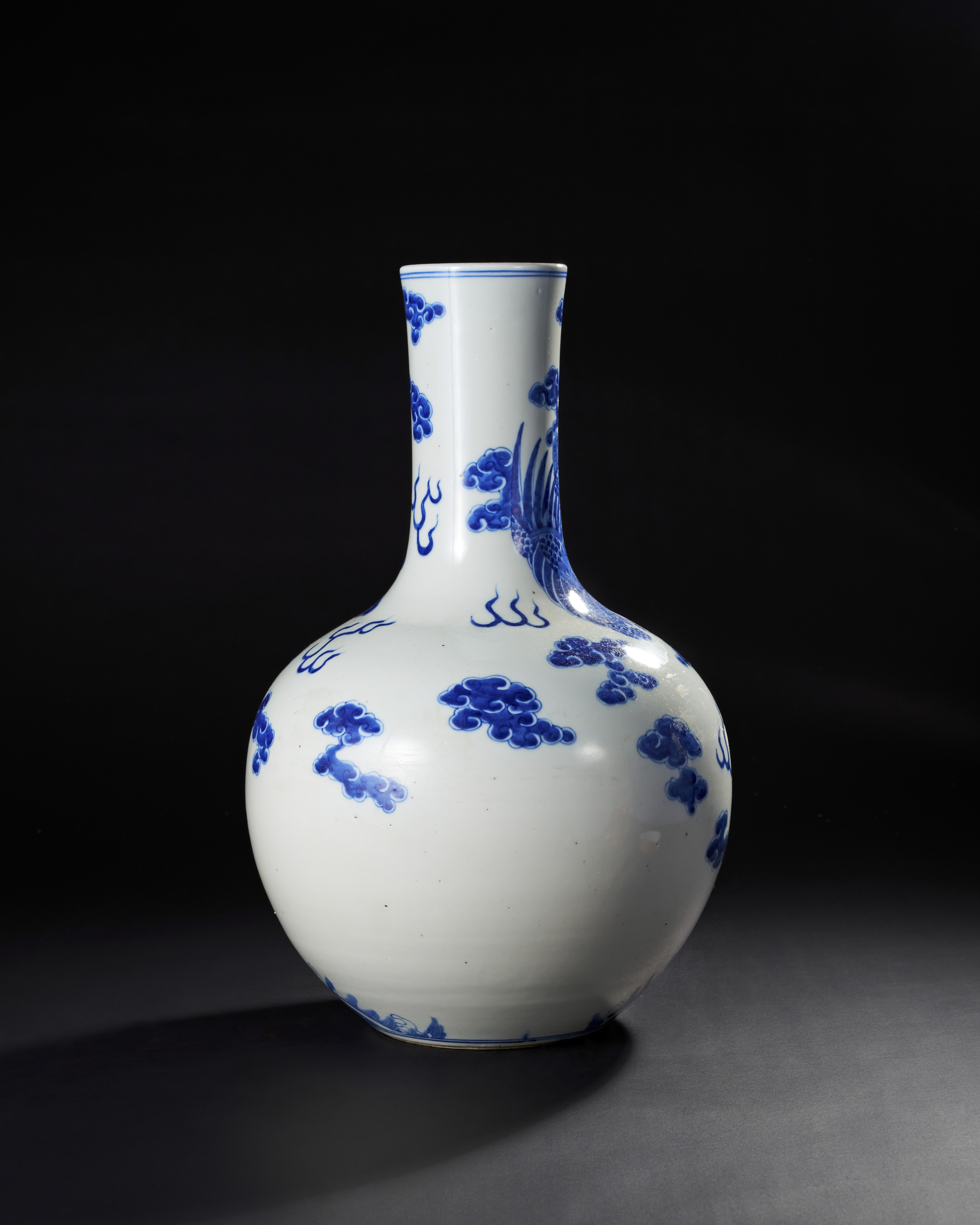A CHINESE BLUE AND WHITE "DRAGON AND PHOENIX" GLOBULAR VASE, LATE QING, 19TH – 20TH CENTURY