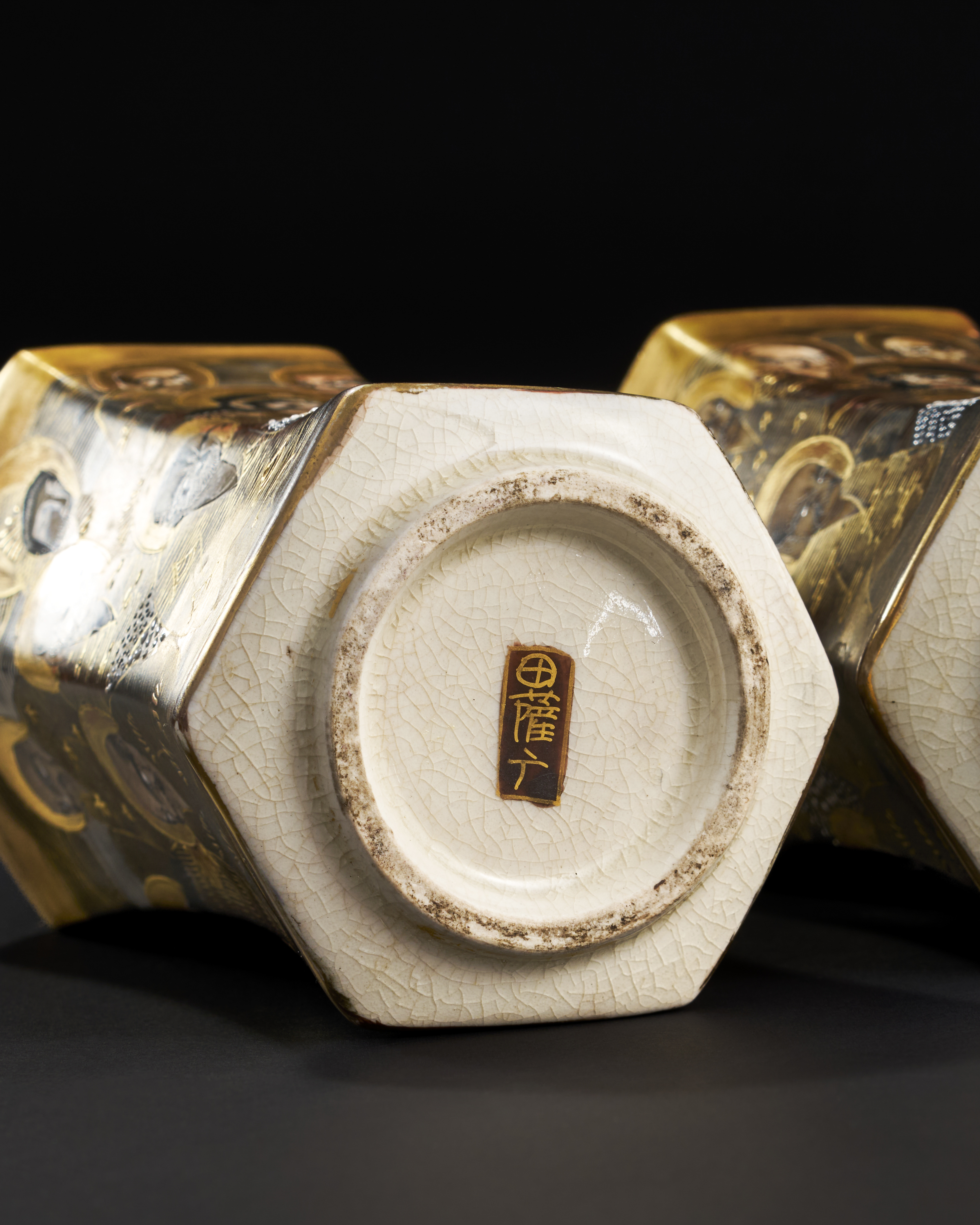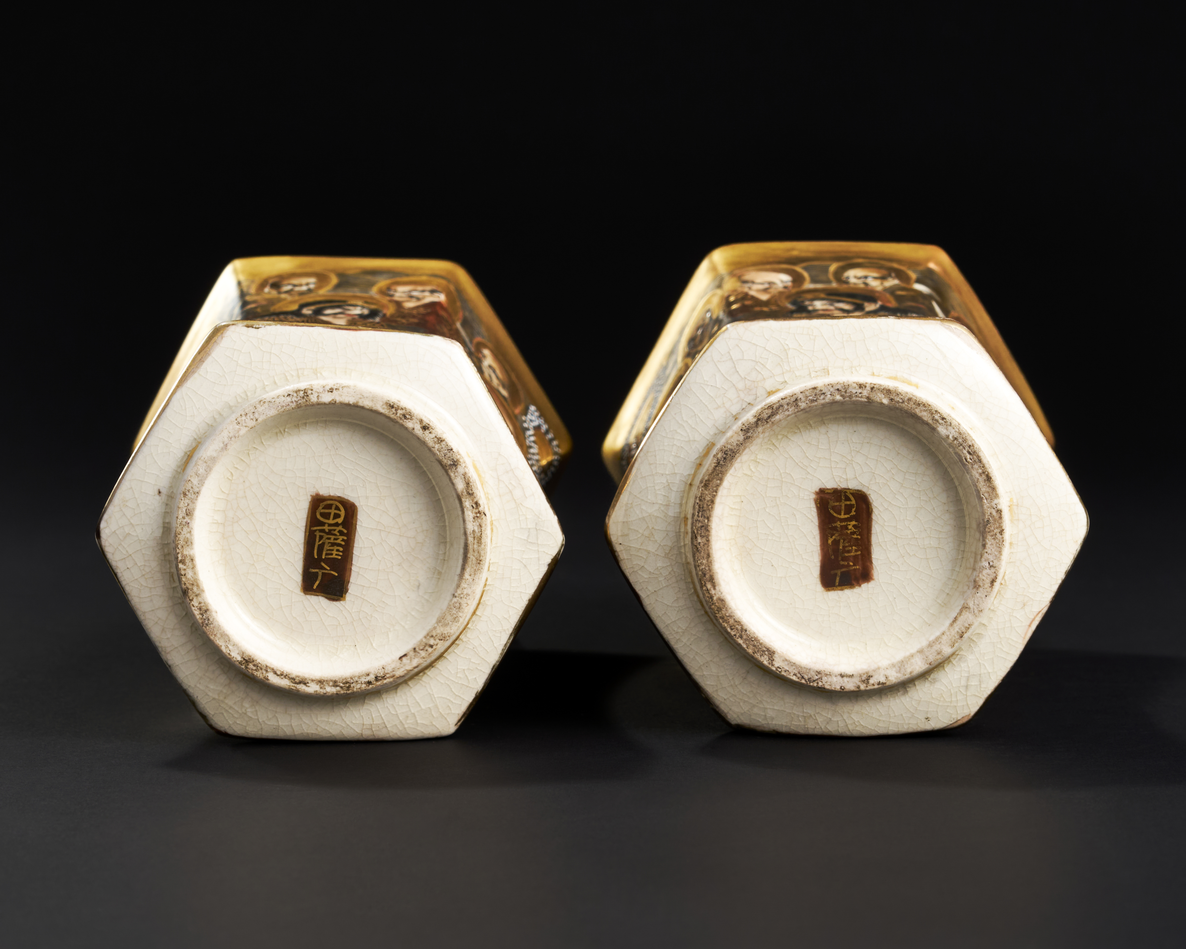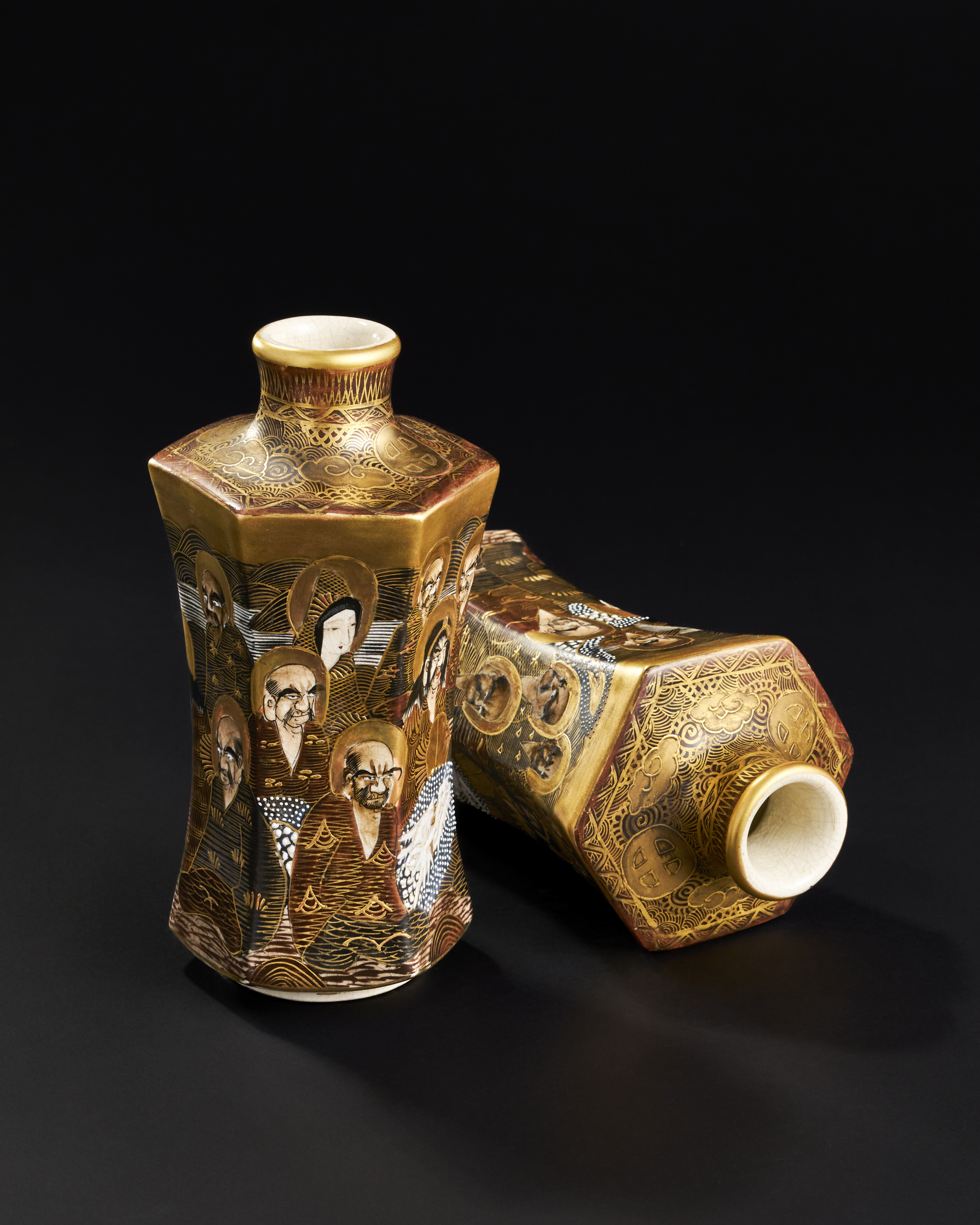 A PAIR OF HEXAGON JAPANESE CERAMIC VASES DEPICTING BUDDIST MONKS, 19TH CENTURY