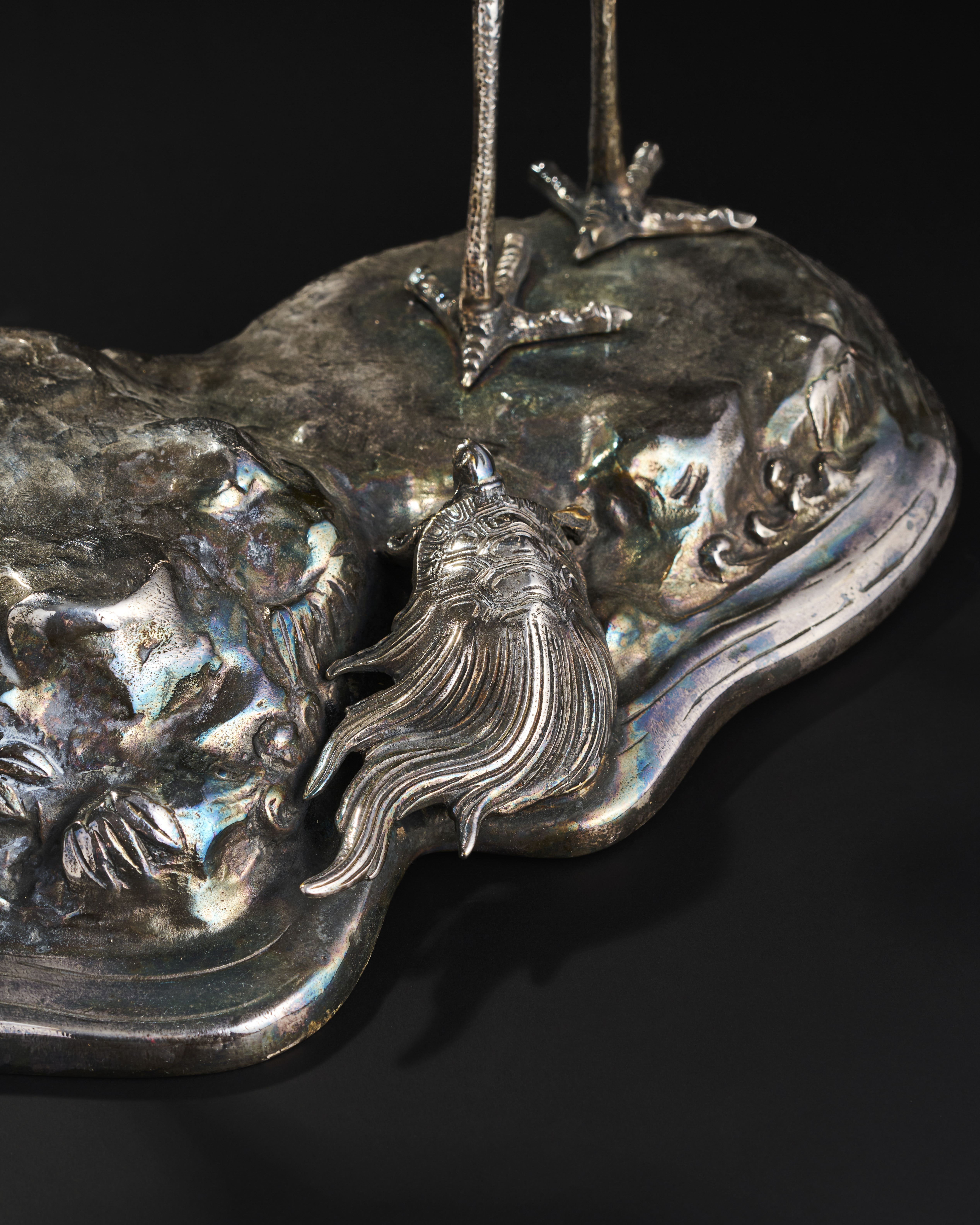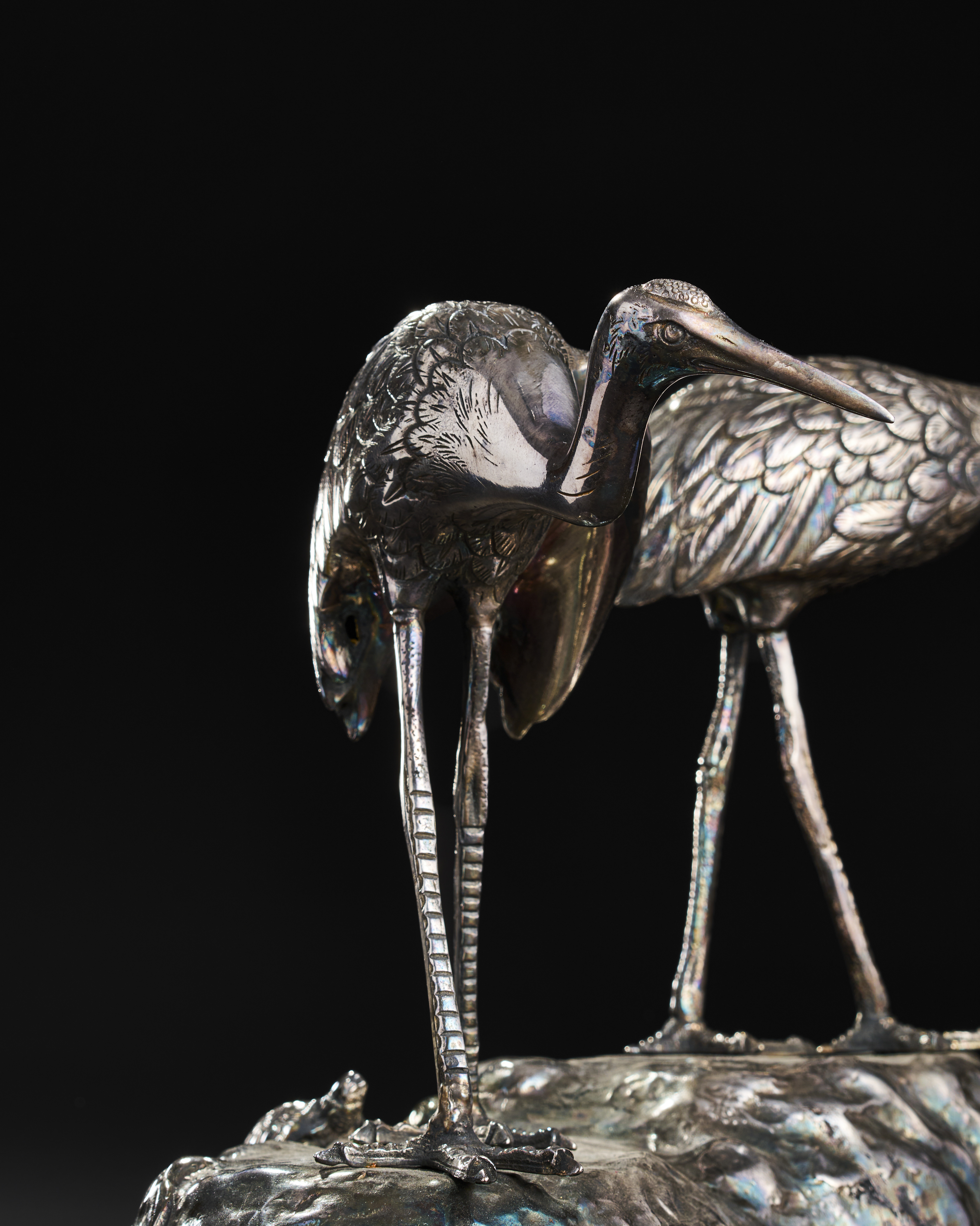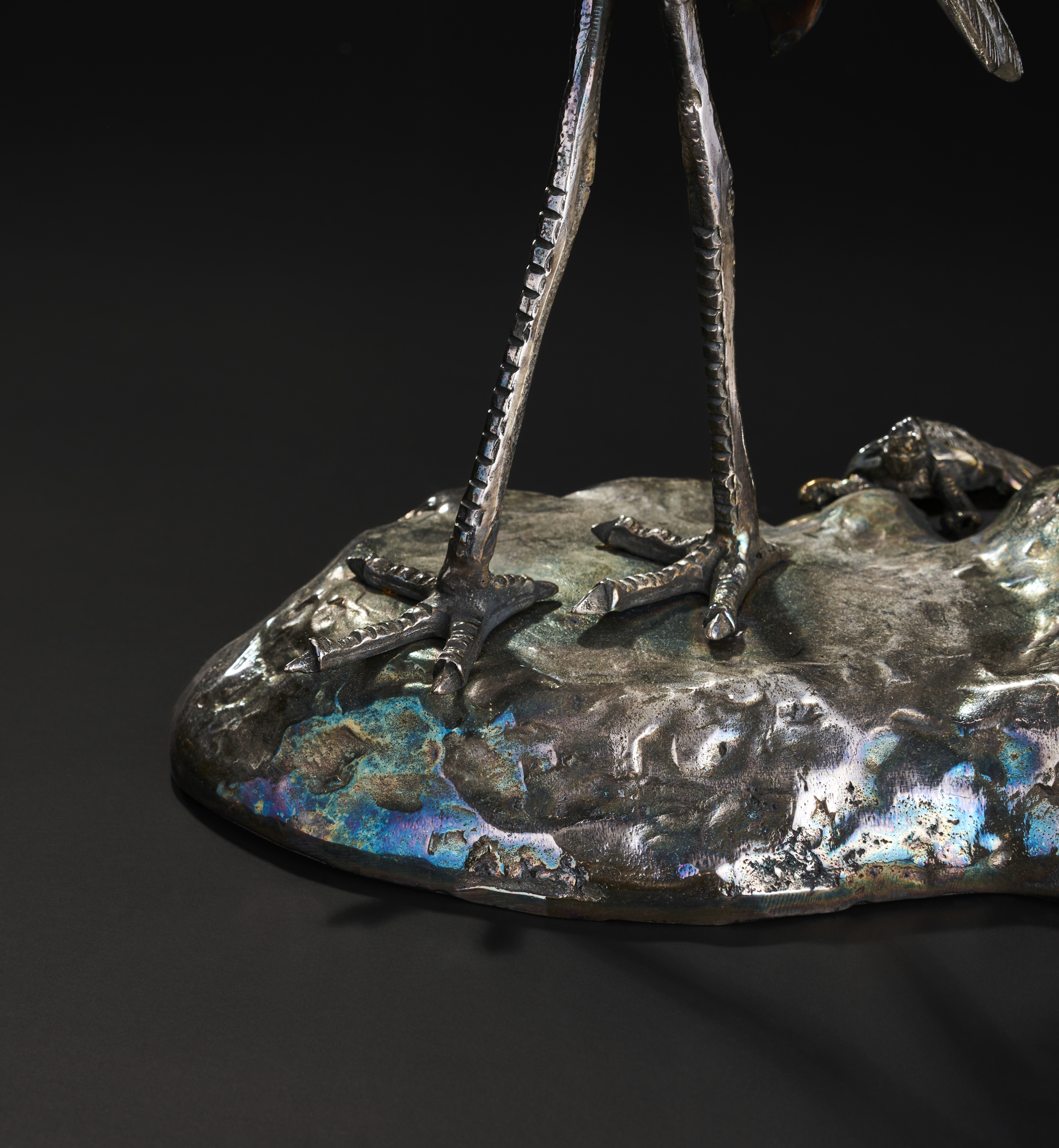 A LARGE JAPANESE METAL SCULPTURE OF CRANES, MEIJI PERIOD