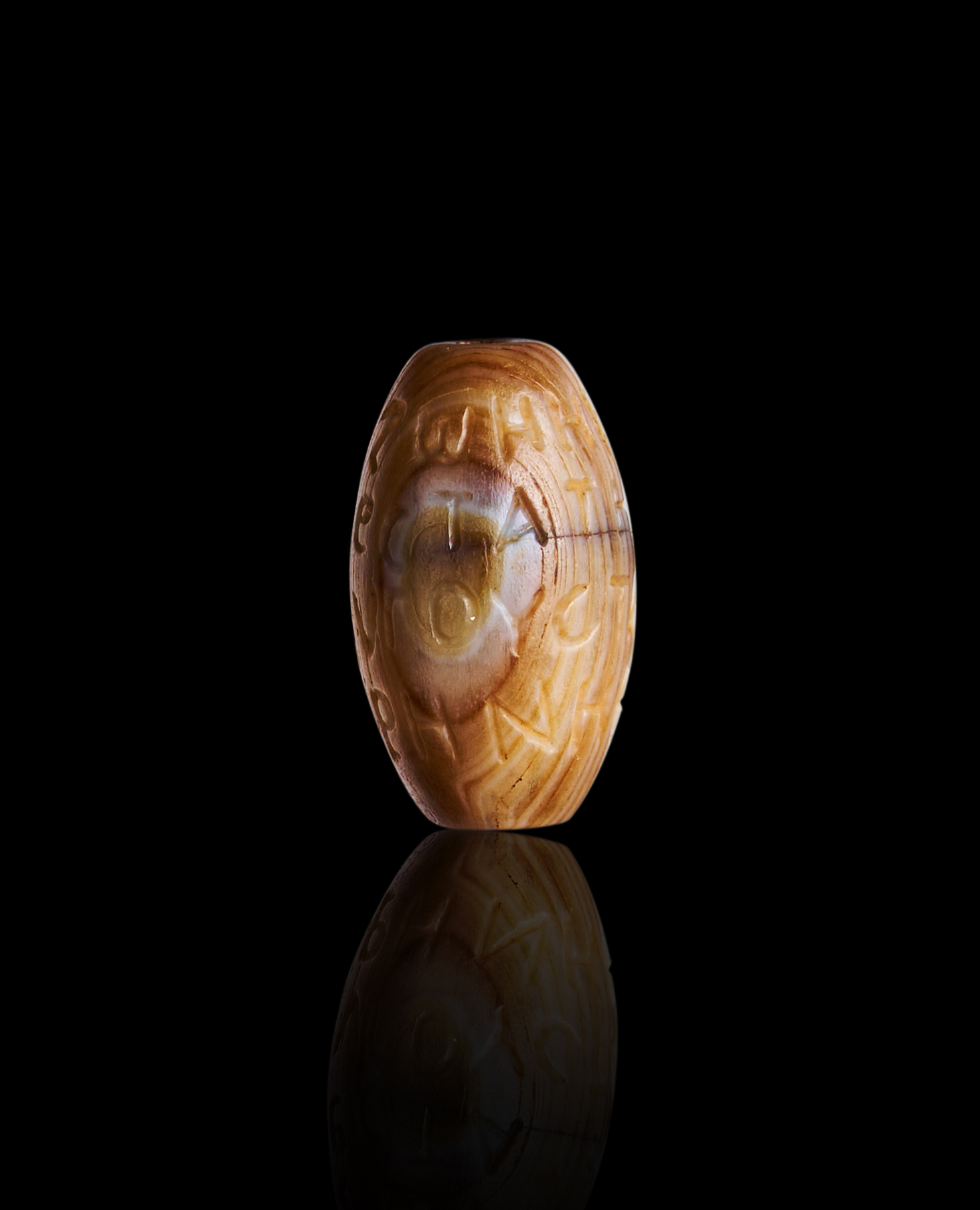 A BANDED AGATE BEAD WITH LATIN INSCRIPTIONS, 200 – 100 B.C